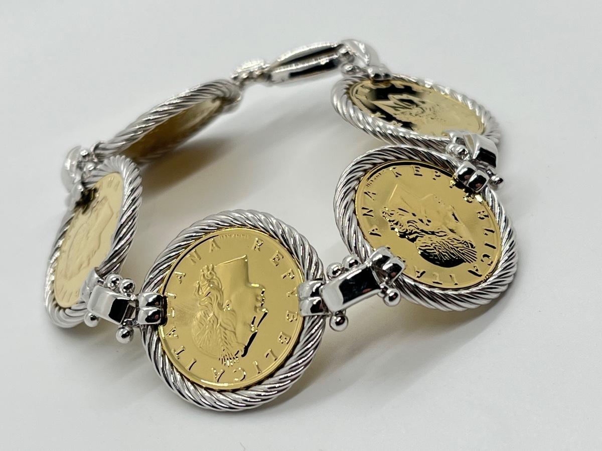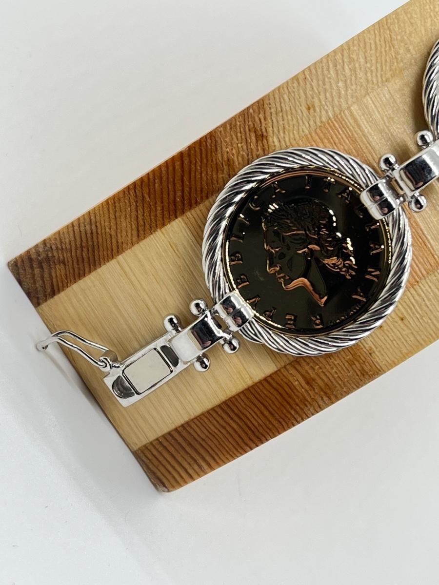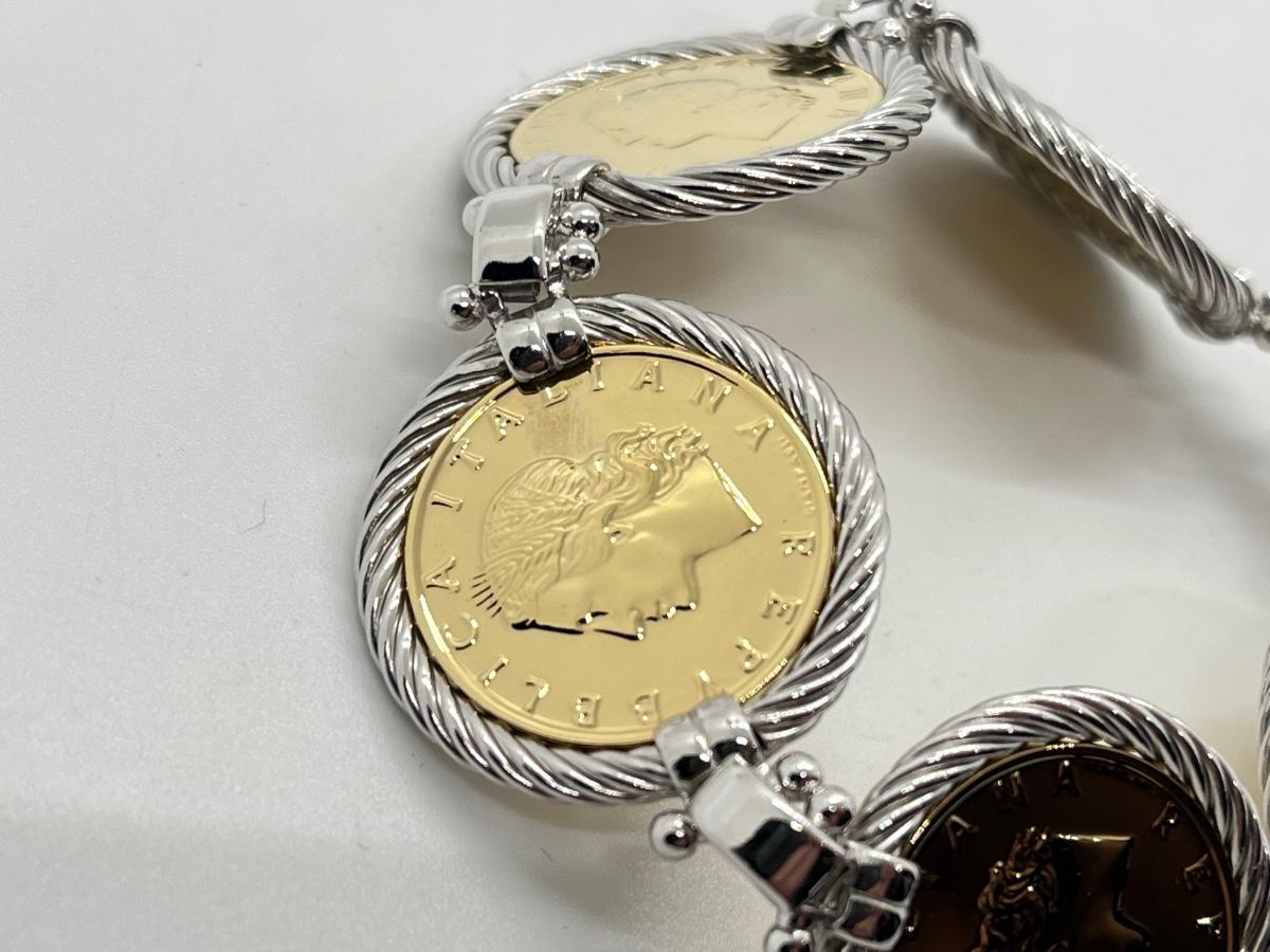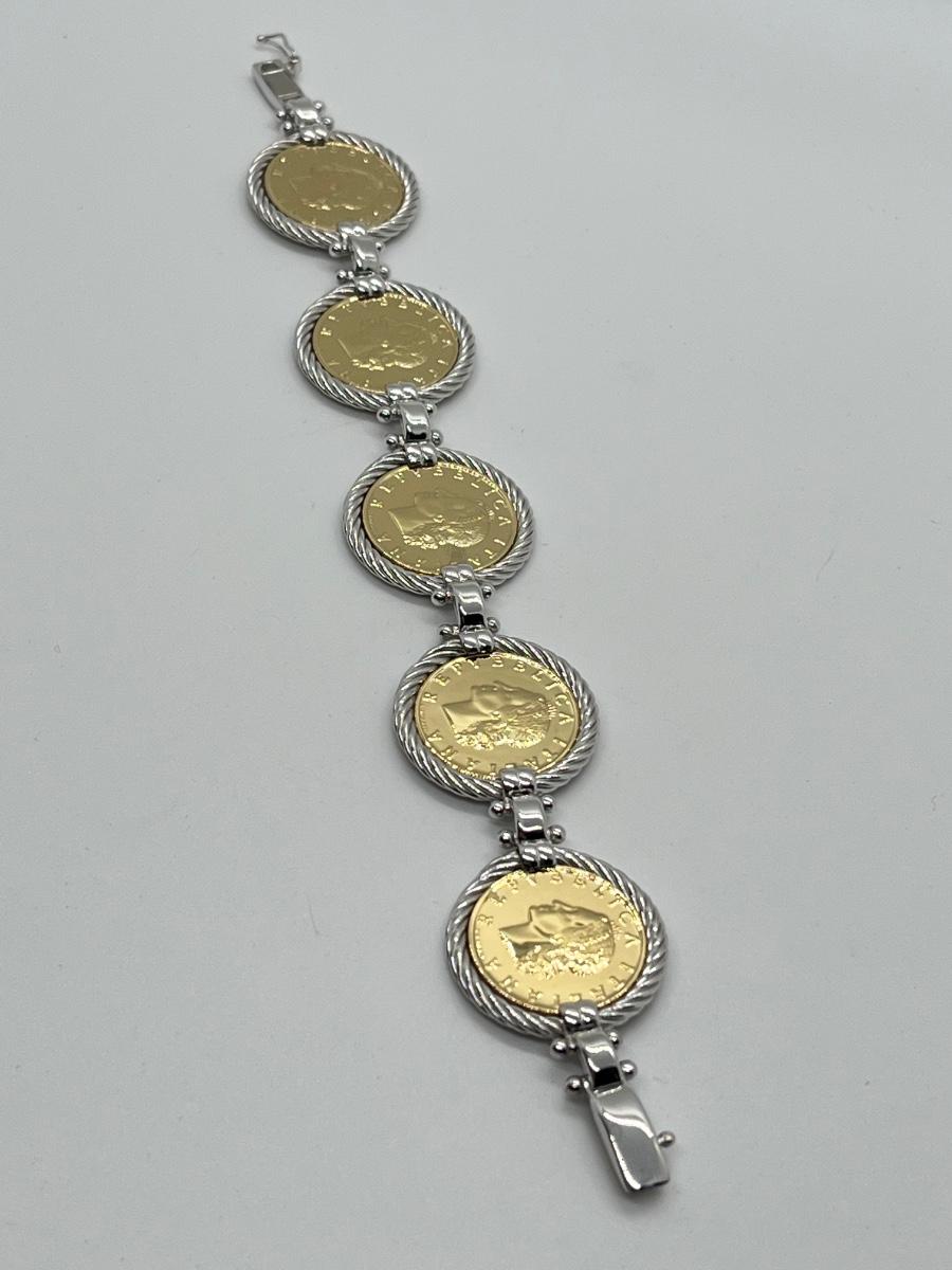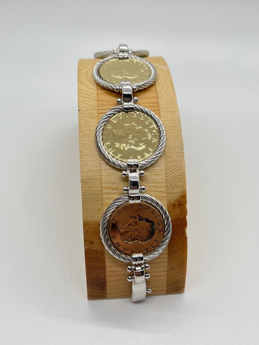 LOT 141J: Vicenza Sterling Silver Authentic Lire Two-Tone Coin Bracelet w/Magnetic Closure/Safety Clasp