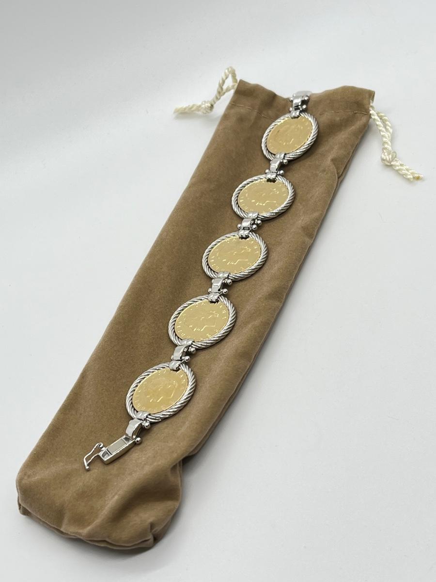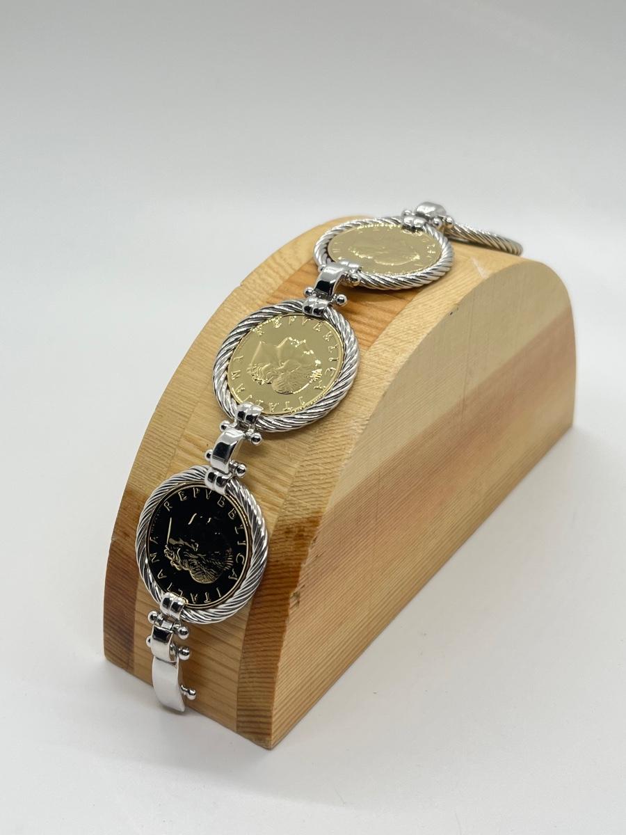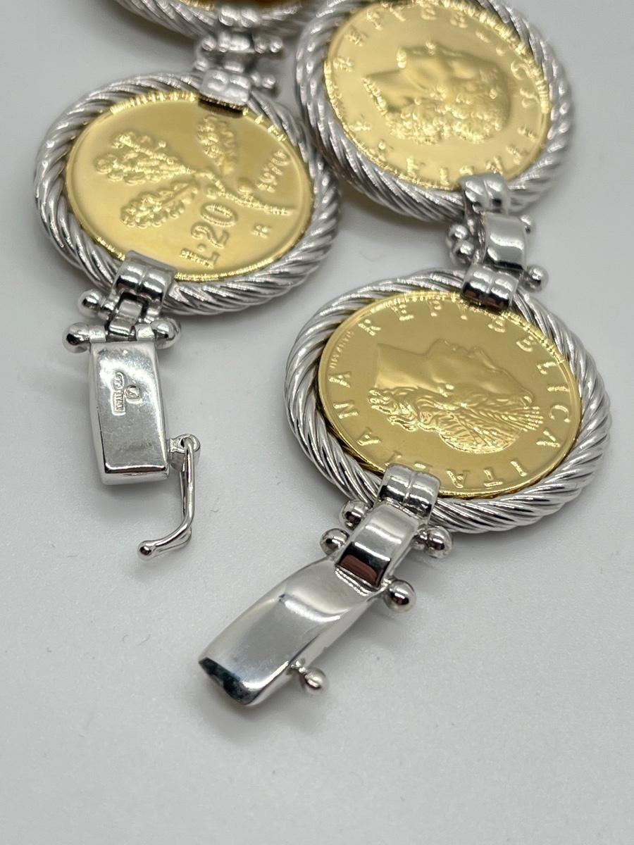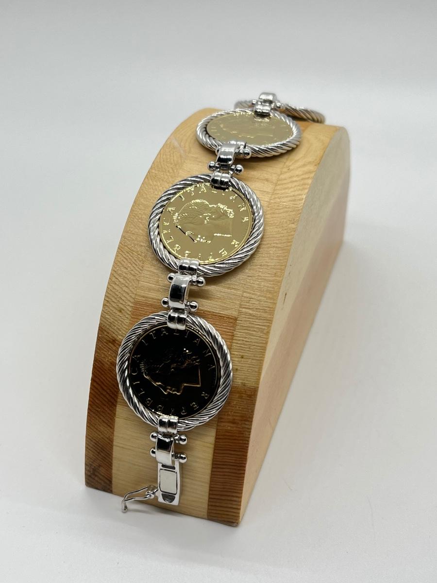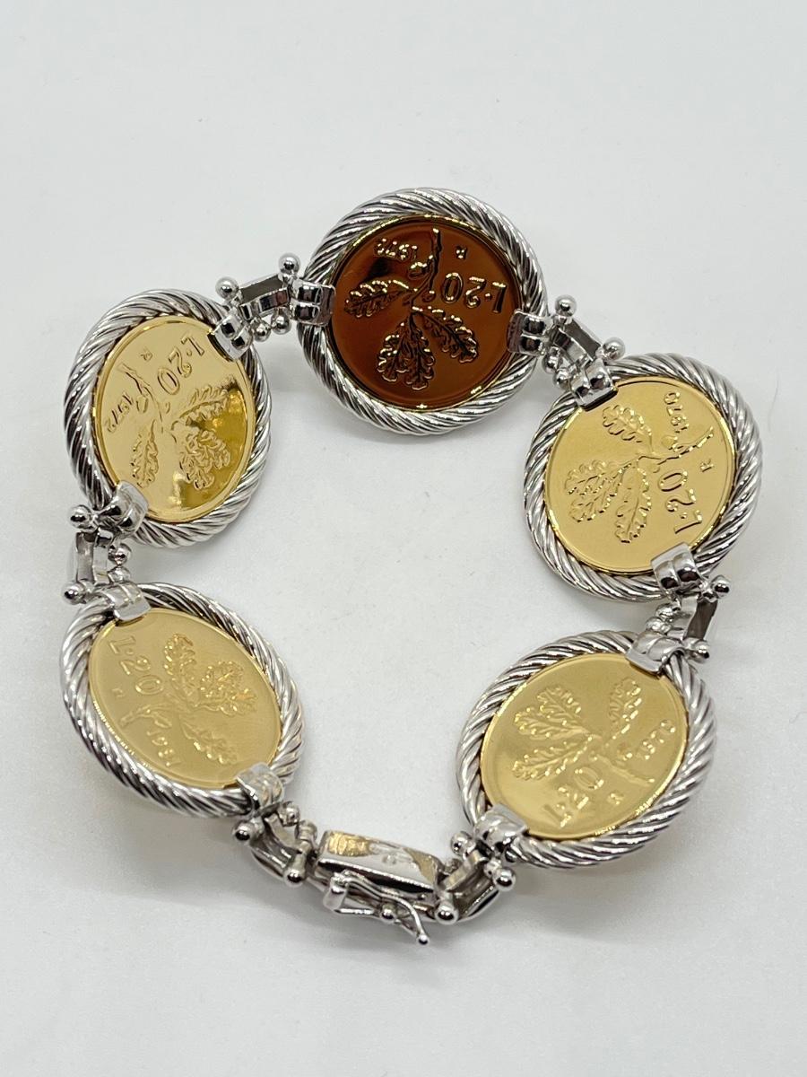 LOT 141J: Vicenza Sterling Silver Authentic Lire Two-Tone Coin Bracelet w/Magnetic Closure/Safety Clasp