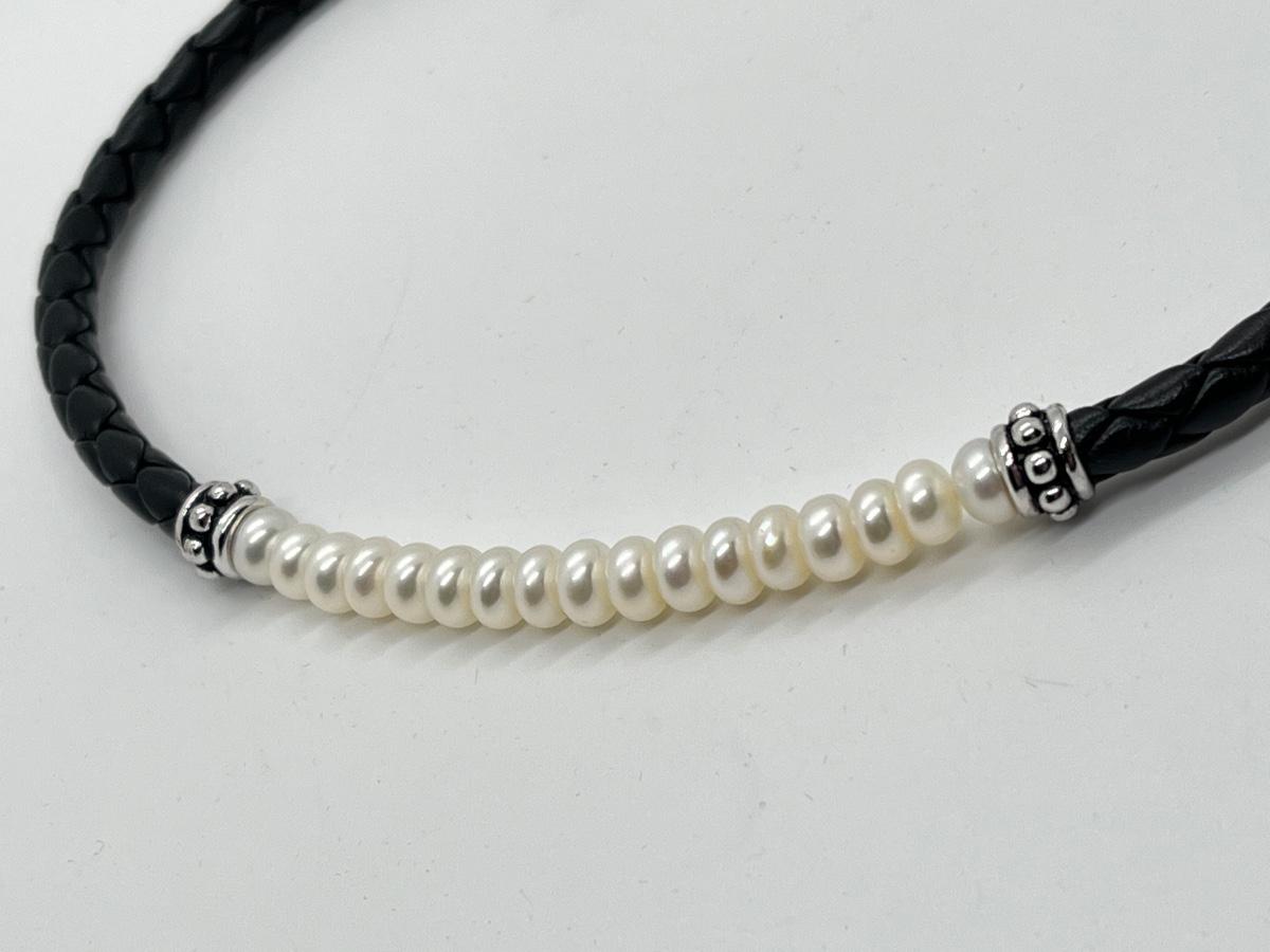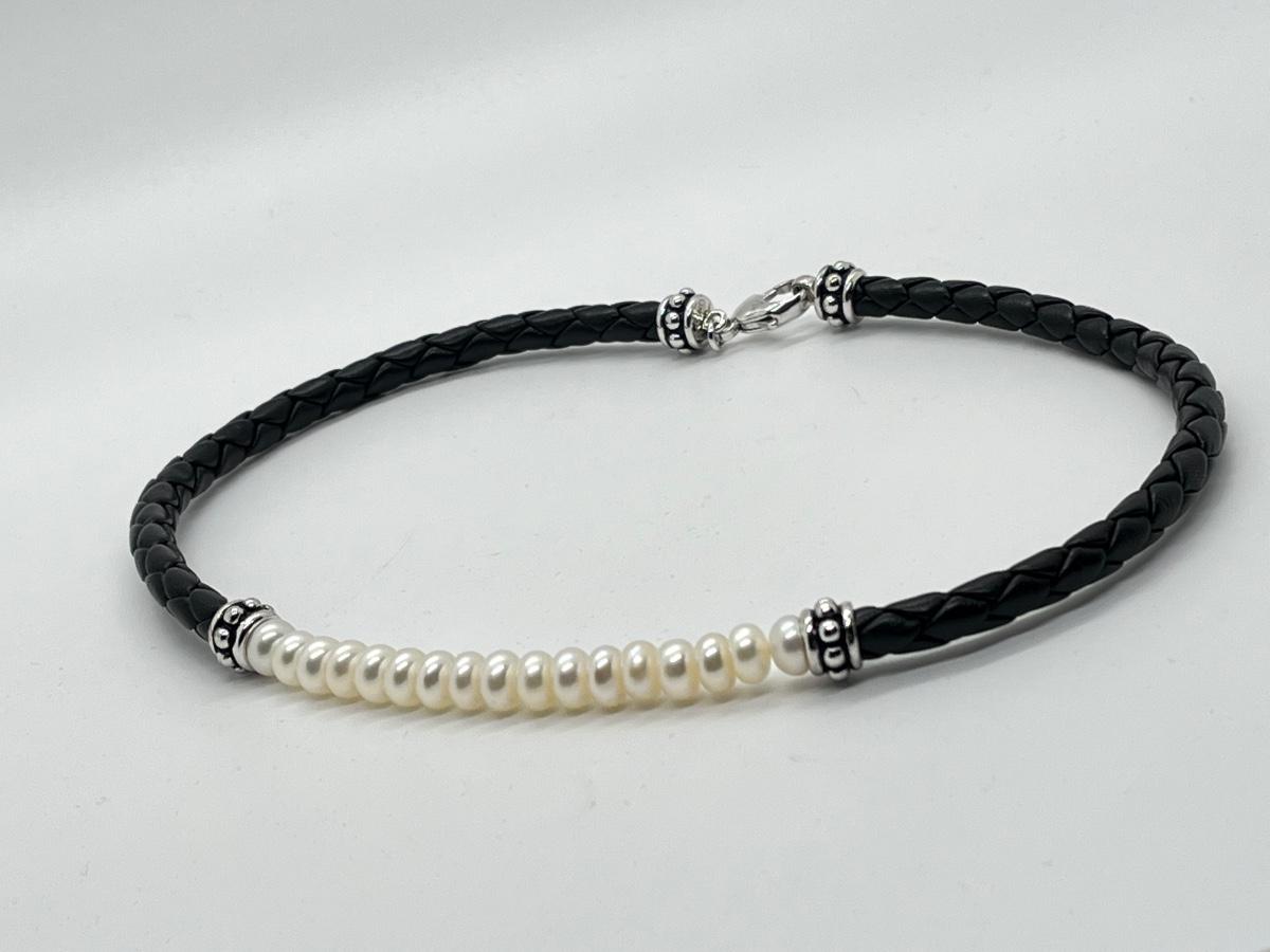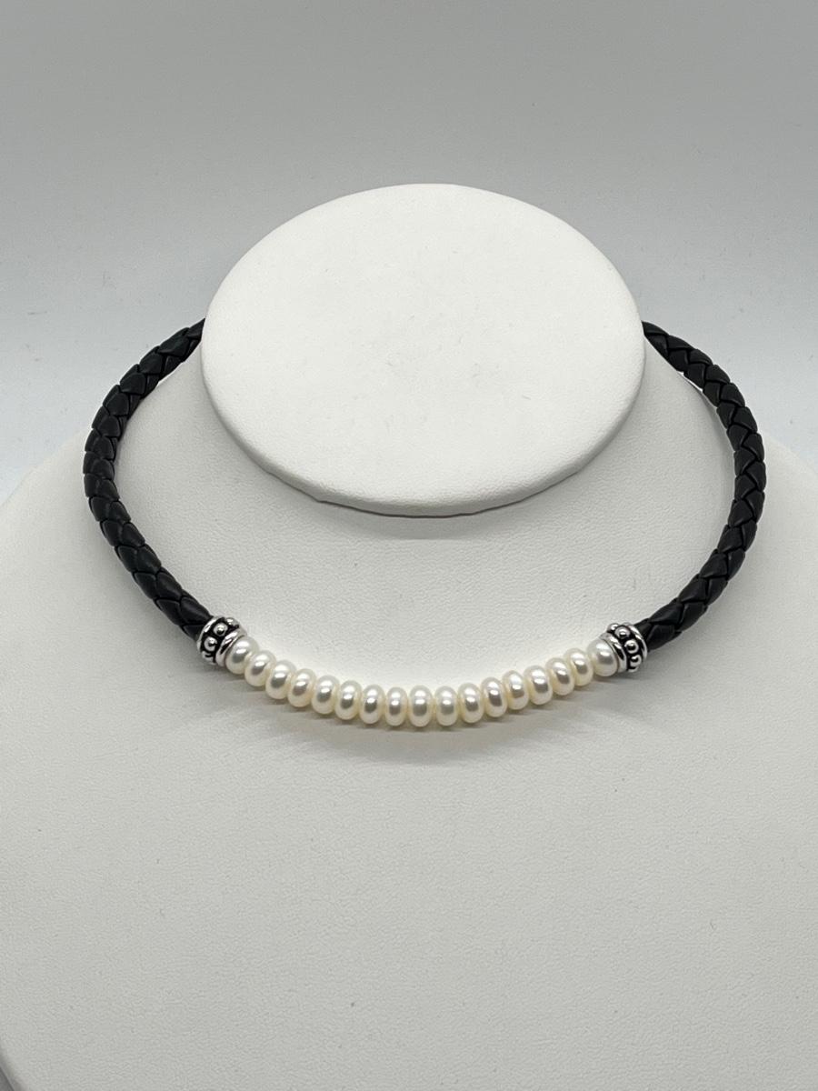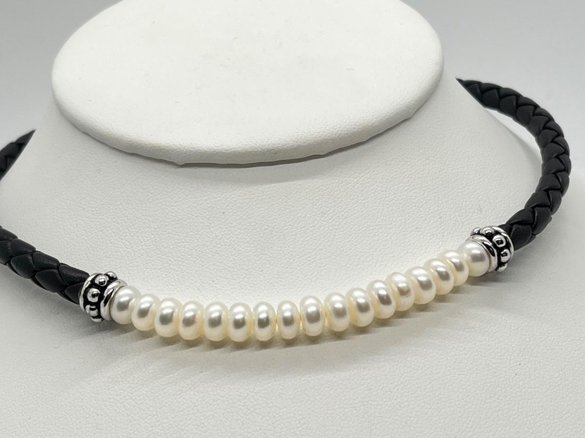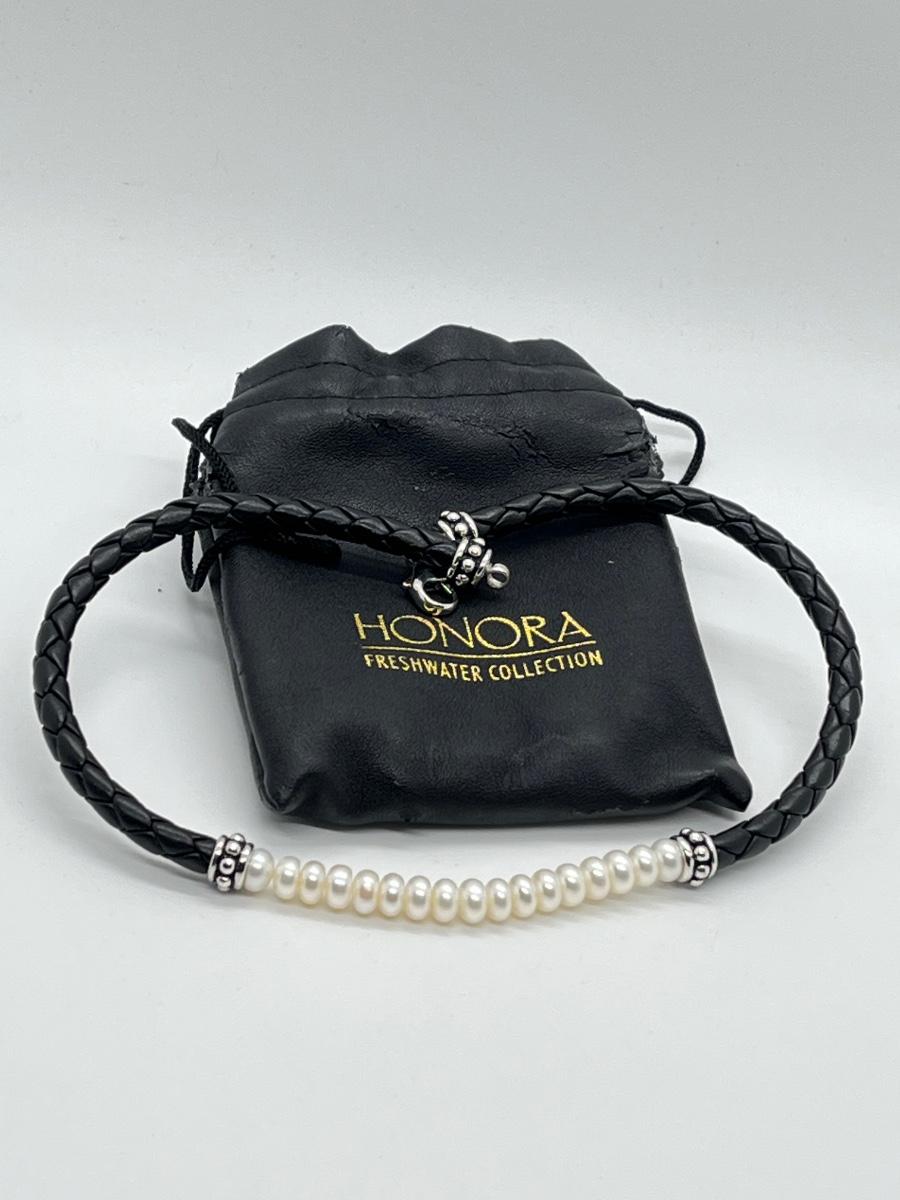 LOT 150J: Honora Cultured Freshwater Pearl  & Sterling 16" Black Leather Necklace