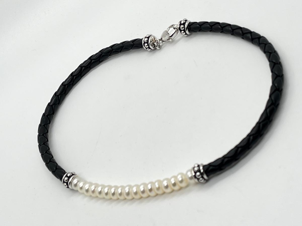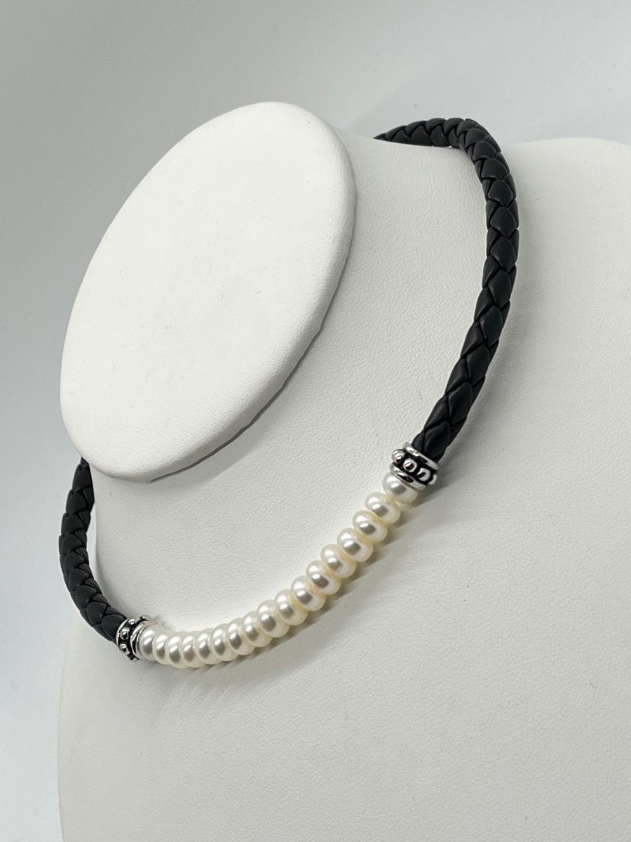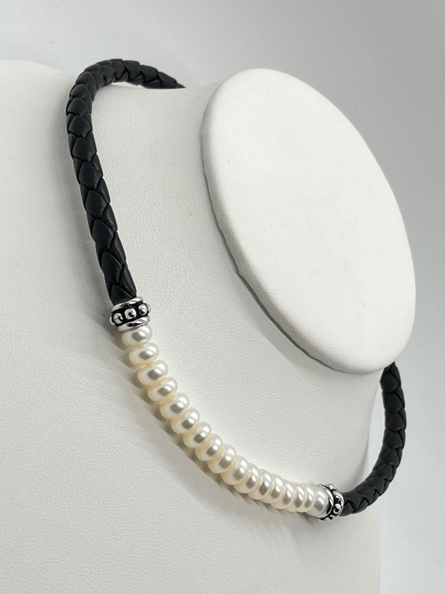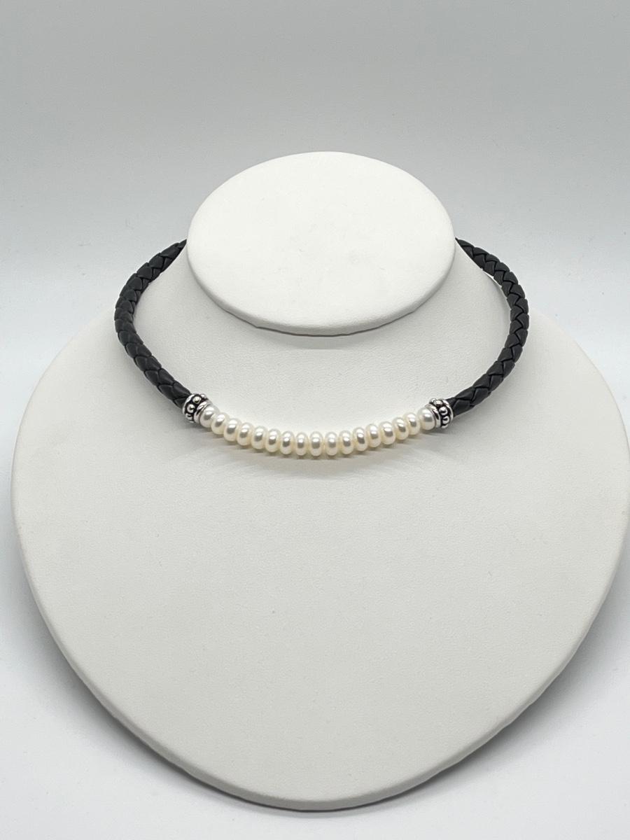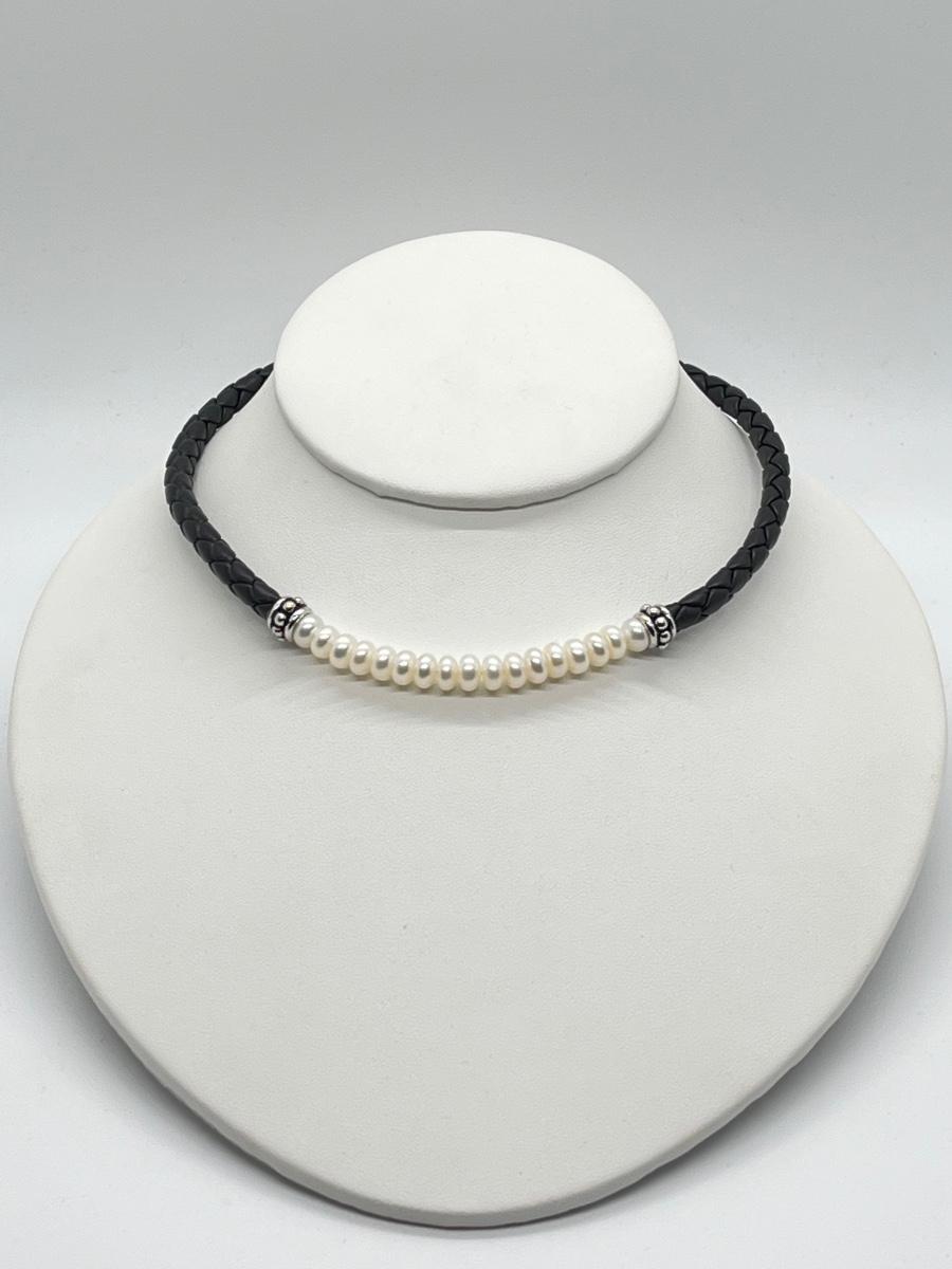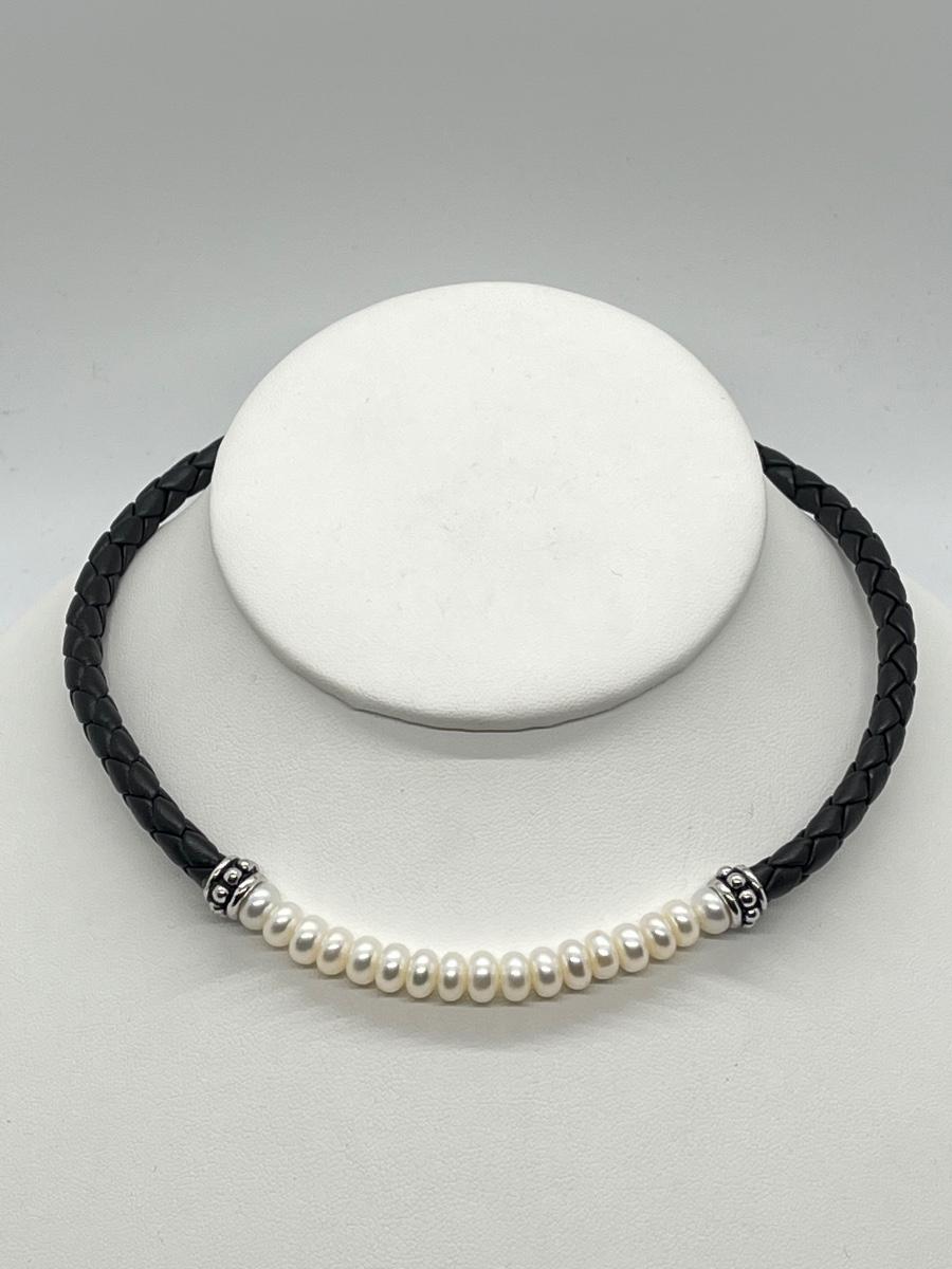 LOT 150J: Honora Cultured Freshwater Pearl  & Sterling 16" Black Leather Necklace
