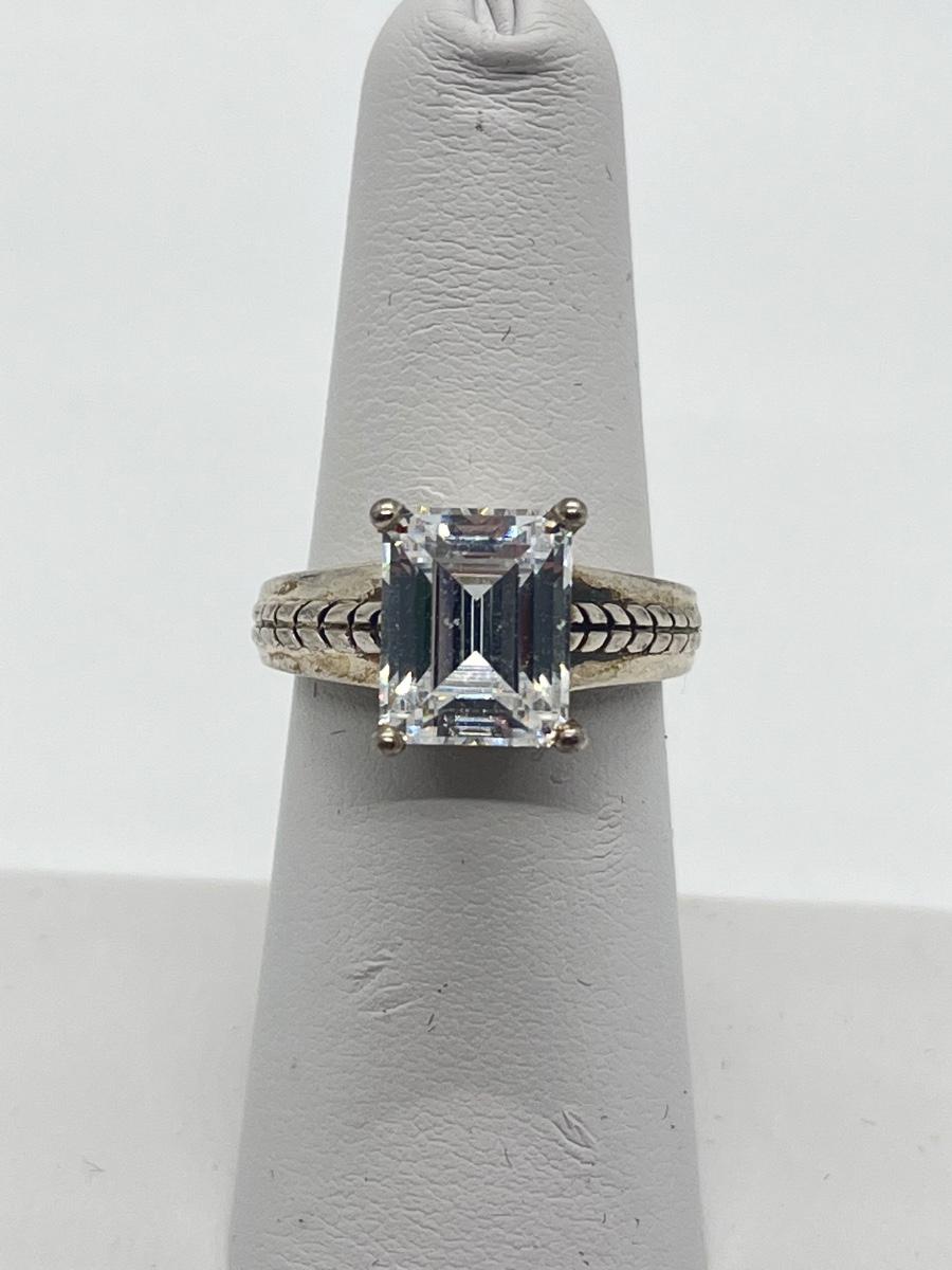 LOT 5: Diamonique CZ & Sterling Silver Ring - Size 6