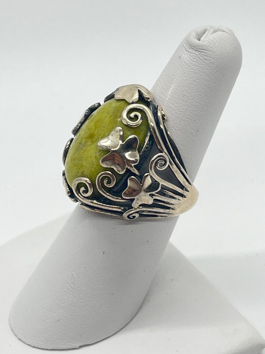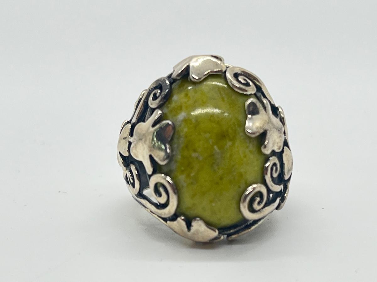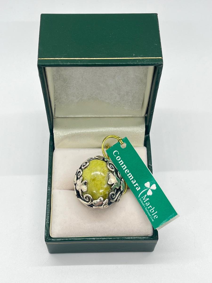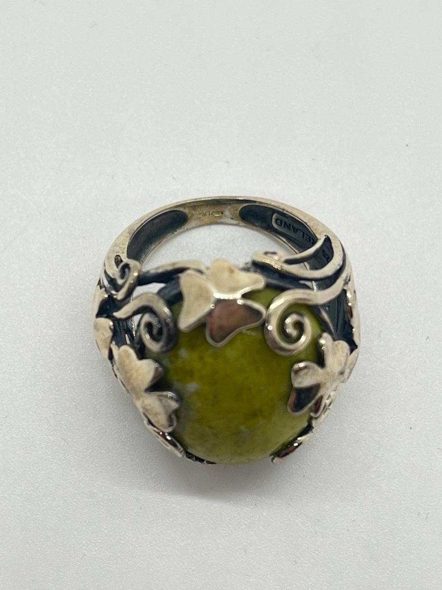 LOT 8: Sterling Silver & Connemara Marble Ring from Ireland - Size 6.5