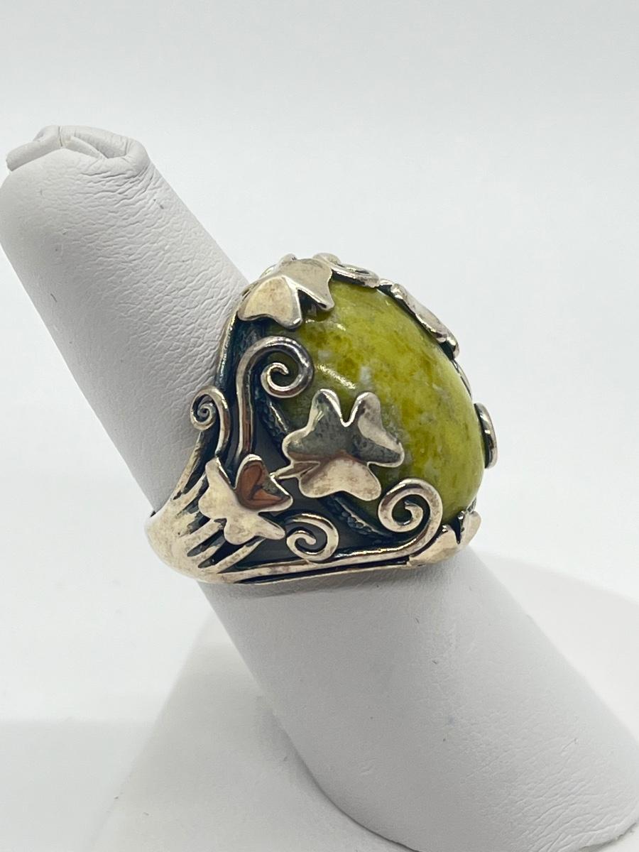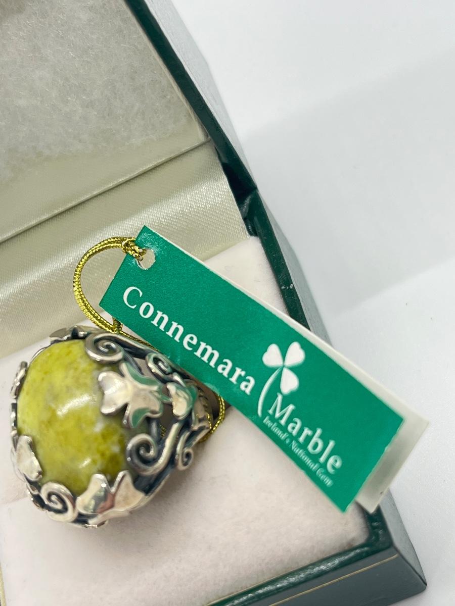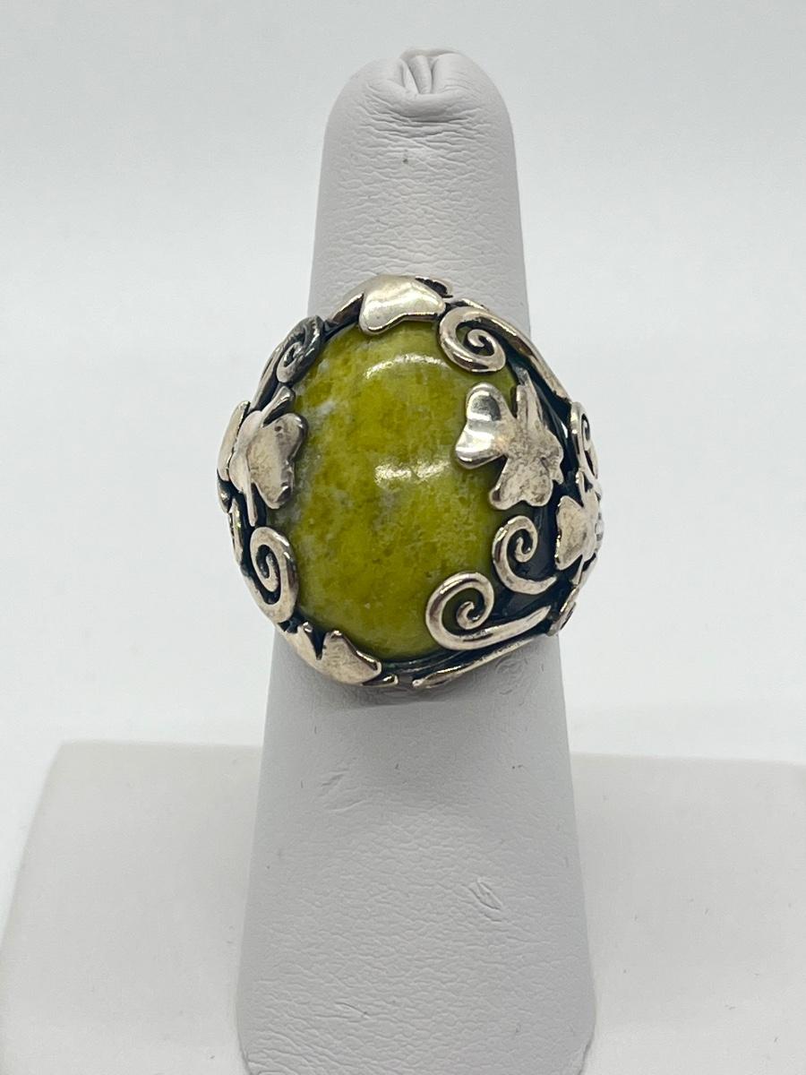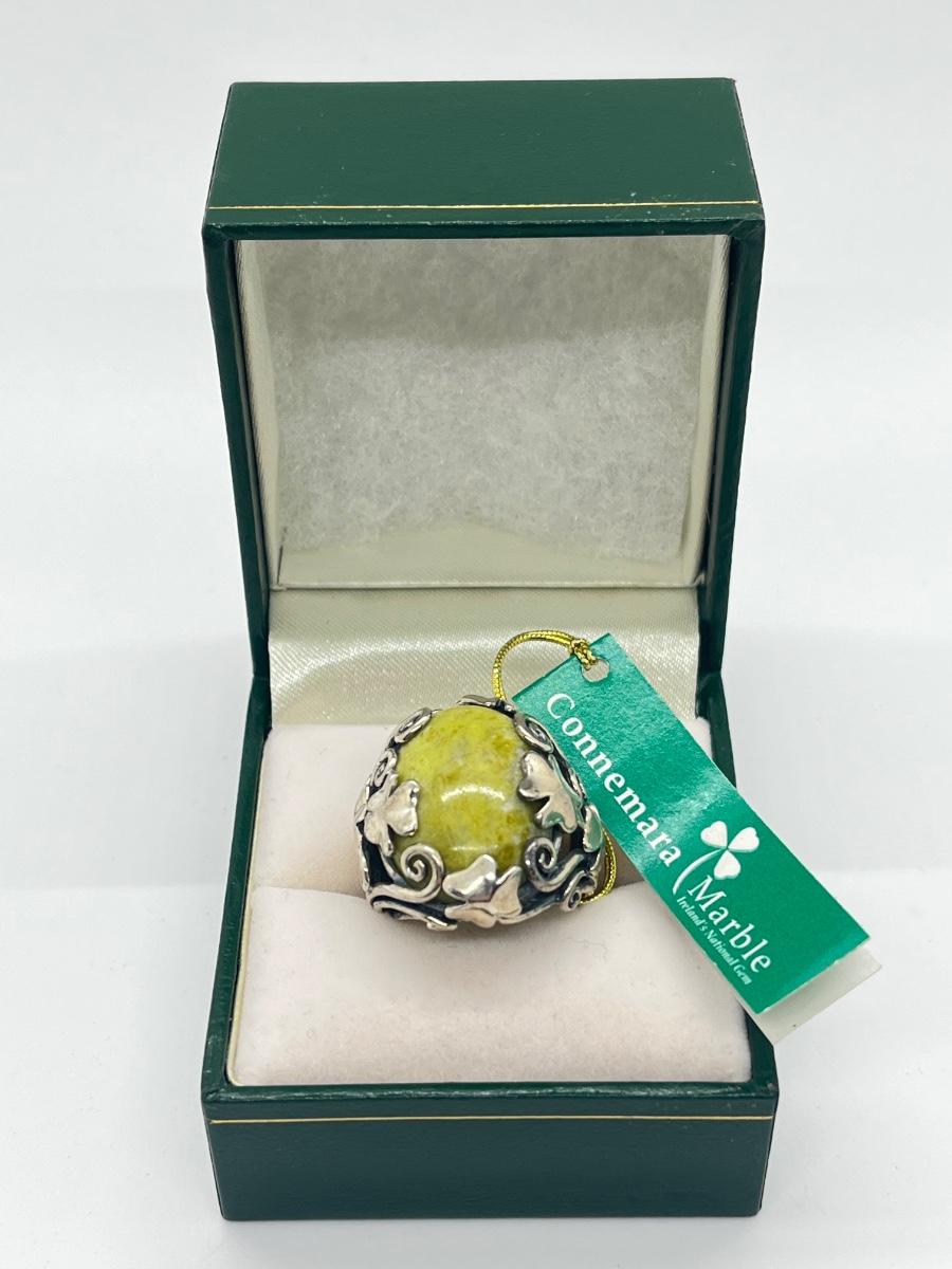LOT 8: Sterling Silver & Connemara Marble Ring from Ireland - Size 6.5