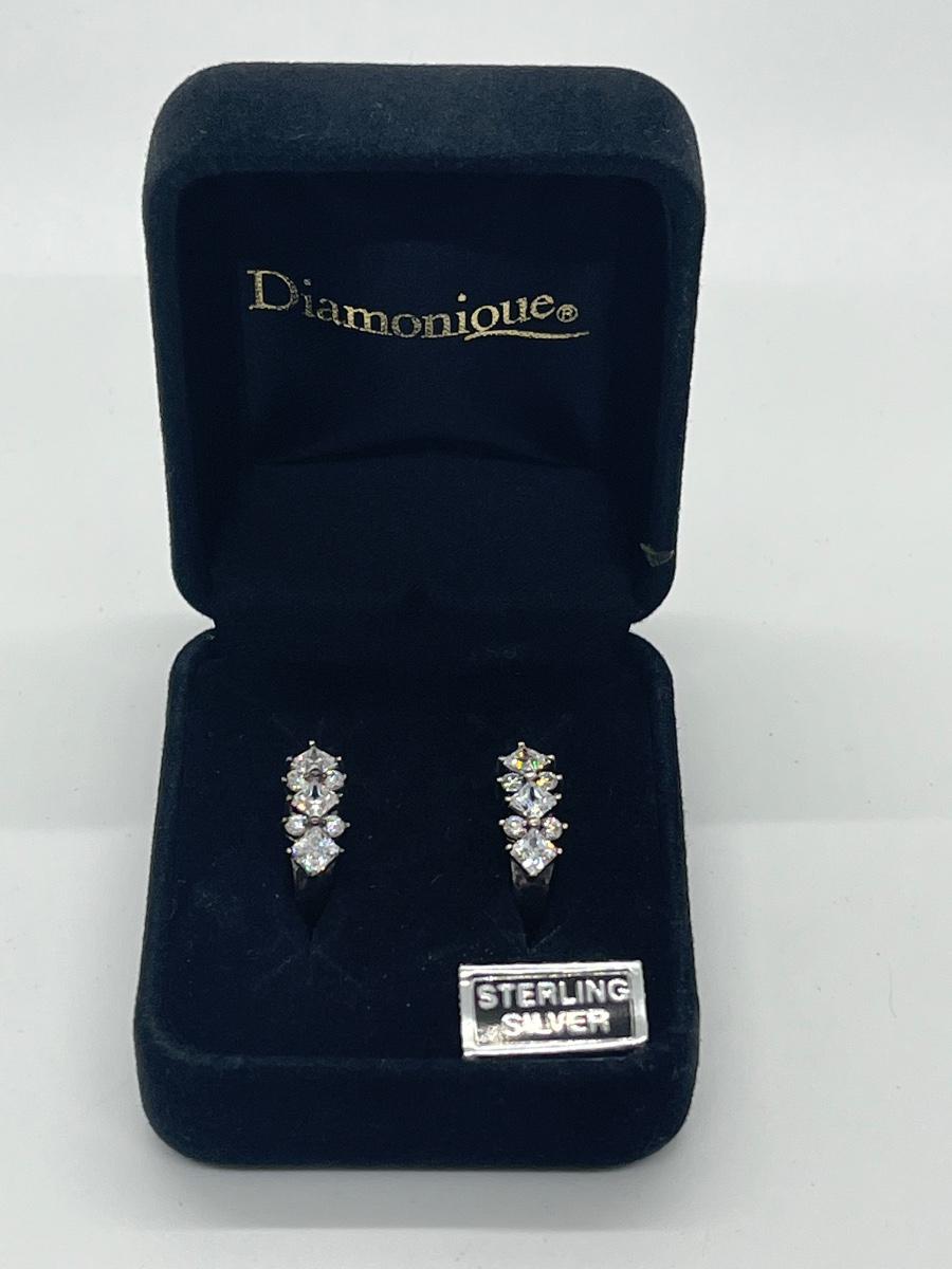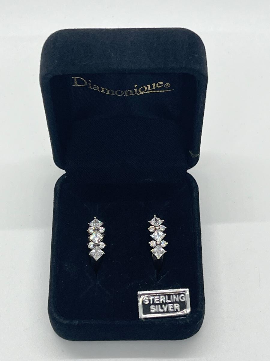 LOT 9: Pierced Diamonique Sterling Silver Hoop Earrings