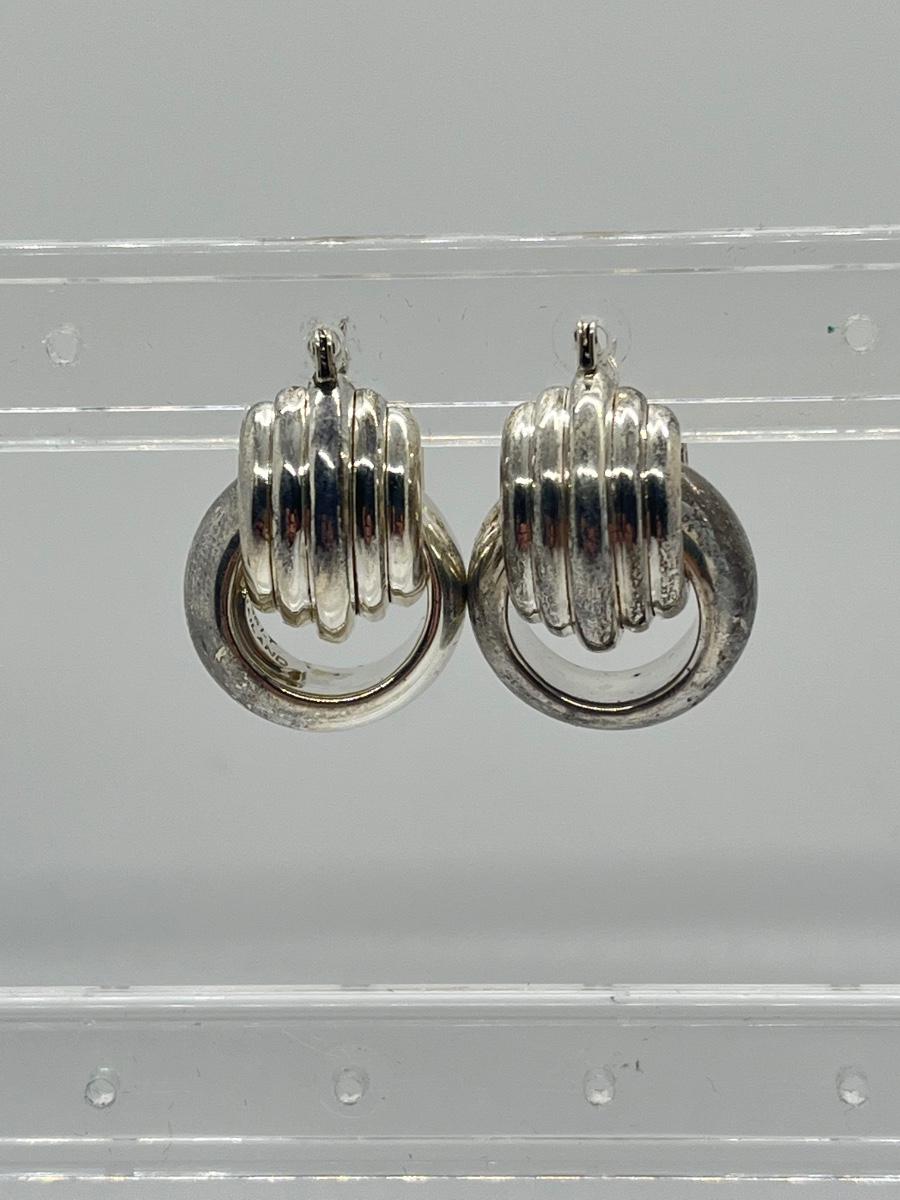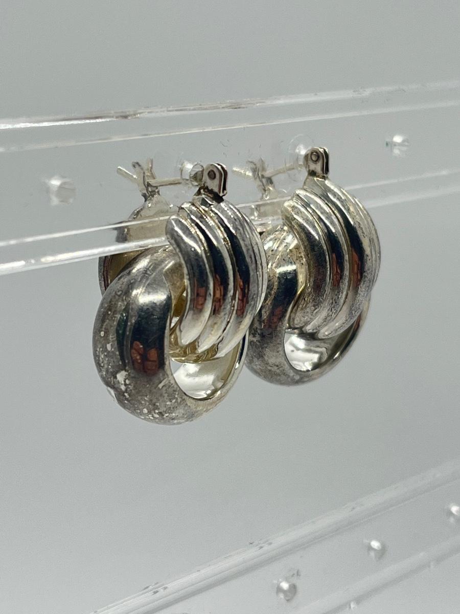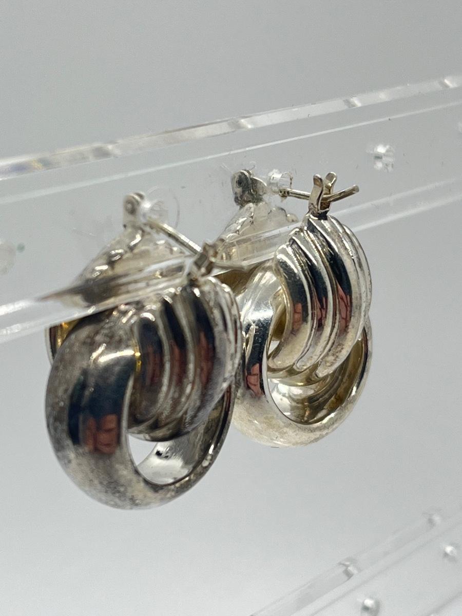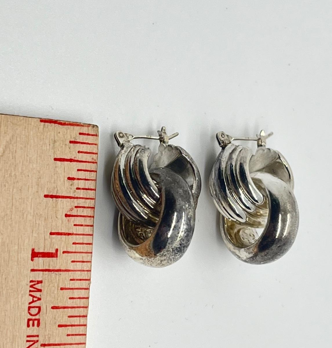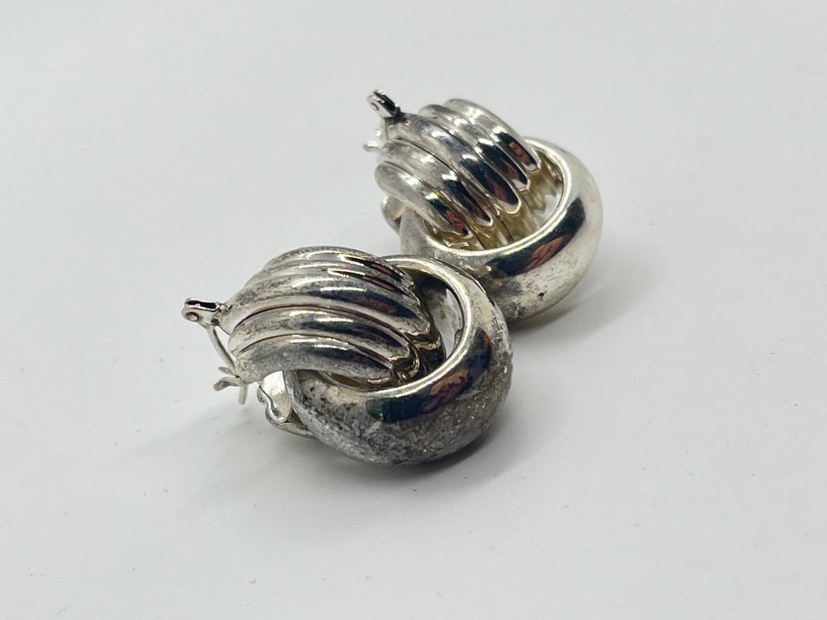 LOT 14: Sterling Silver Pierced Hoop Earrings with Removable Round Accents