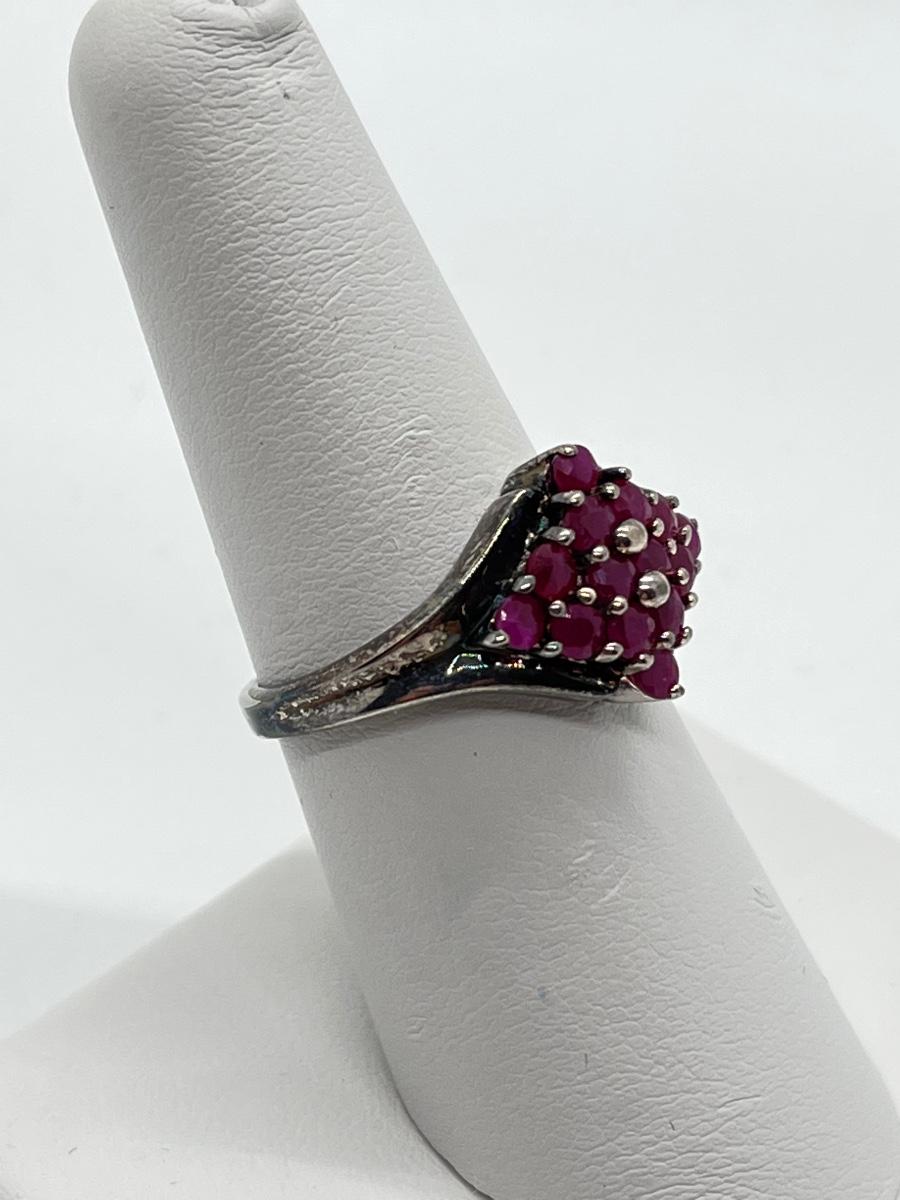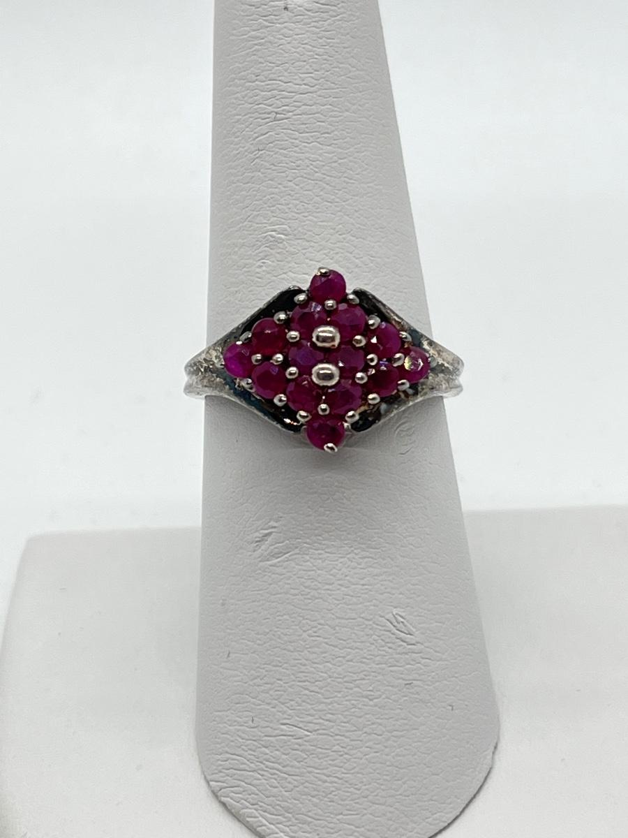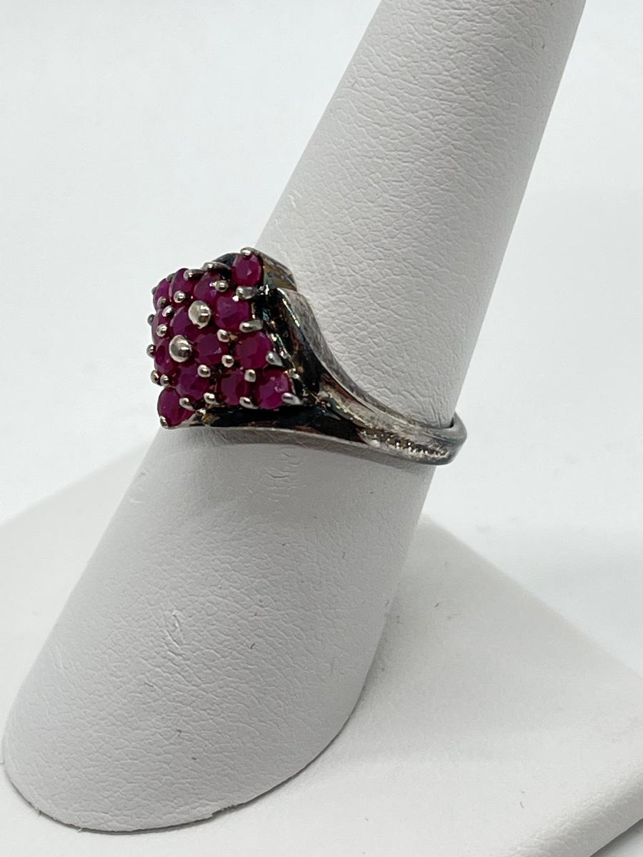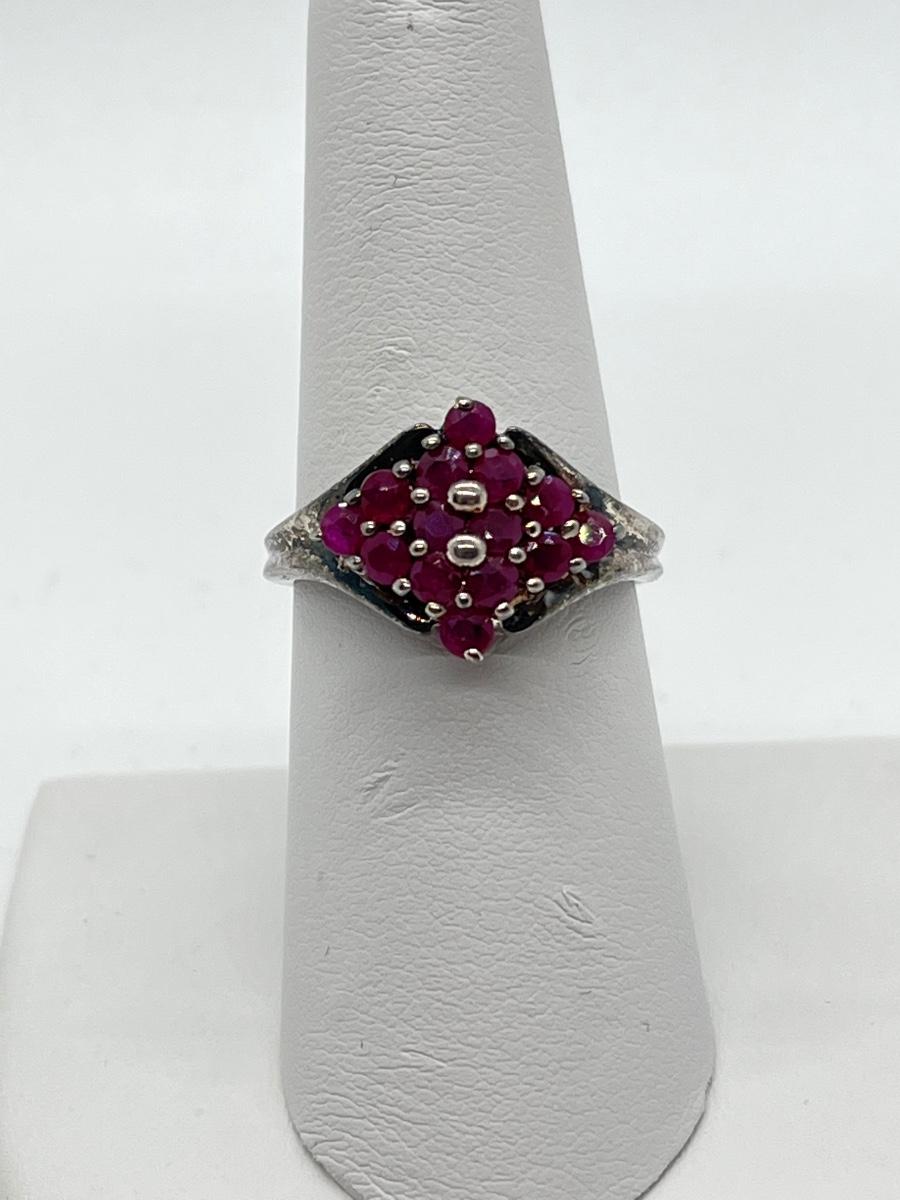 LOT 23: Sterling Silver 1.12 ct tw Savanna Ruby Cluster Ring - Size 7
