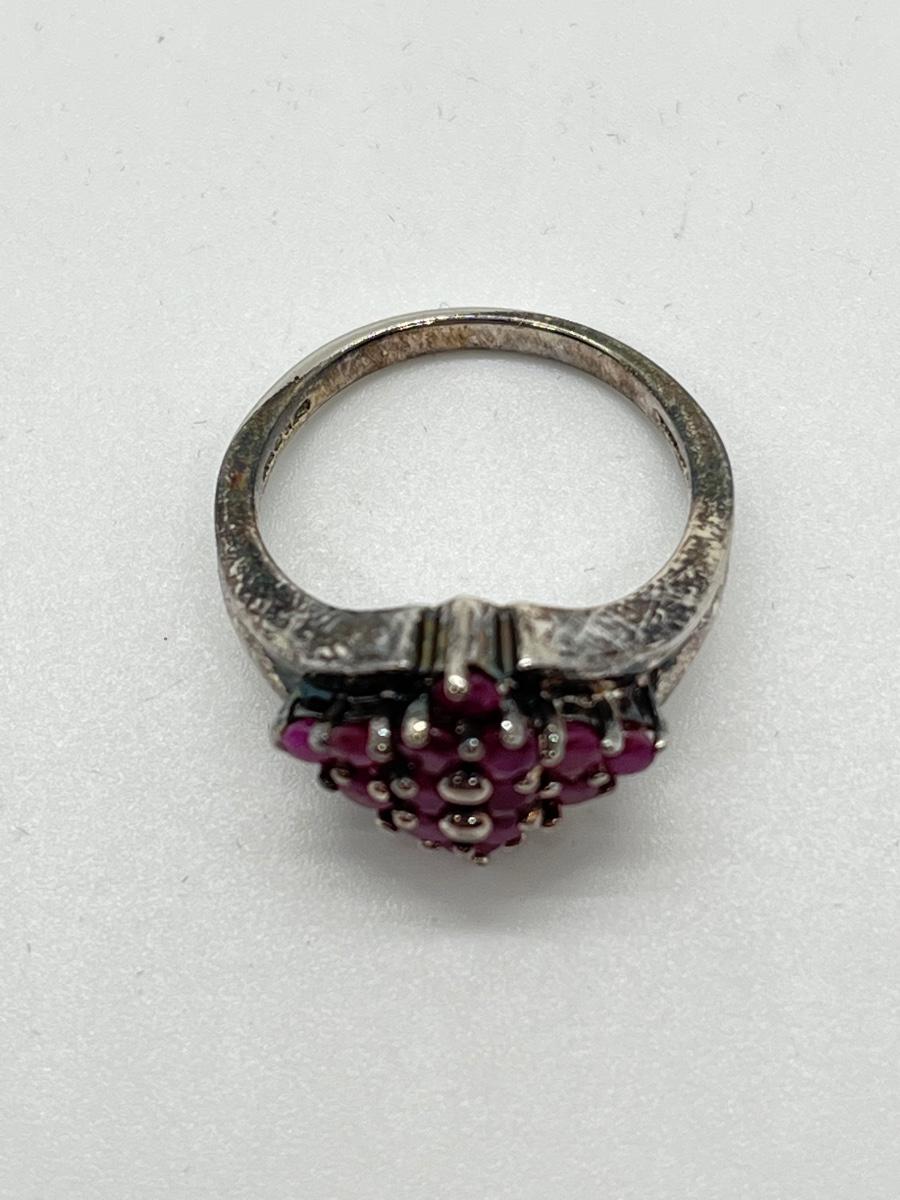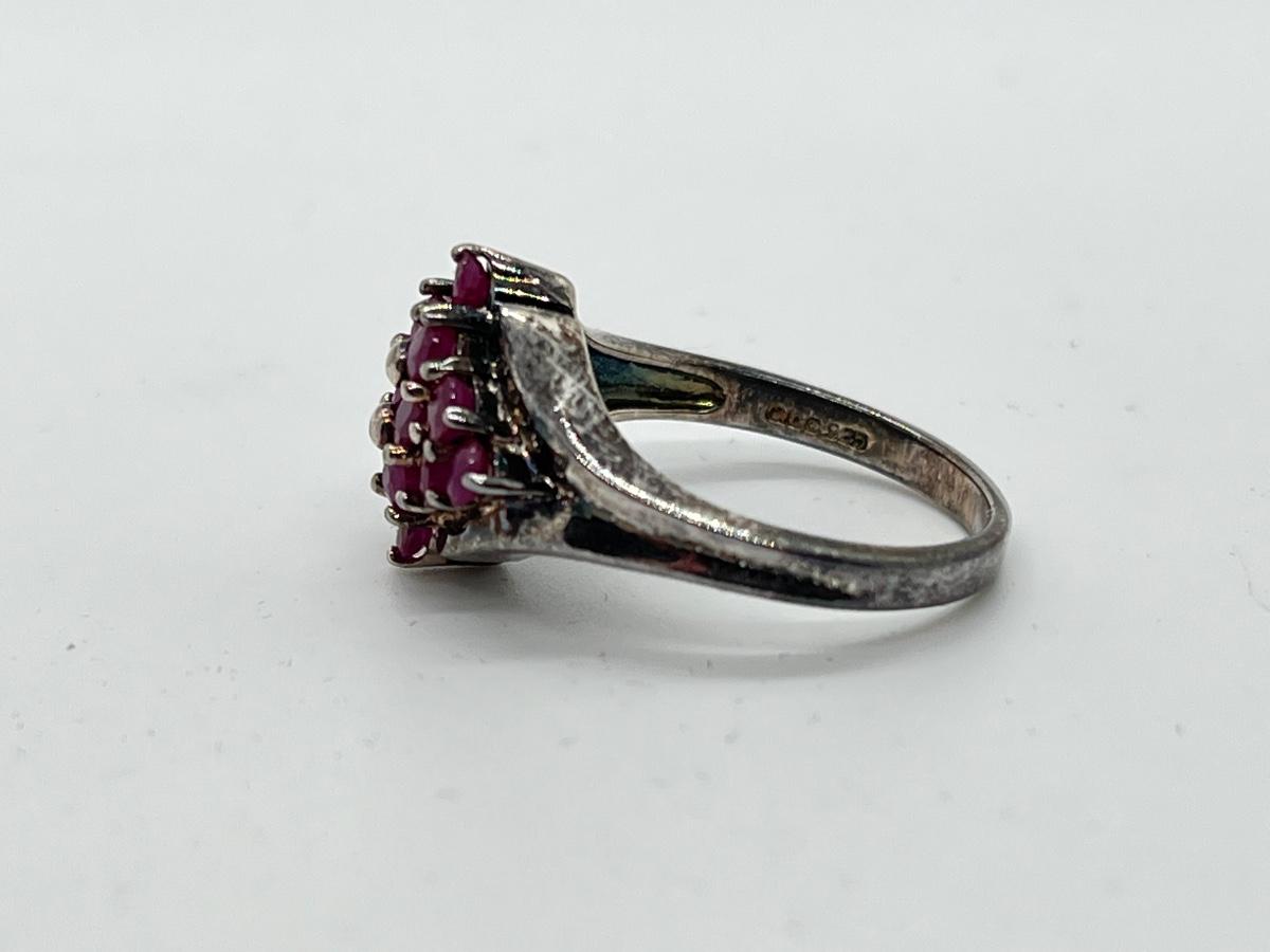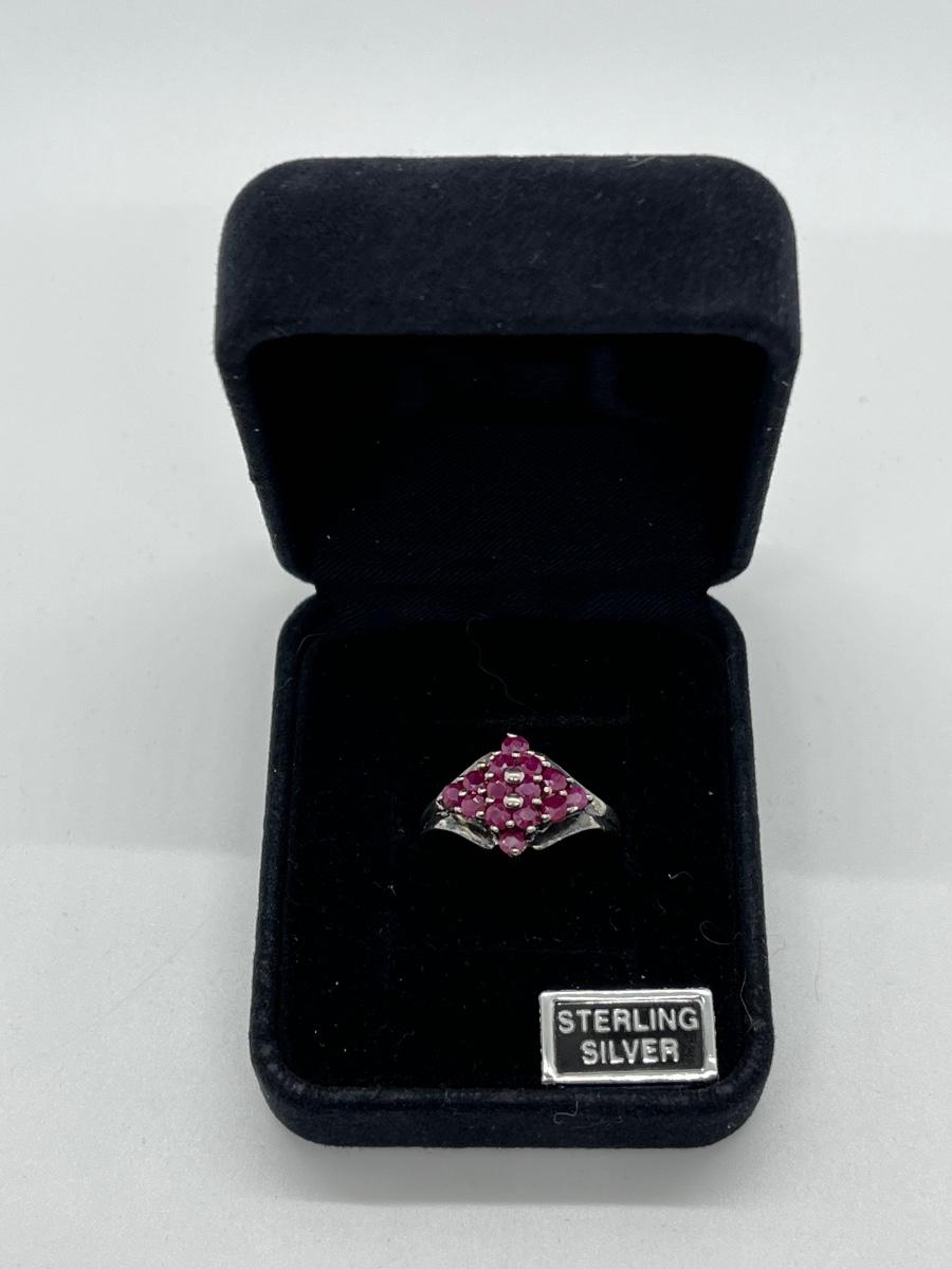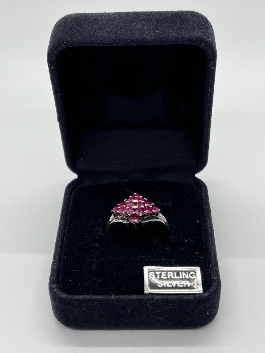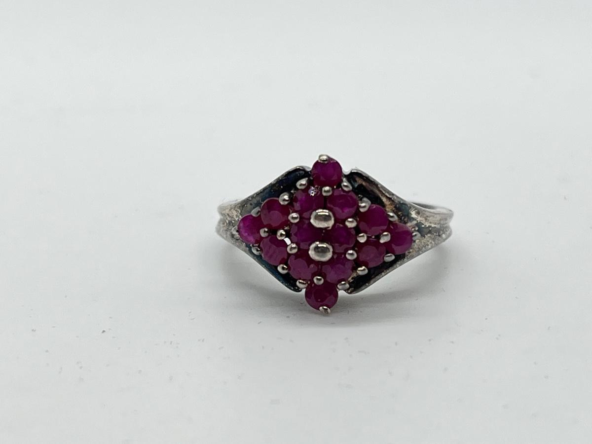 LOT 23: Sterling Silver 1.12 ct tw Savanna Ruby Cluster Ring - Size 7