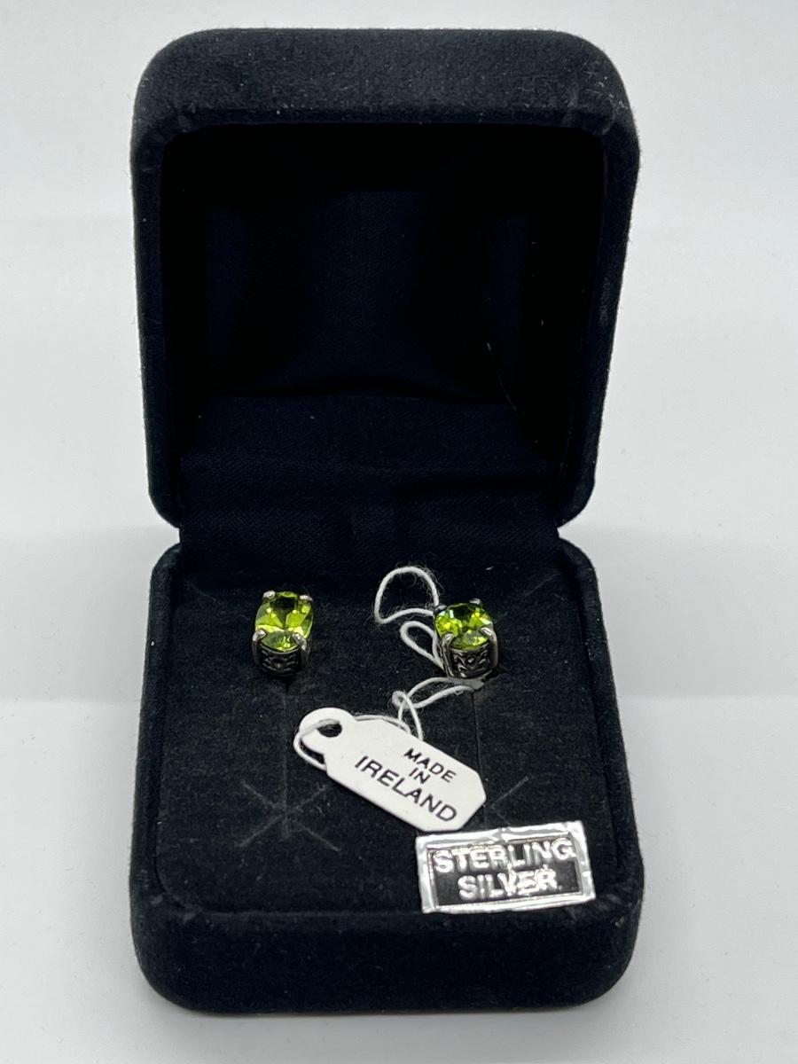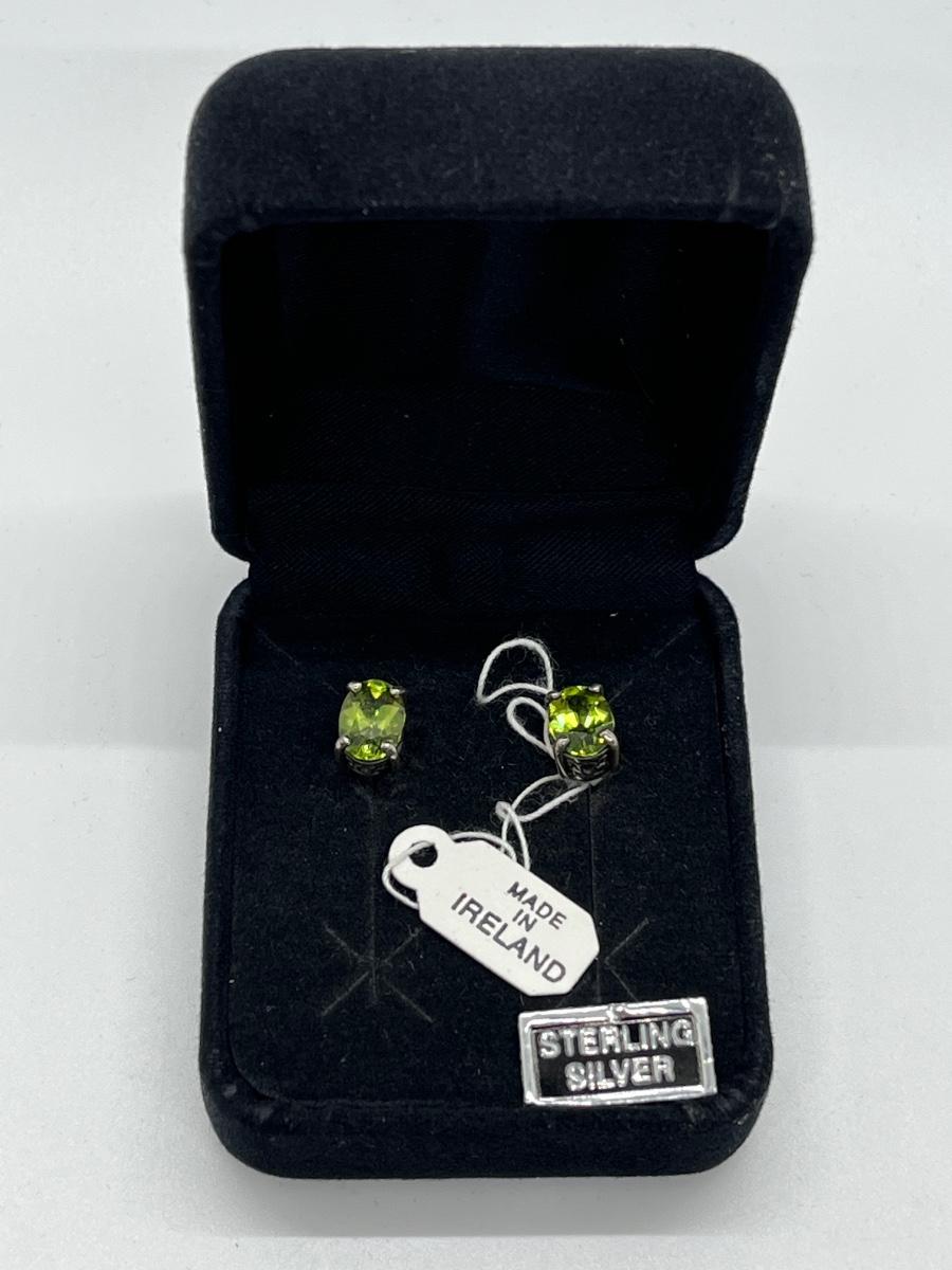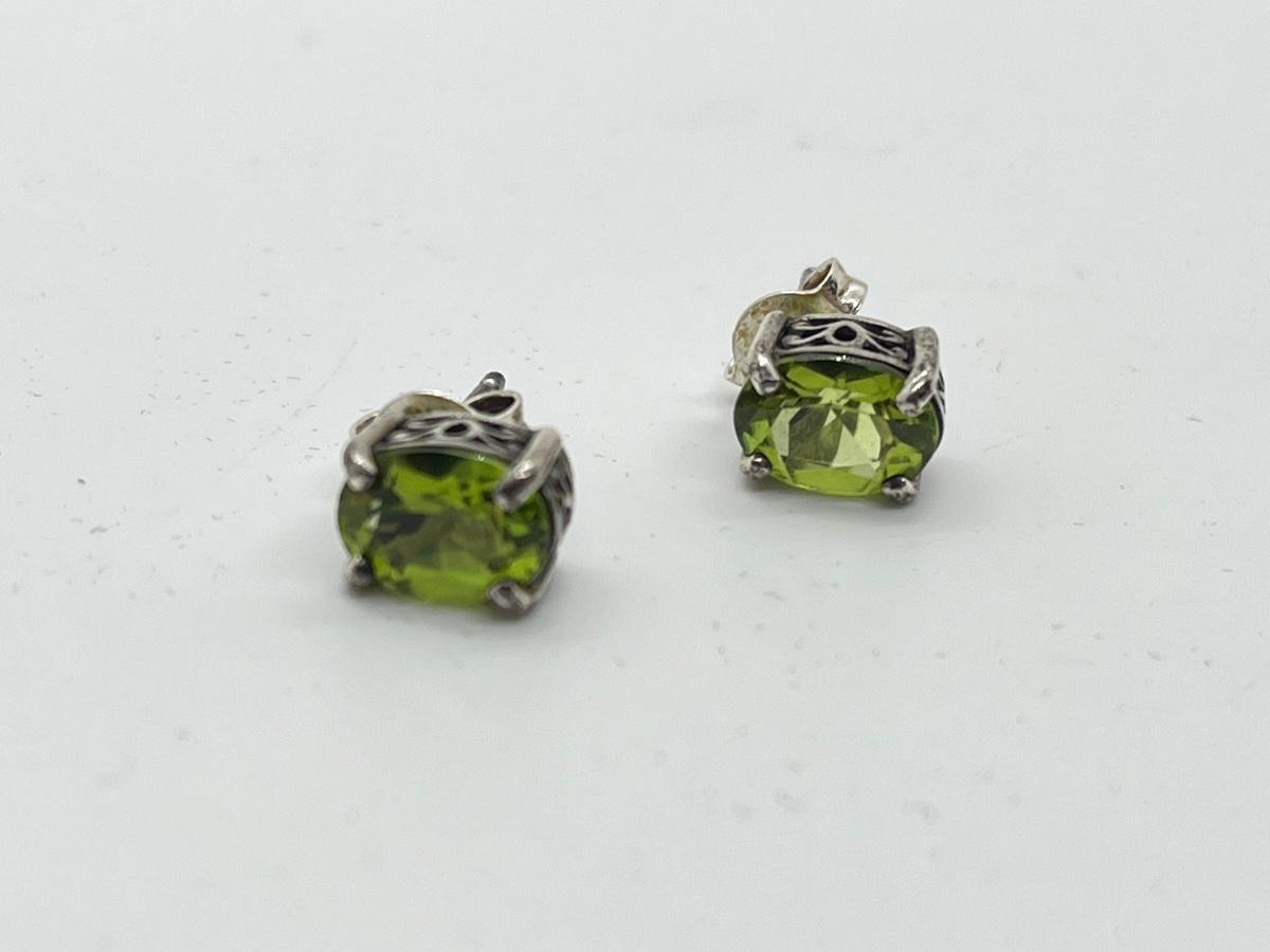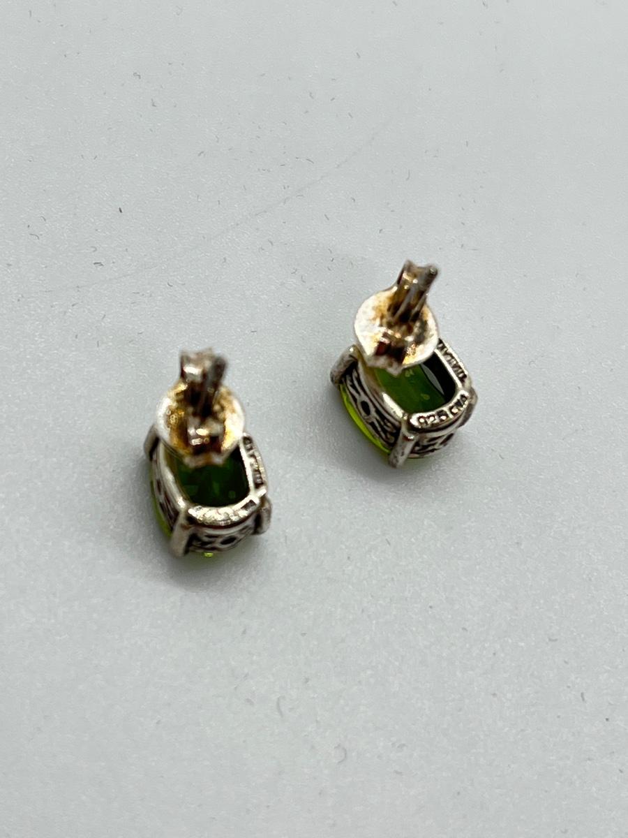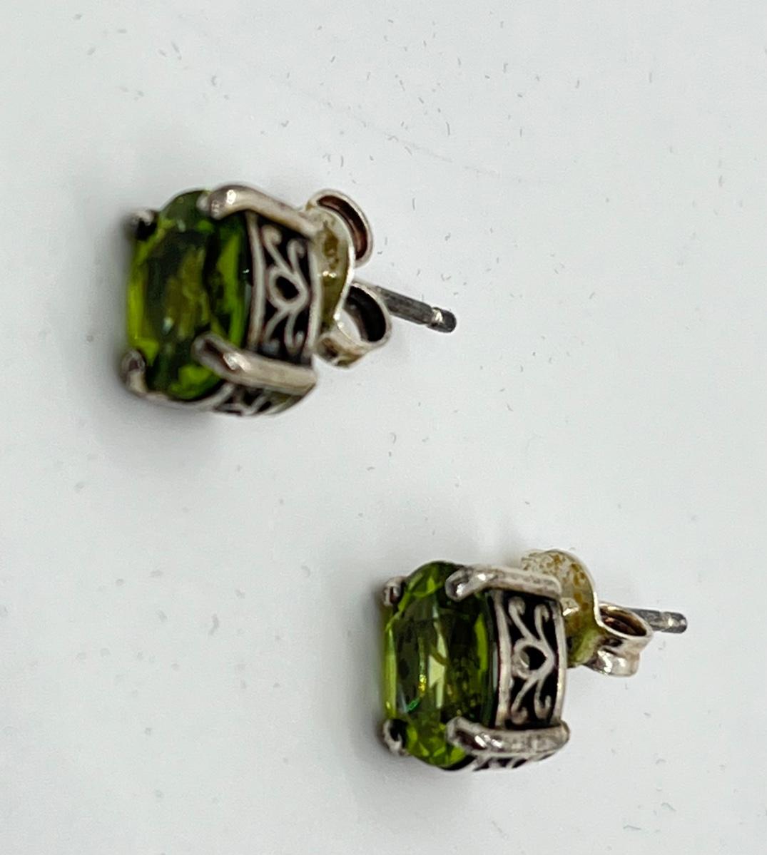 LOT 24: Himalayan Peridot Sterling Silver Oval Stud Pierced  Earrings