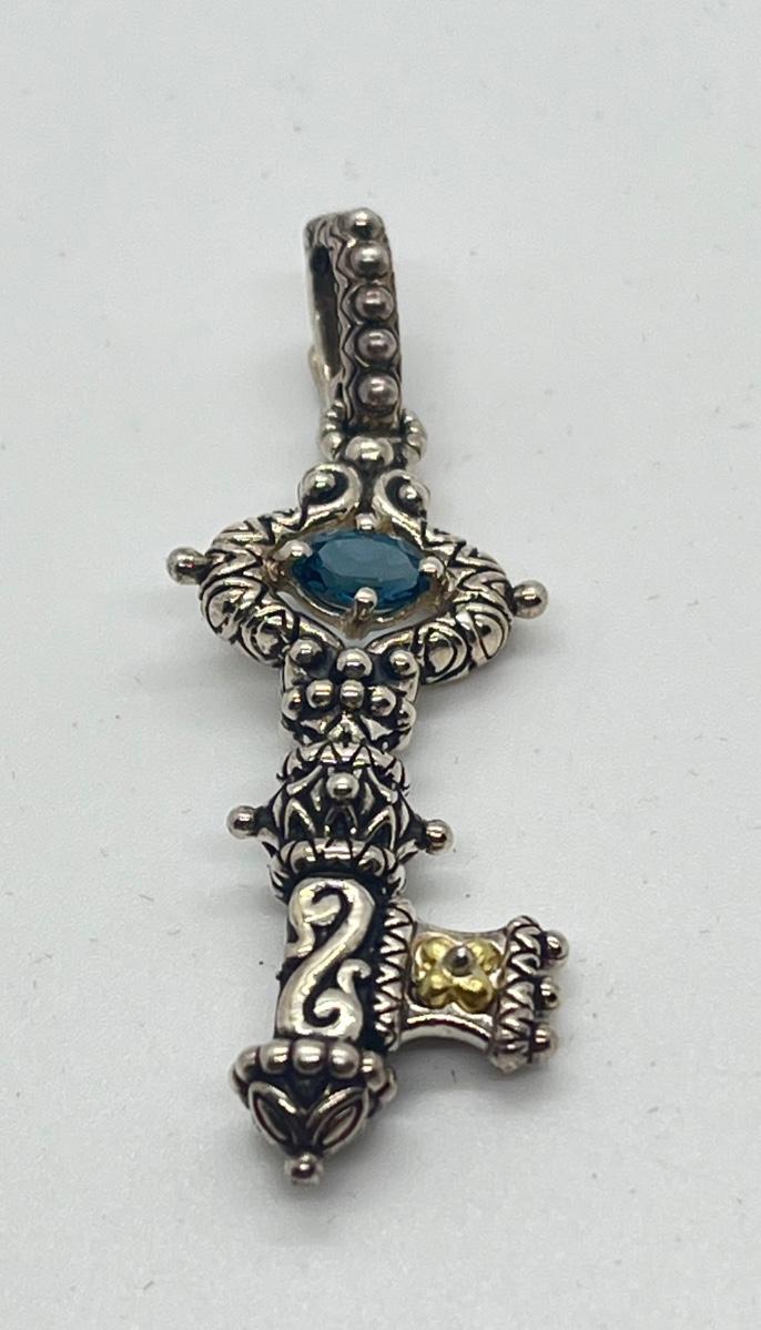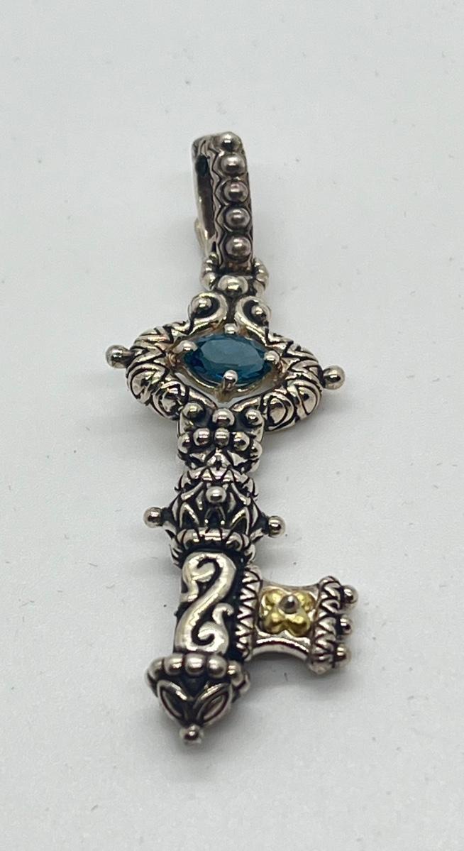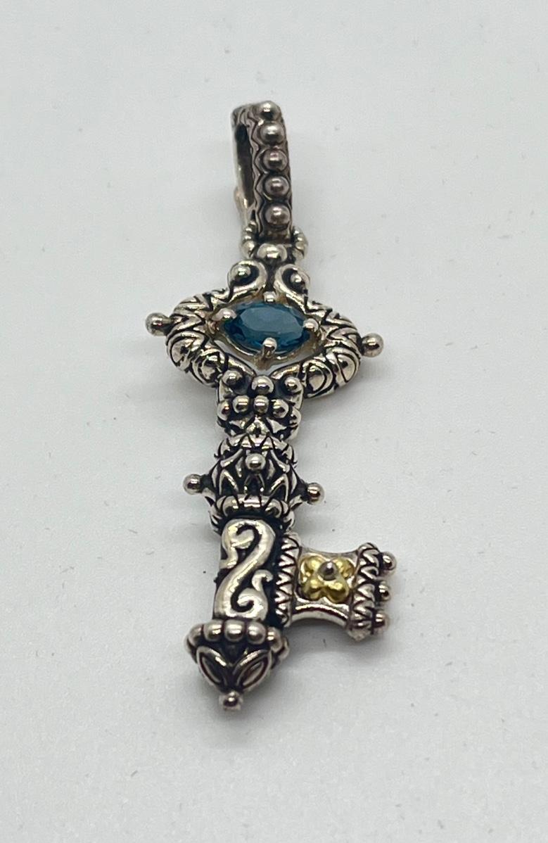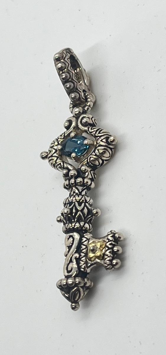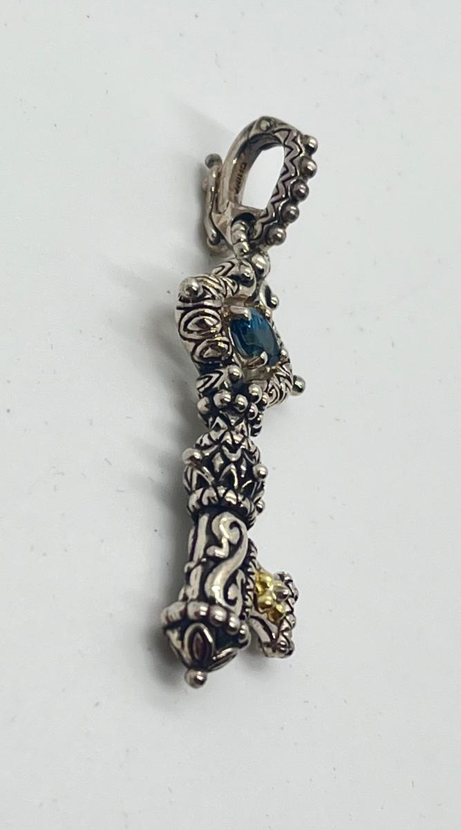 LOT 30: Barbara Bixby Gemstone Key Enhancer/Pendant - Sterling Silver & 18K Gold - Blue Topaz