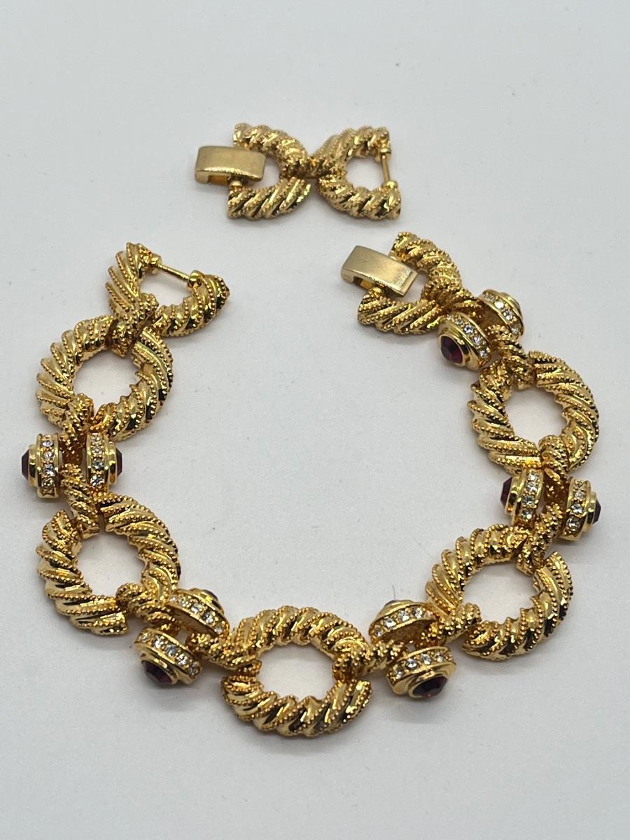 LOT 32: Rope Design & Crystal Jaqueline Kennedy Link Bracelet - 7-1/4" - 8-1/4"