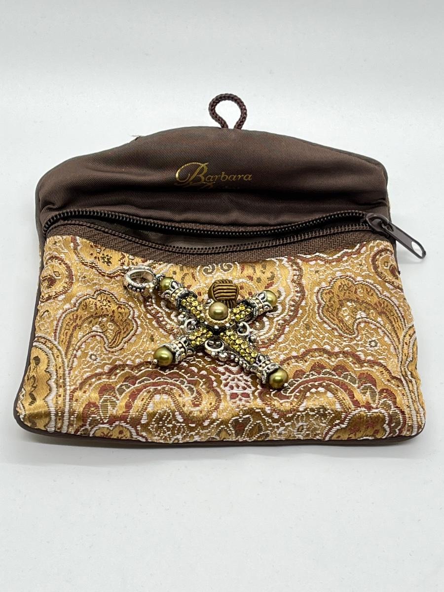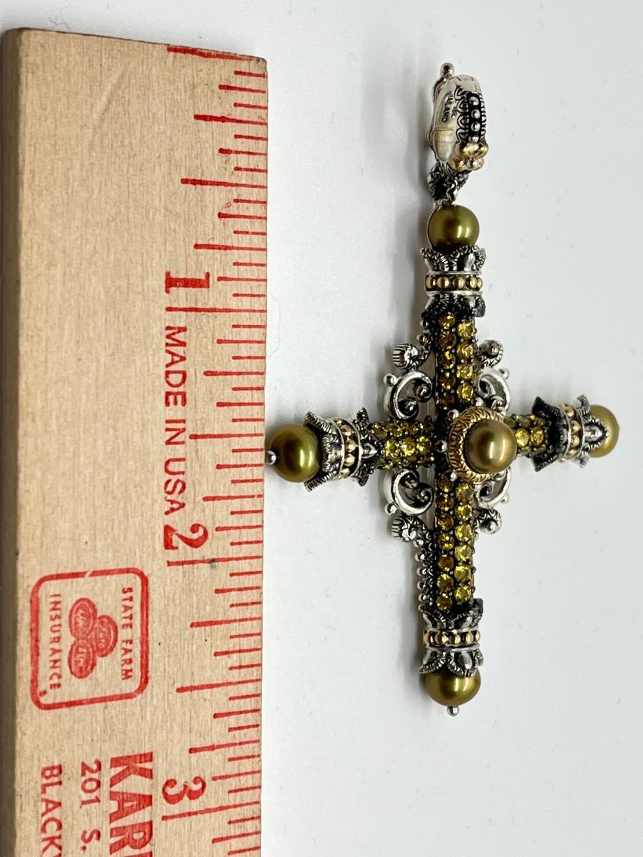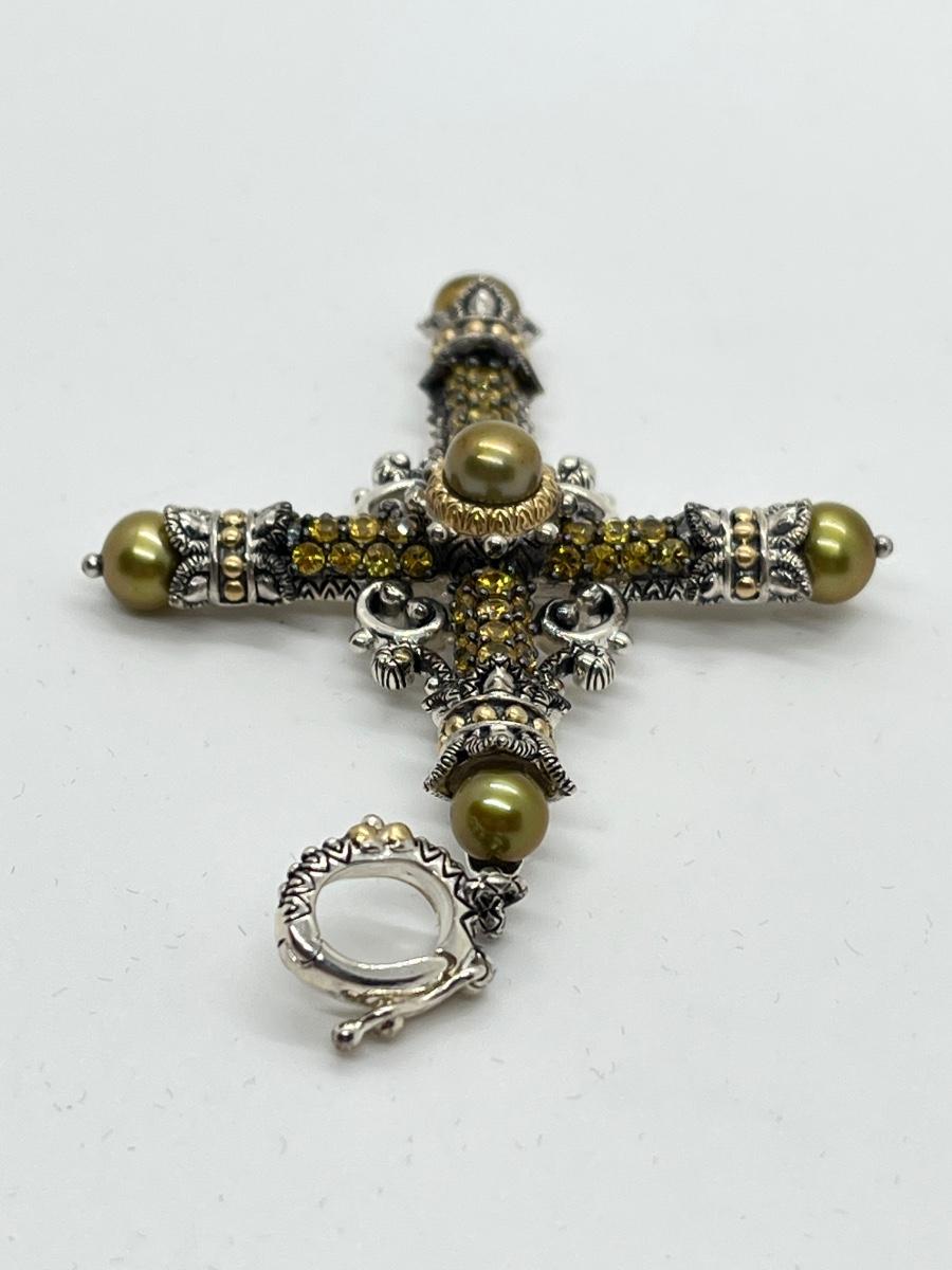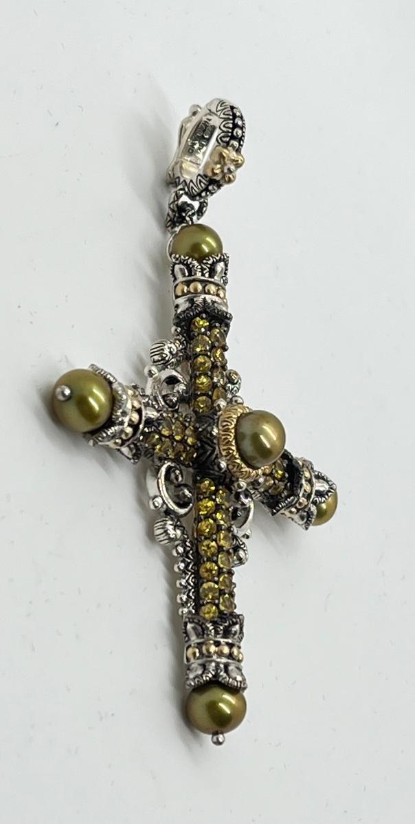 LOT 41: Barbara Bixby Sterling Silver & 18K Gold 2 ct tw Pave Gemstone Cross - Yellow Sapphire