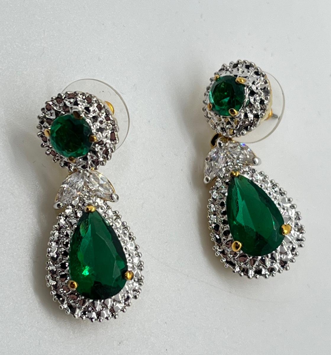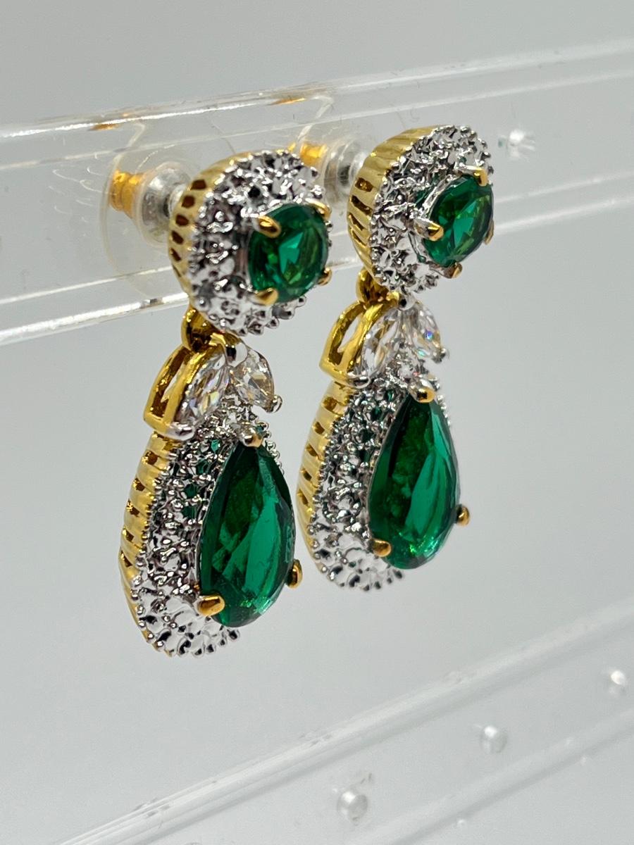 LOT 47: Simulated Emerald Jaqueline Kennedy Drop Earrings