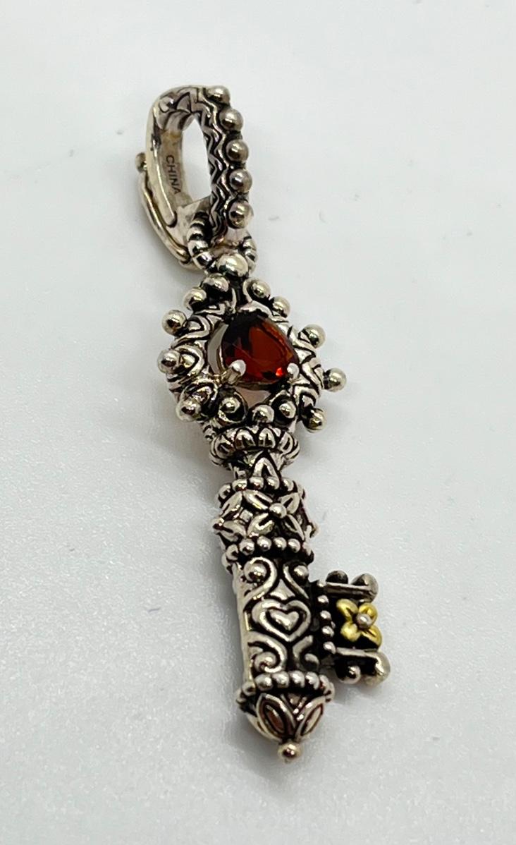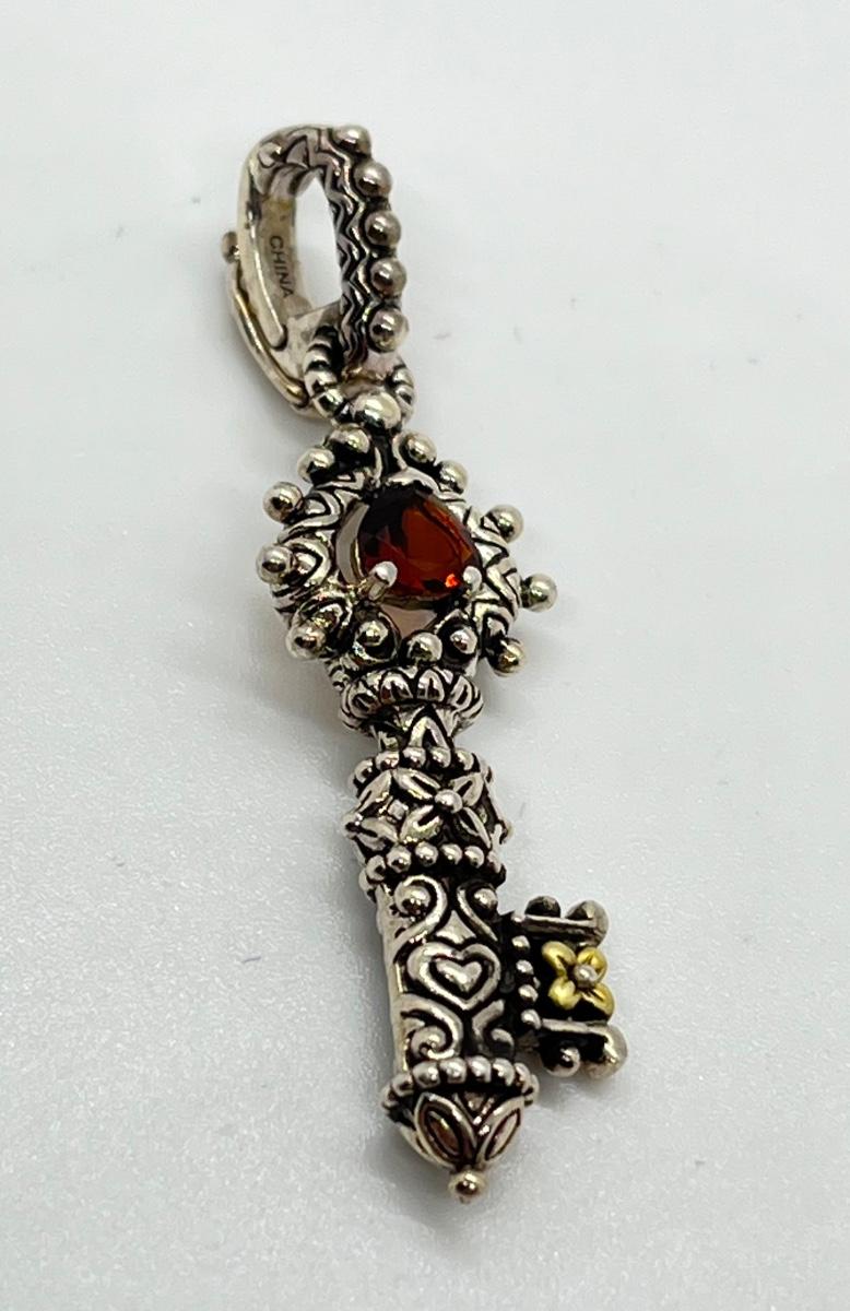 LOT 49: Barbara Bixby Gemstone Key Enhancer/Pendant - Sterling Silver &18K Gold - Madeira Citrine