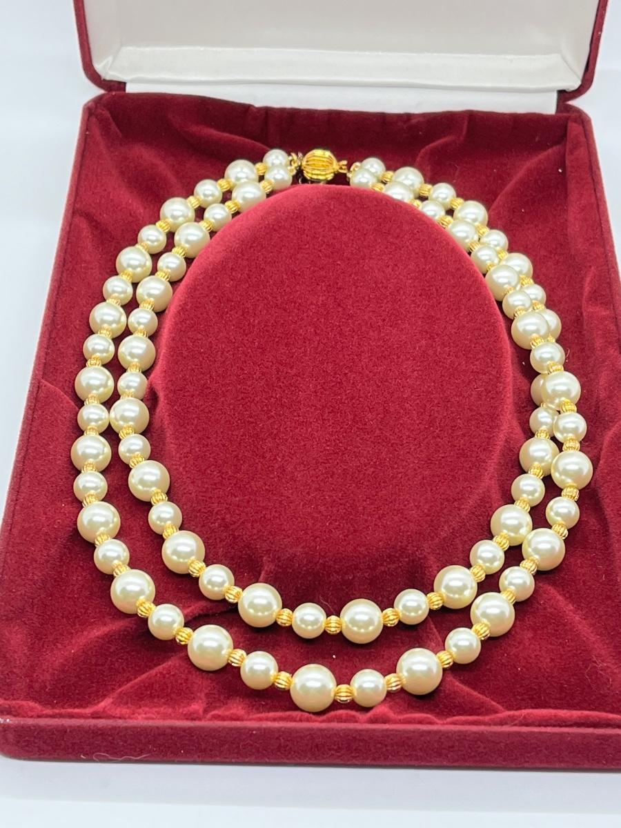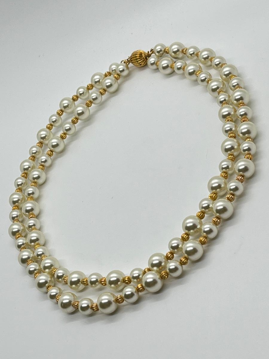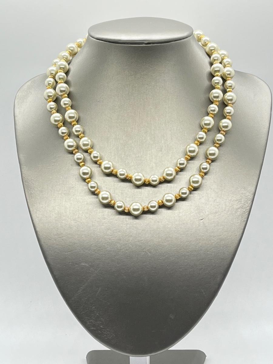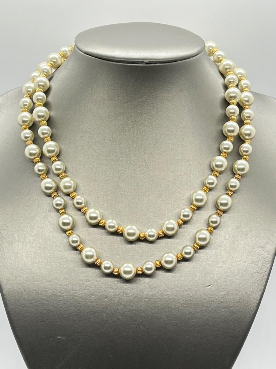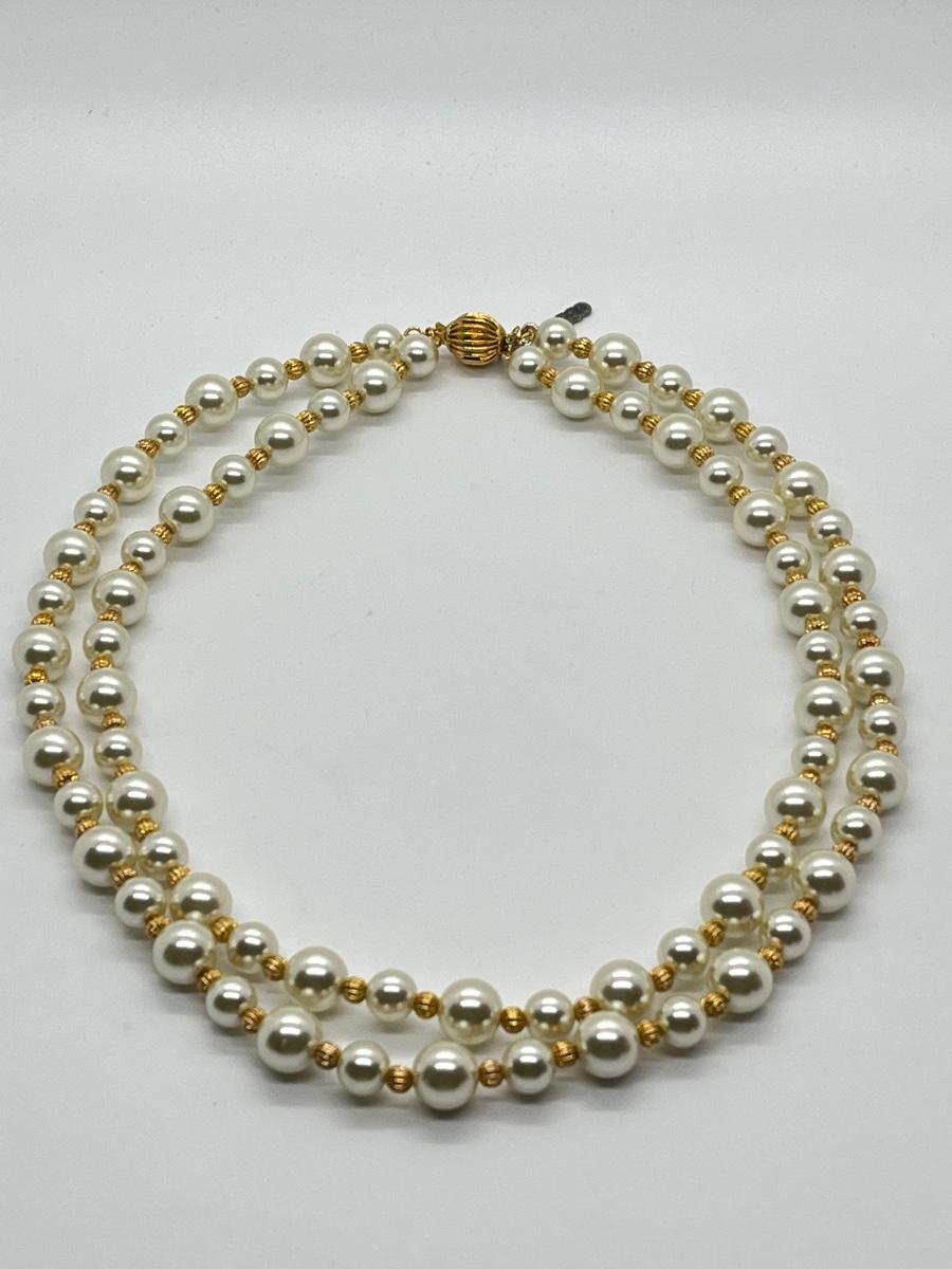 LOT 52: Jaqueline Kennedy 2-Strand Simulated Pearl and Bead 18" Necklace