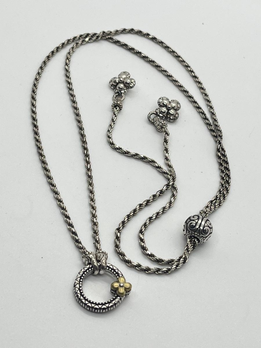 LOT 61: Barbara Bixby Sterling Silver  & 18K Gold 30" Adjustable Necklace