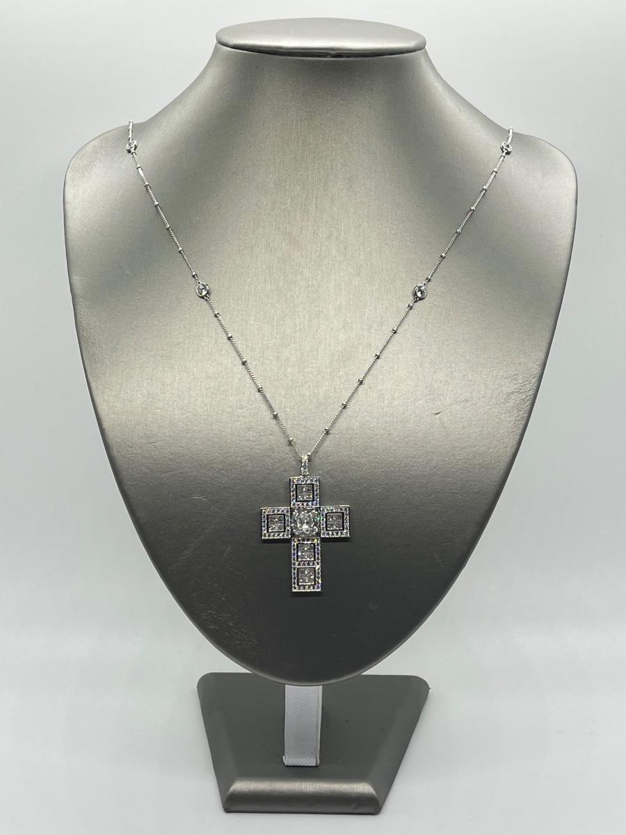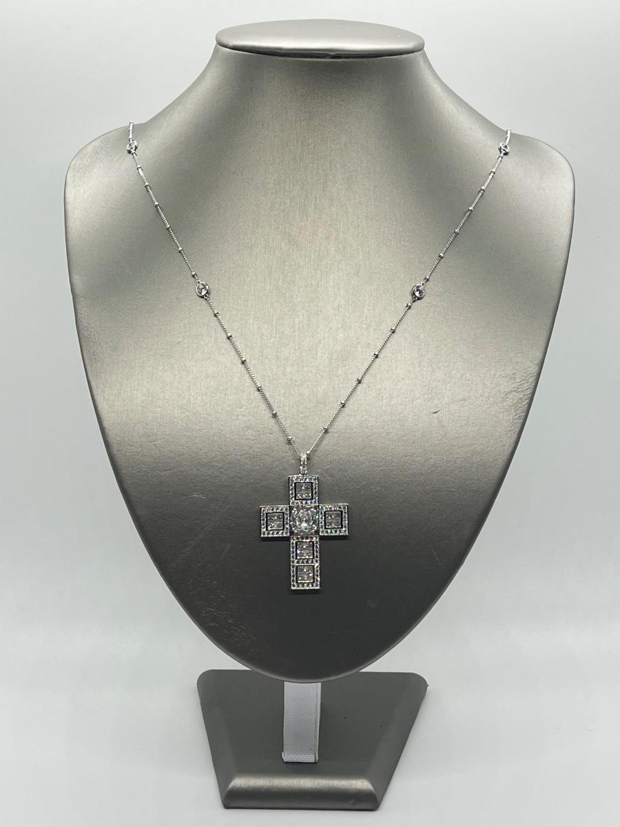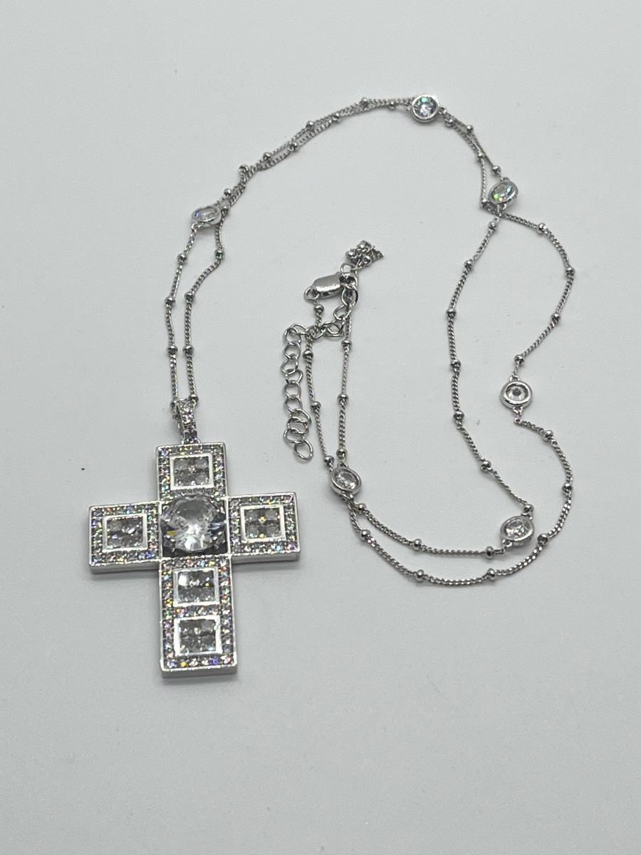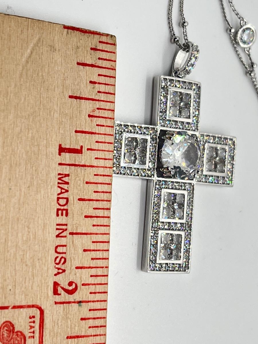LOT 65: Diamonique Sterling Silver Cross on 24" Chain w 2" Ext.