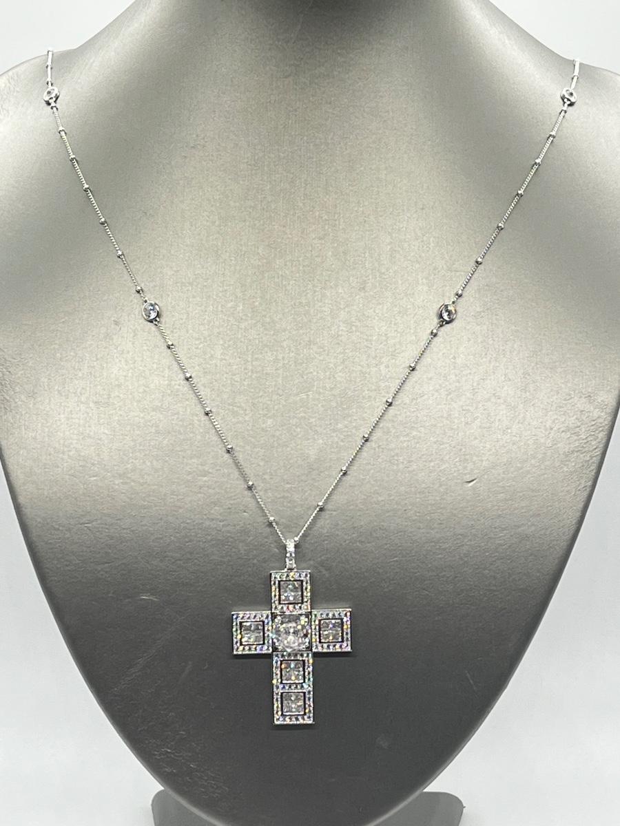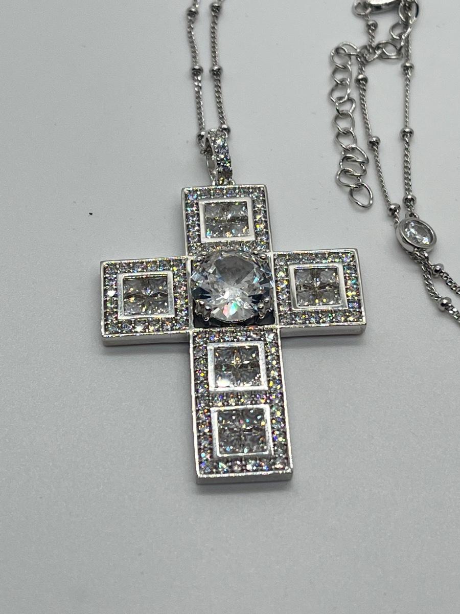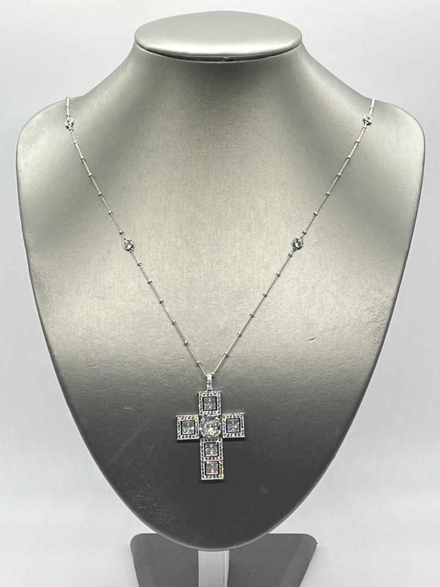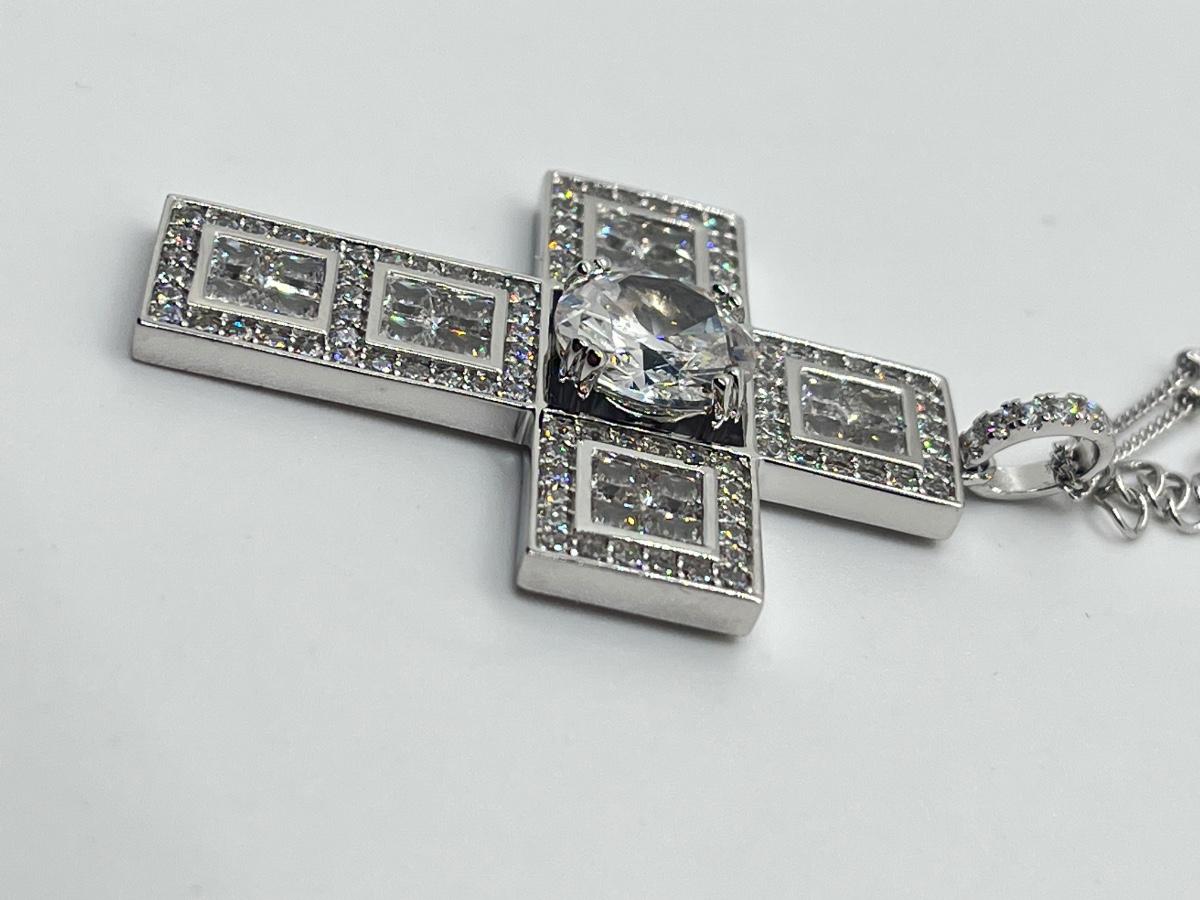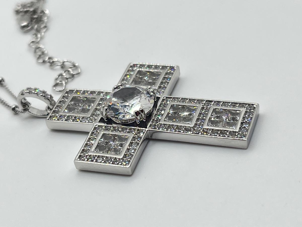 LOT 65: Diamonique Sterling Silver Cross on 24" Chain w 2" Ext.