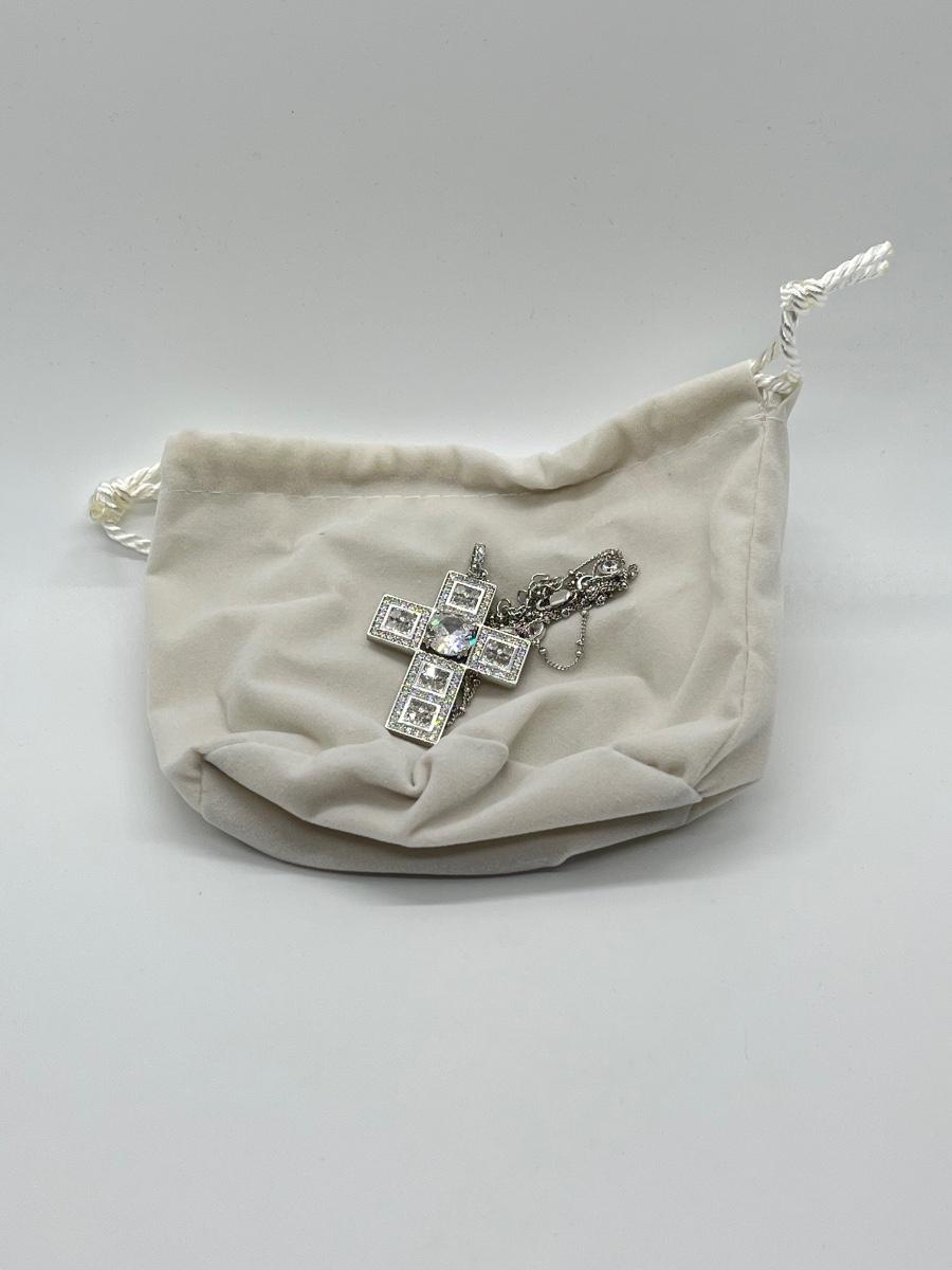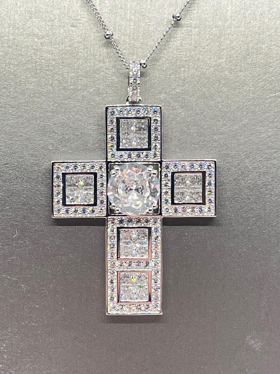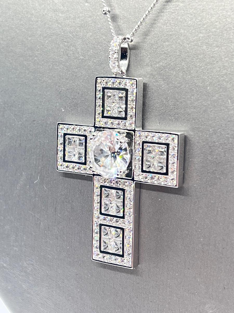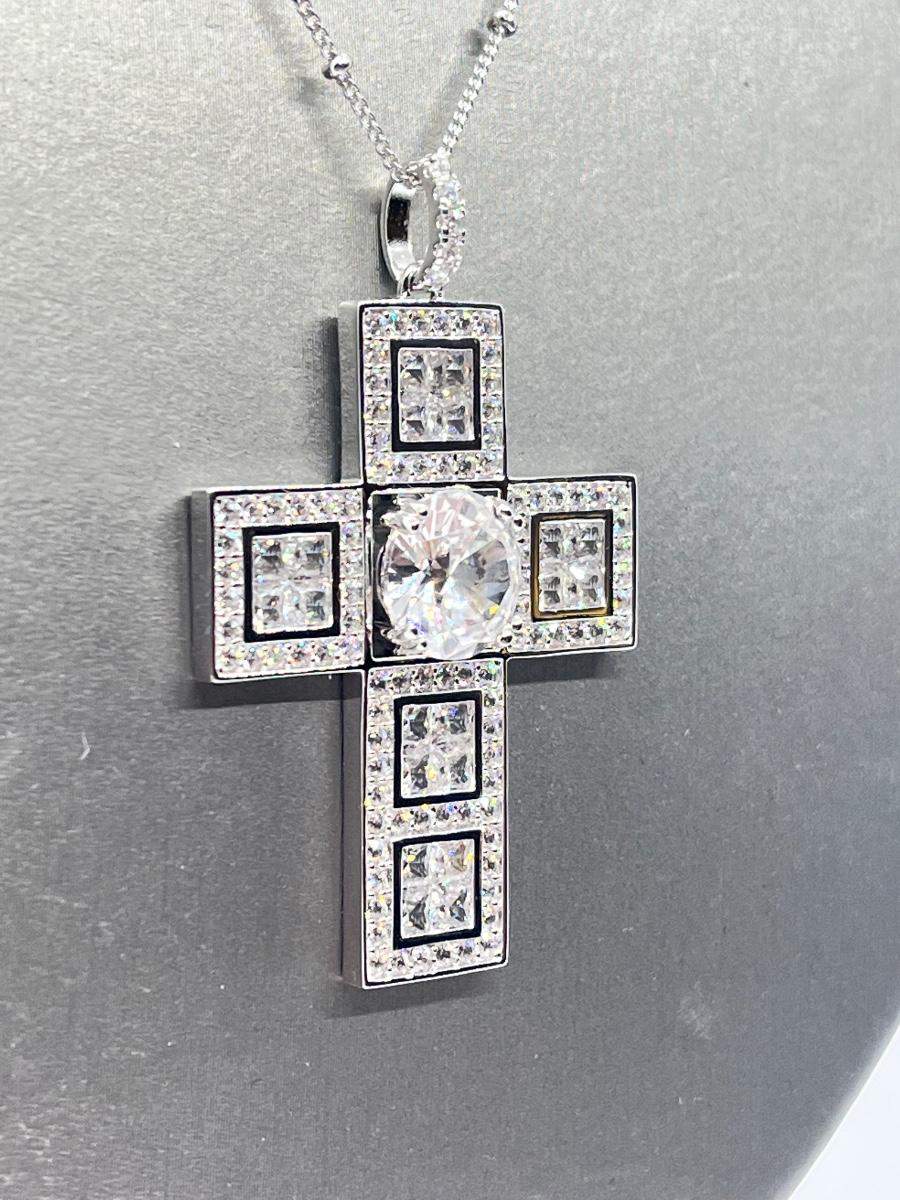 LOT 65: Diamonique Sterling Silver Cross on 24" Chain w 2" Ext.