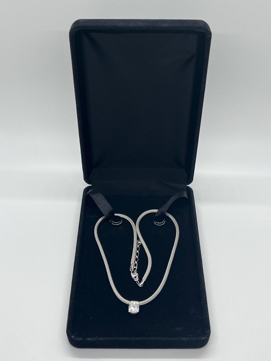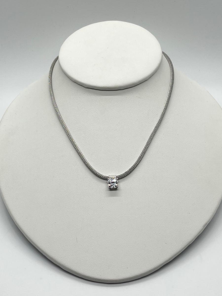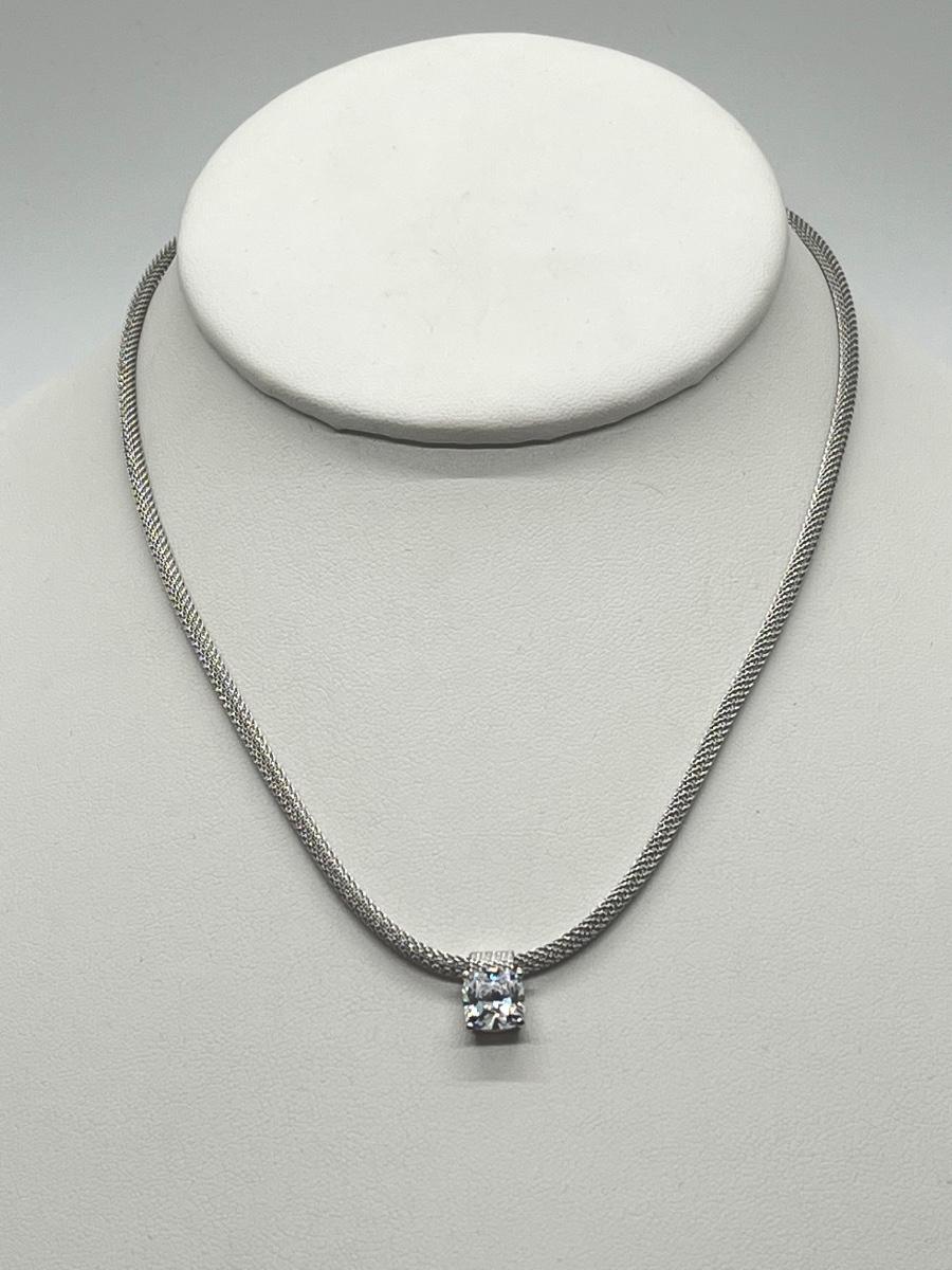 LOT 66: Sterling Silver 2 ct Diamonique Cushion Cut Pendant on Adjustable Necklace - 16" + 2" ext.