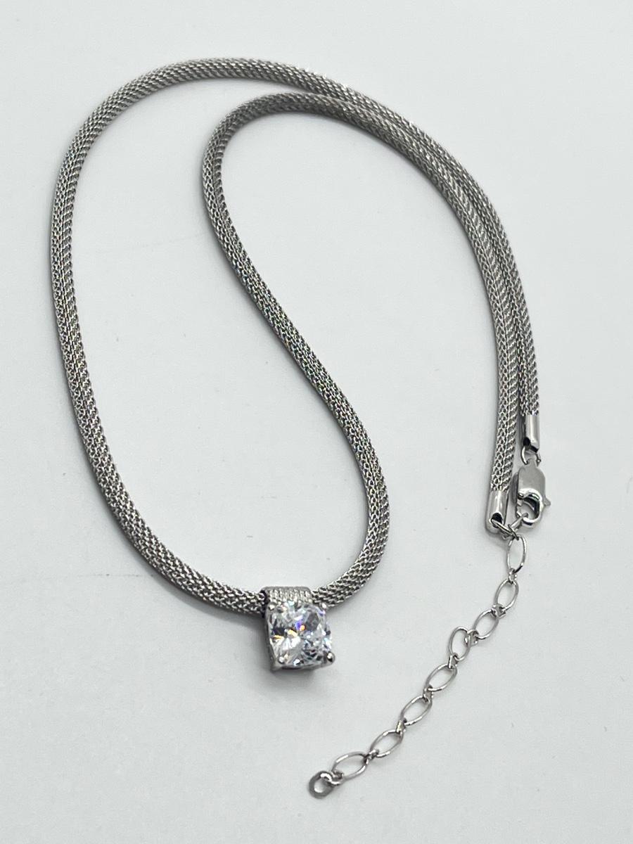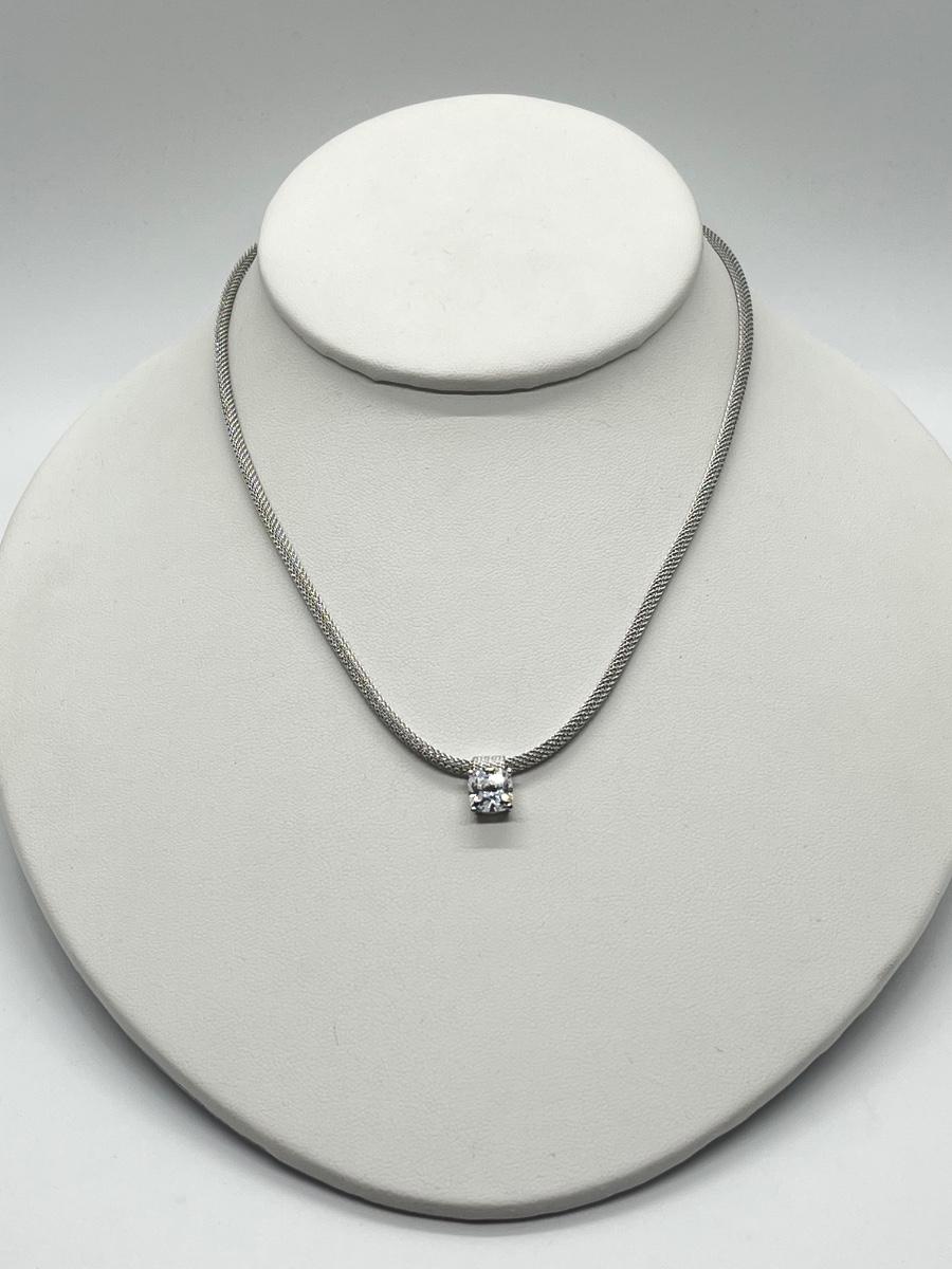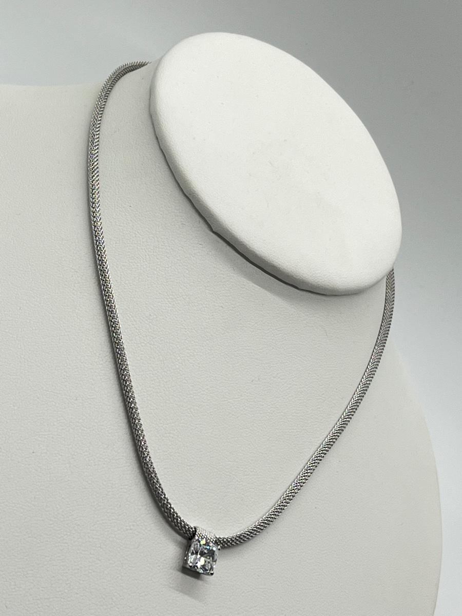 LOT 66: Sterling Silver 2 ct Diamonique Cushion Cut Pendant on Adjustable Necklace - 16" + 2" ext.
