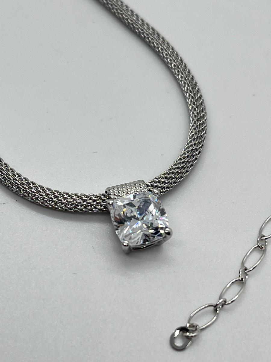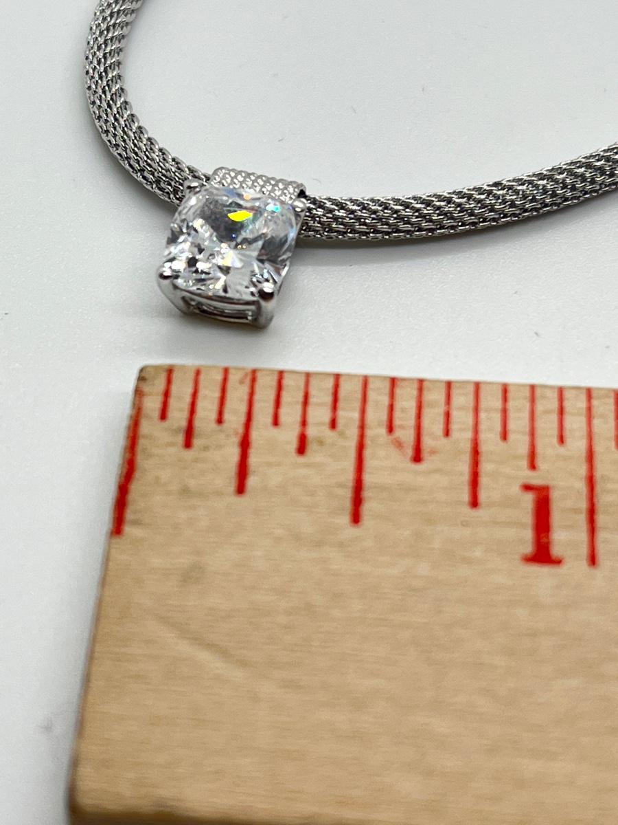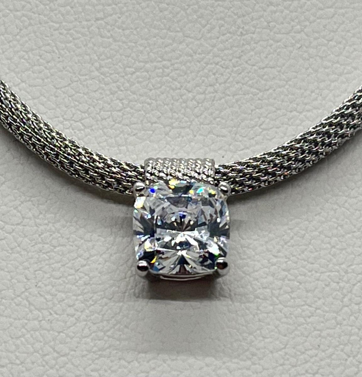 LOT 66: Sterling Silver 2 ct Diamonique Cushion Cut Pendant on  Adjustable Necklace - 16" + 2" ext.