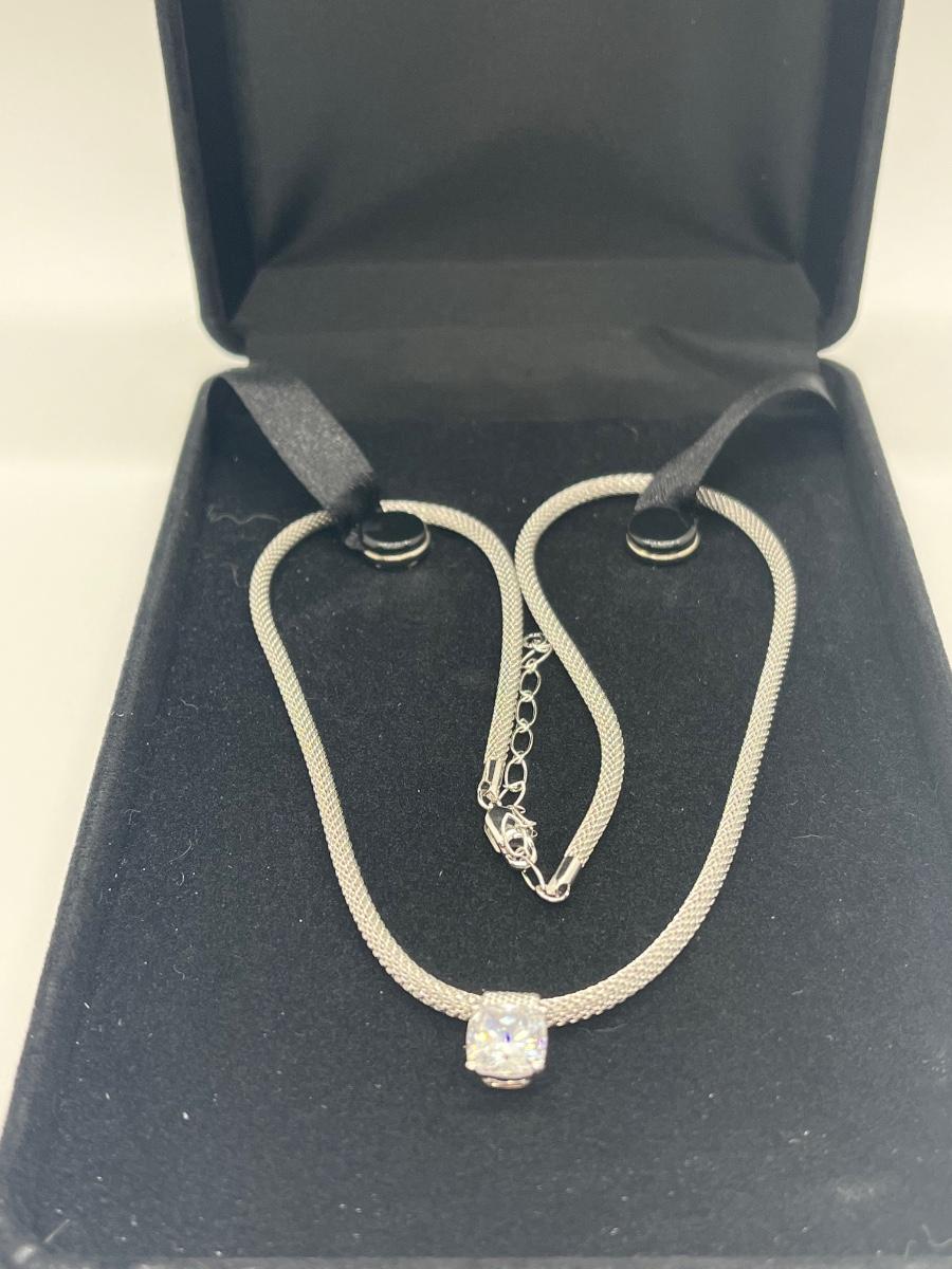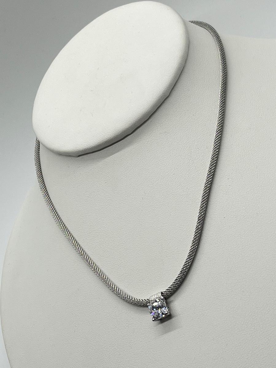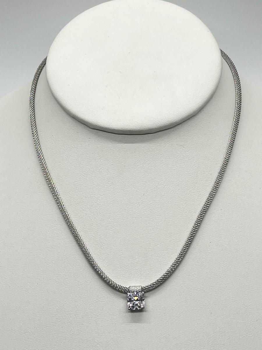 LOT 66: Sterling Silver 2 ct Diamonique Cushion Cut Pendant on  Adjustable Necklace - 16" + 2" ext.