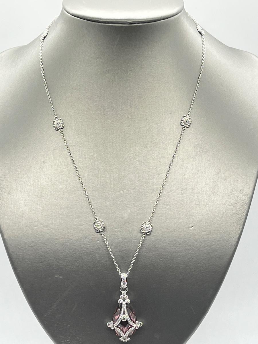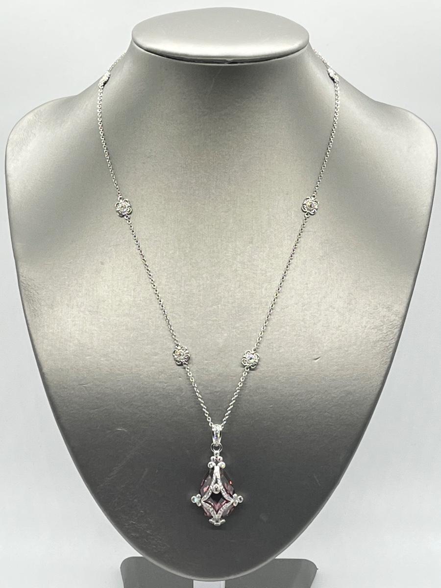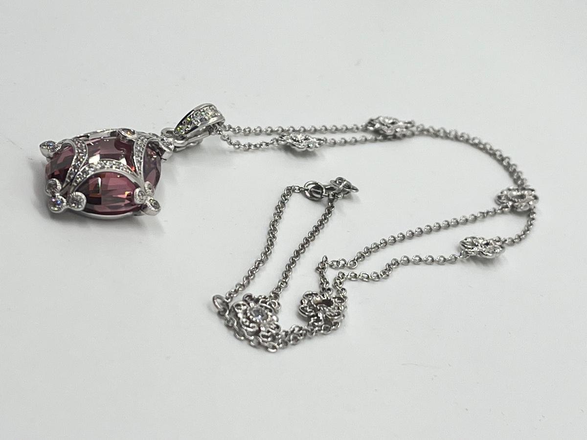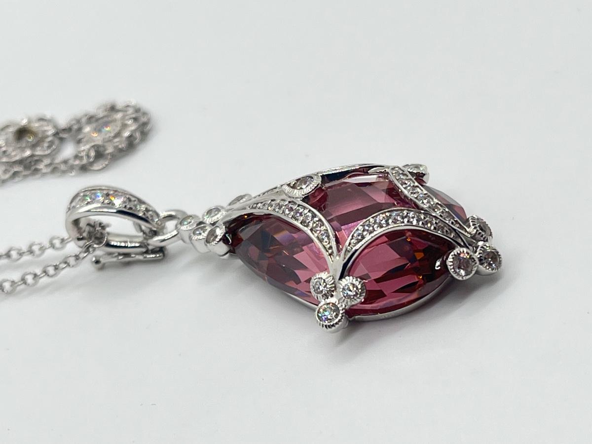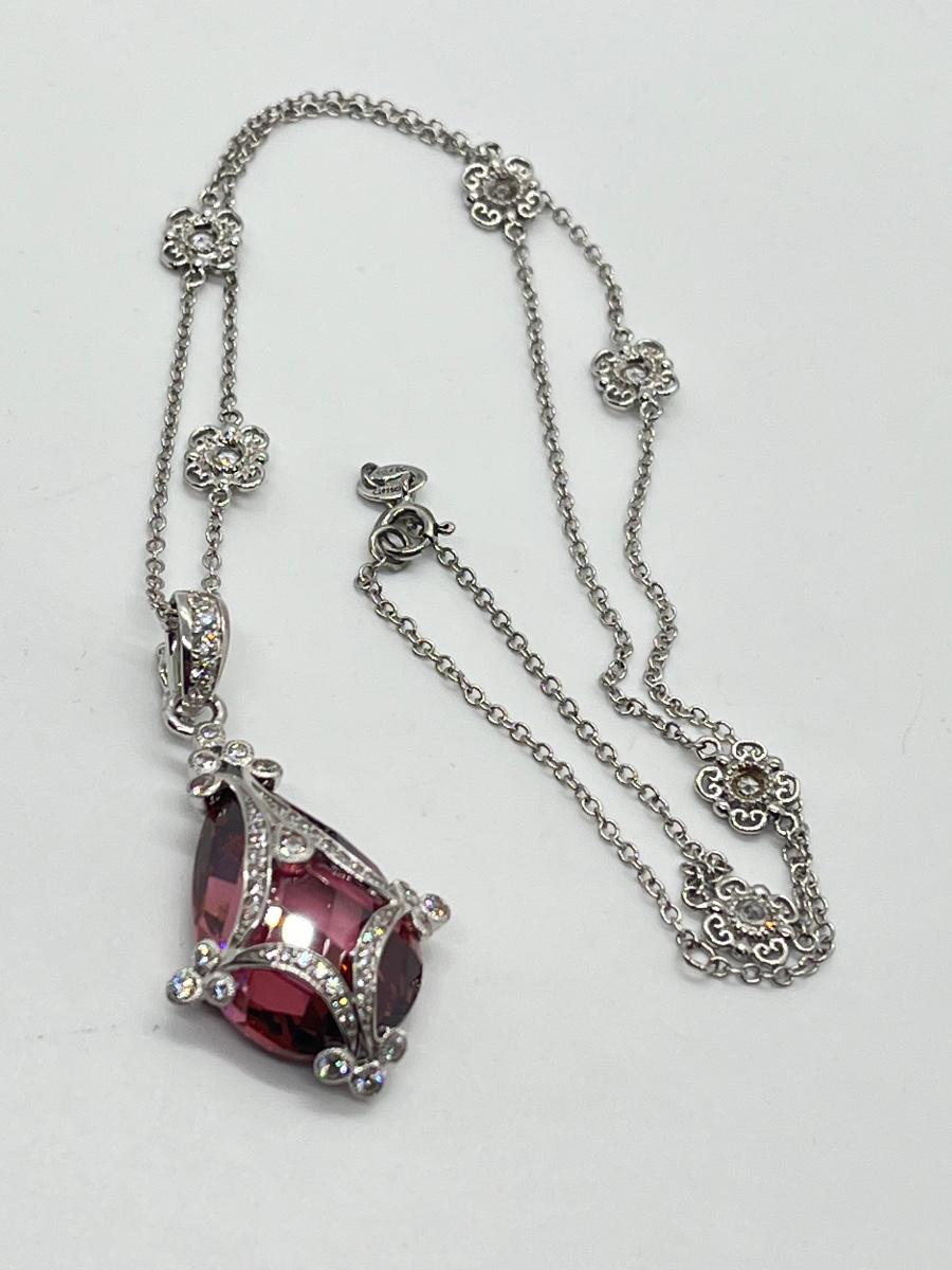 LOT 67: Erica Courtney Diamonique Pink Tourmaline Sterling Silver Enhancer/Pendant on 20" Chain