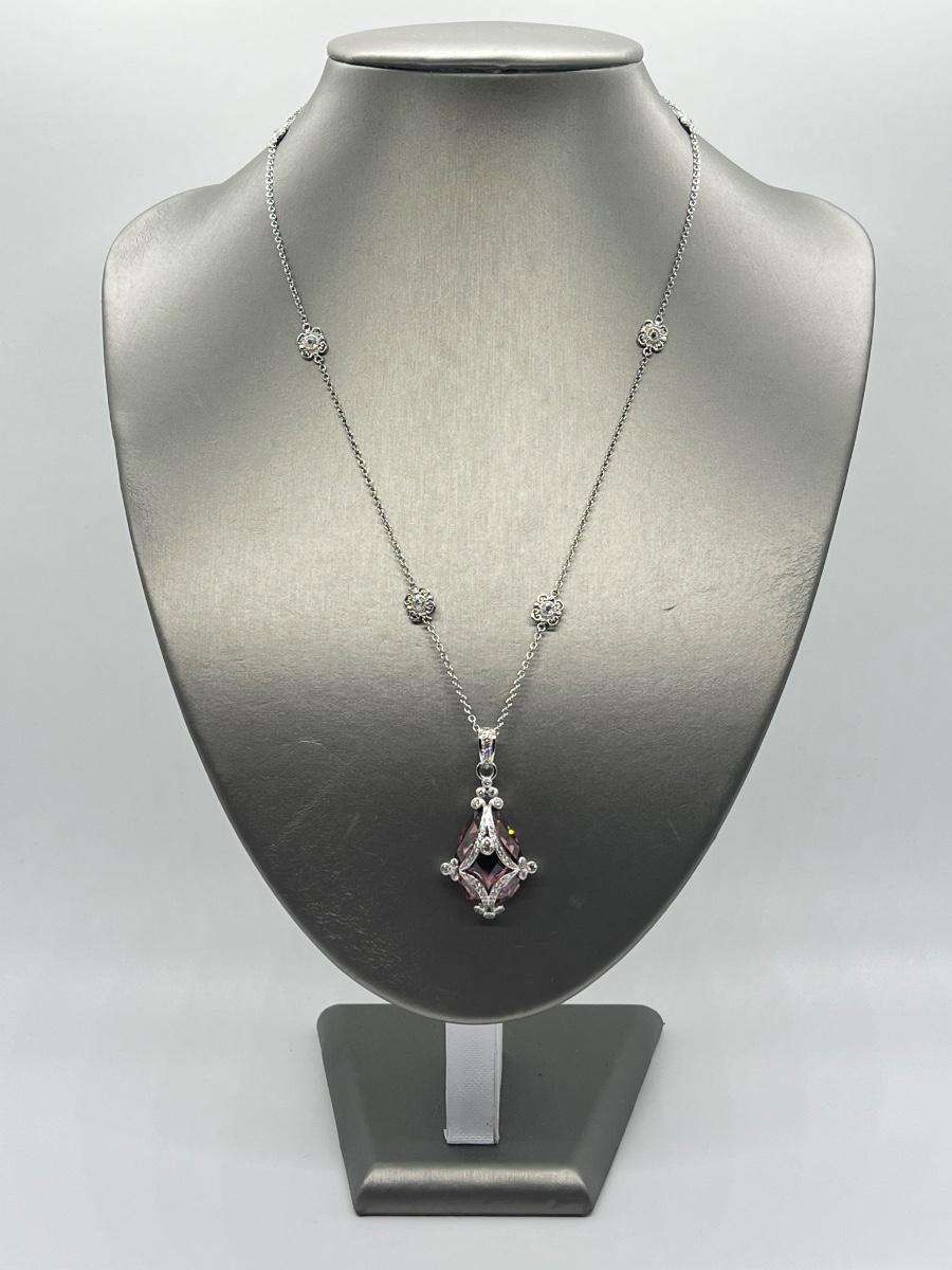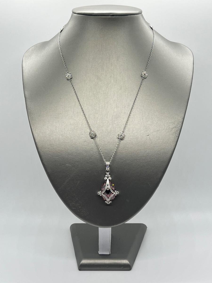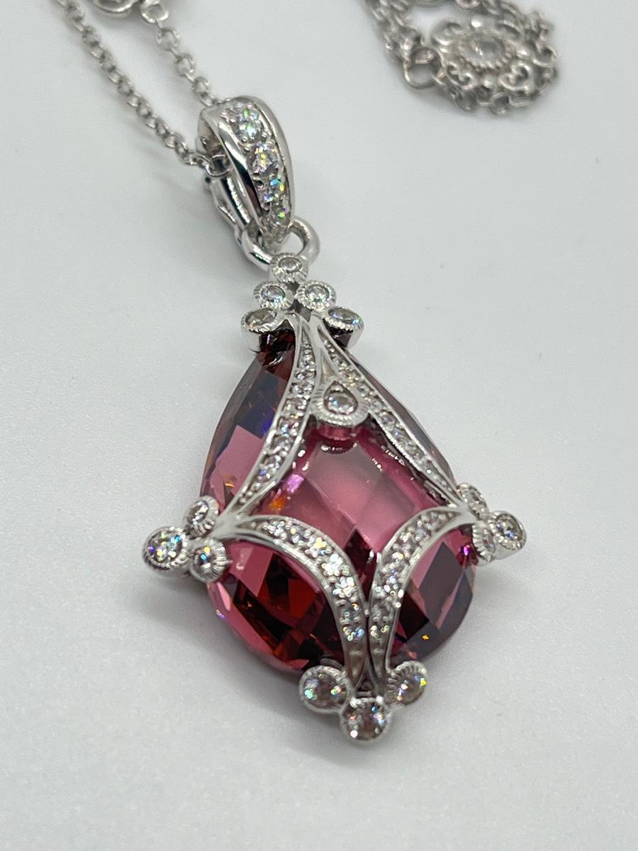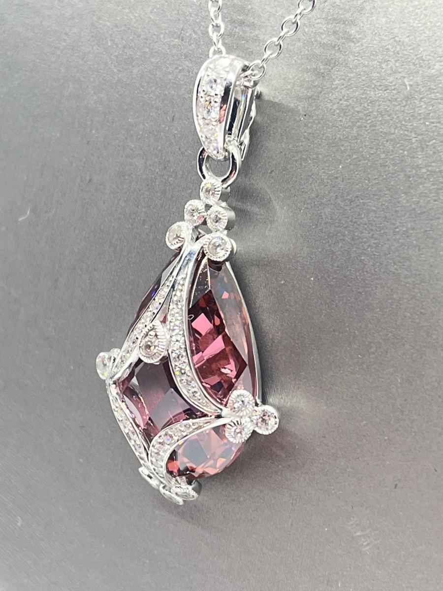 LOT 67: Erica Courtney Diamonique Pink Tourmaline Sterling Silver Enhancer/Pendant on 20" Chain