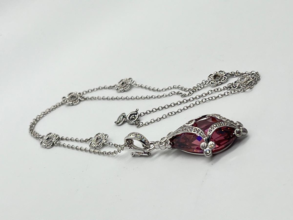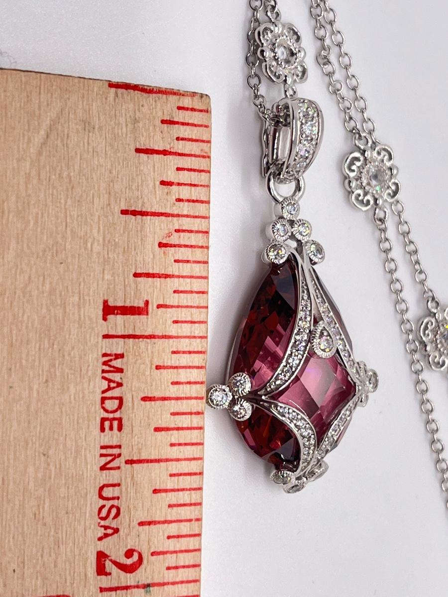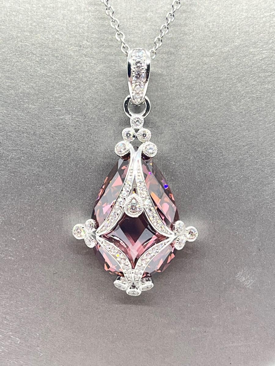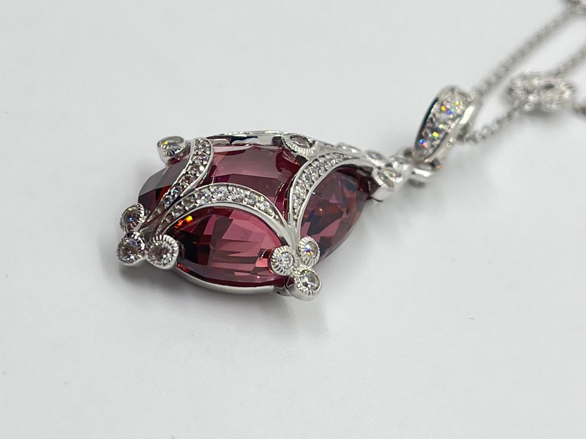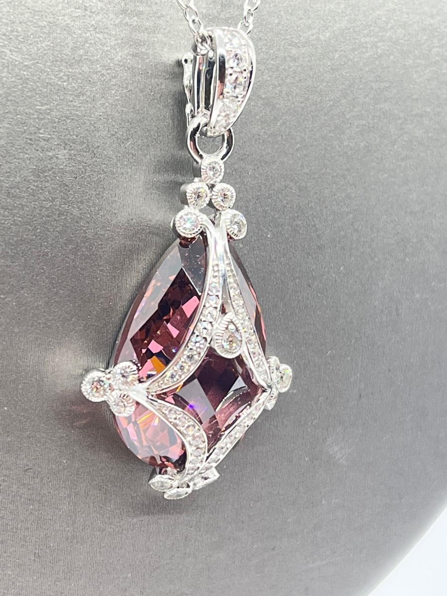 LOT 67: Erica Courtney Diamonique Pink Tourmaline Sterling Silver Enhancer/Pendant on 20" Chain