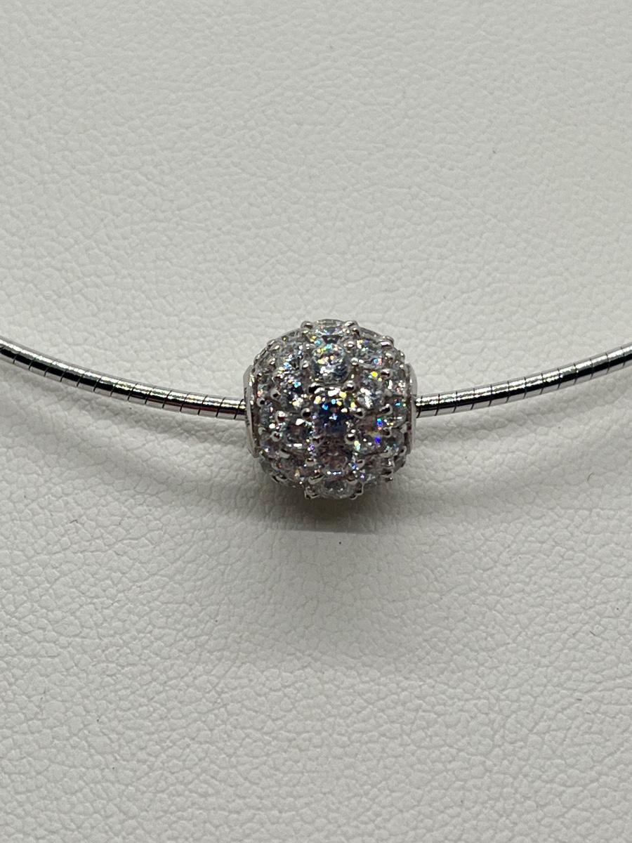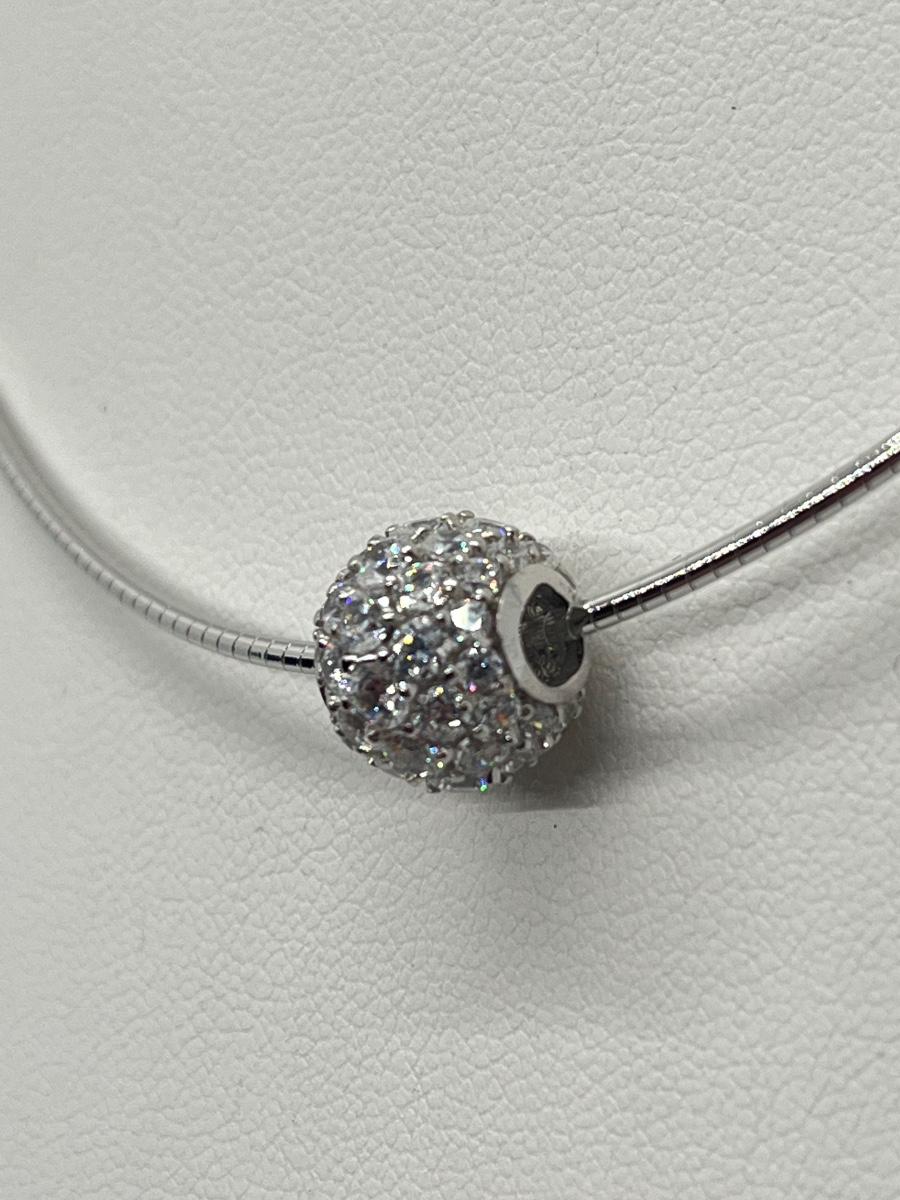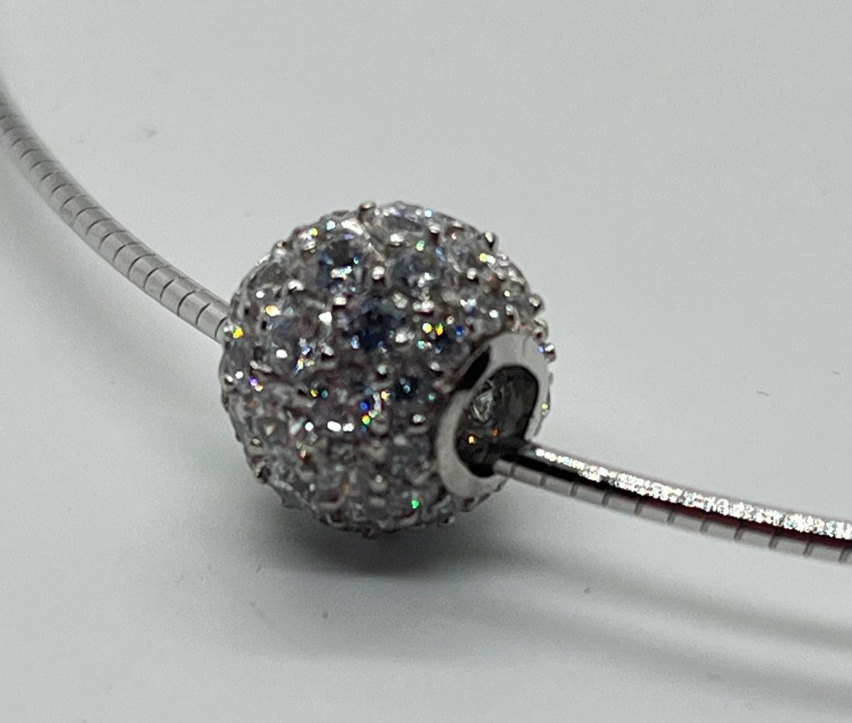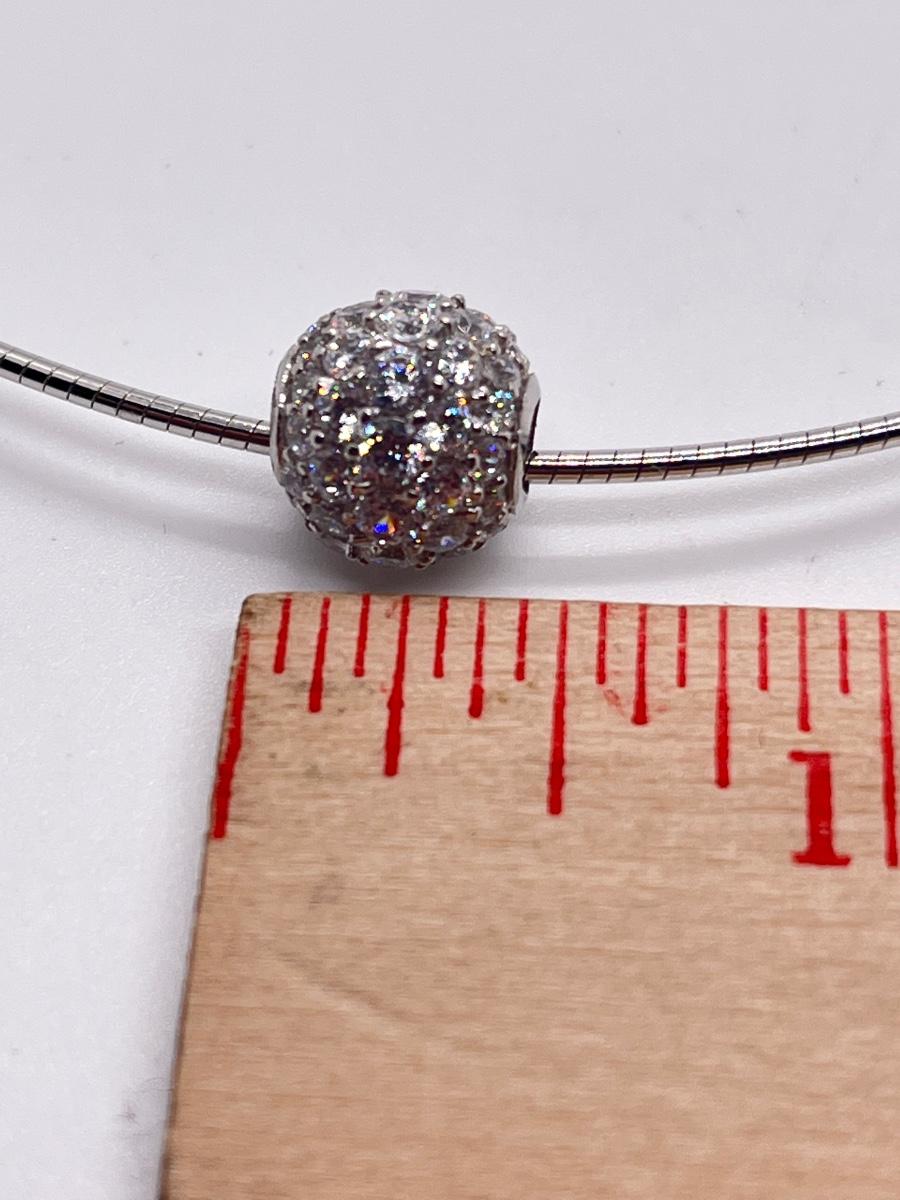 LOT 68: Epiphany Platinum Clad Diamonique Pave Bead Slide on Omega Necklace - 16: + 2" ext.