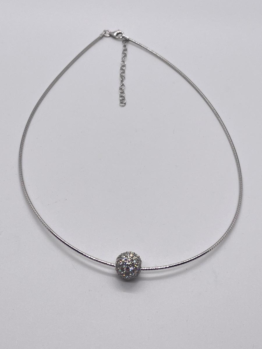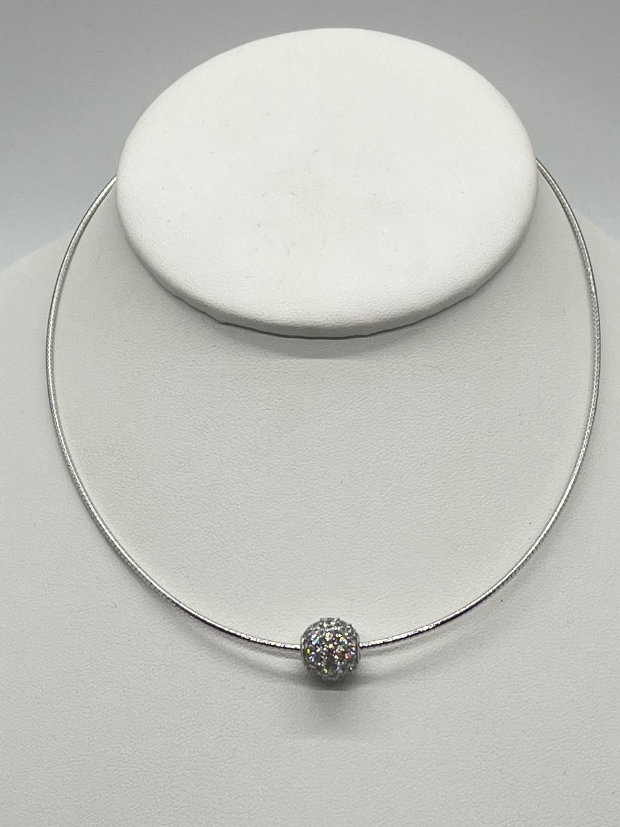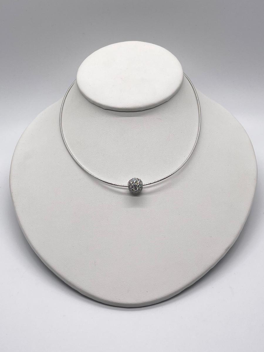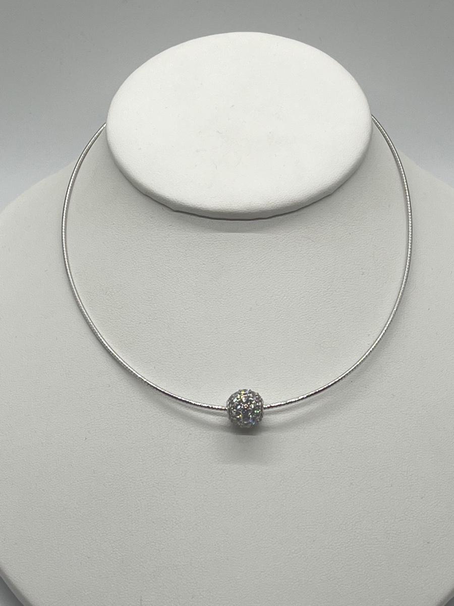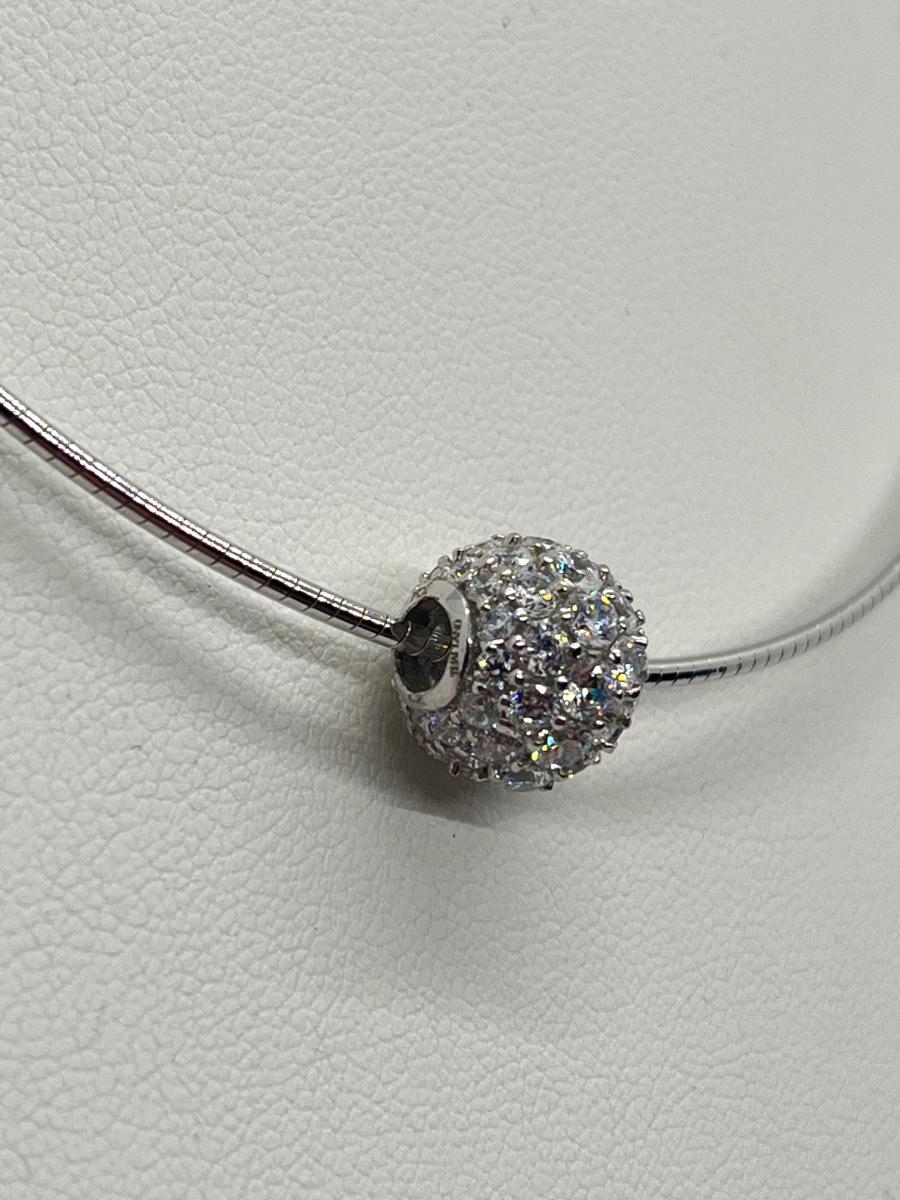 LOT 68: Epiphany Platinum Clad Diamonique Pave Bead Slide on Omega Necklace - 16: + 2" ext.