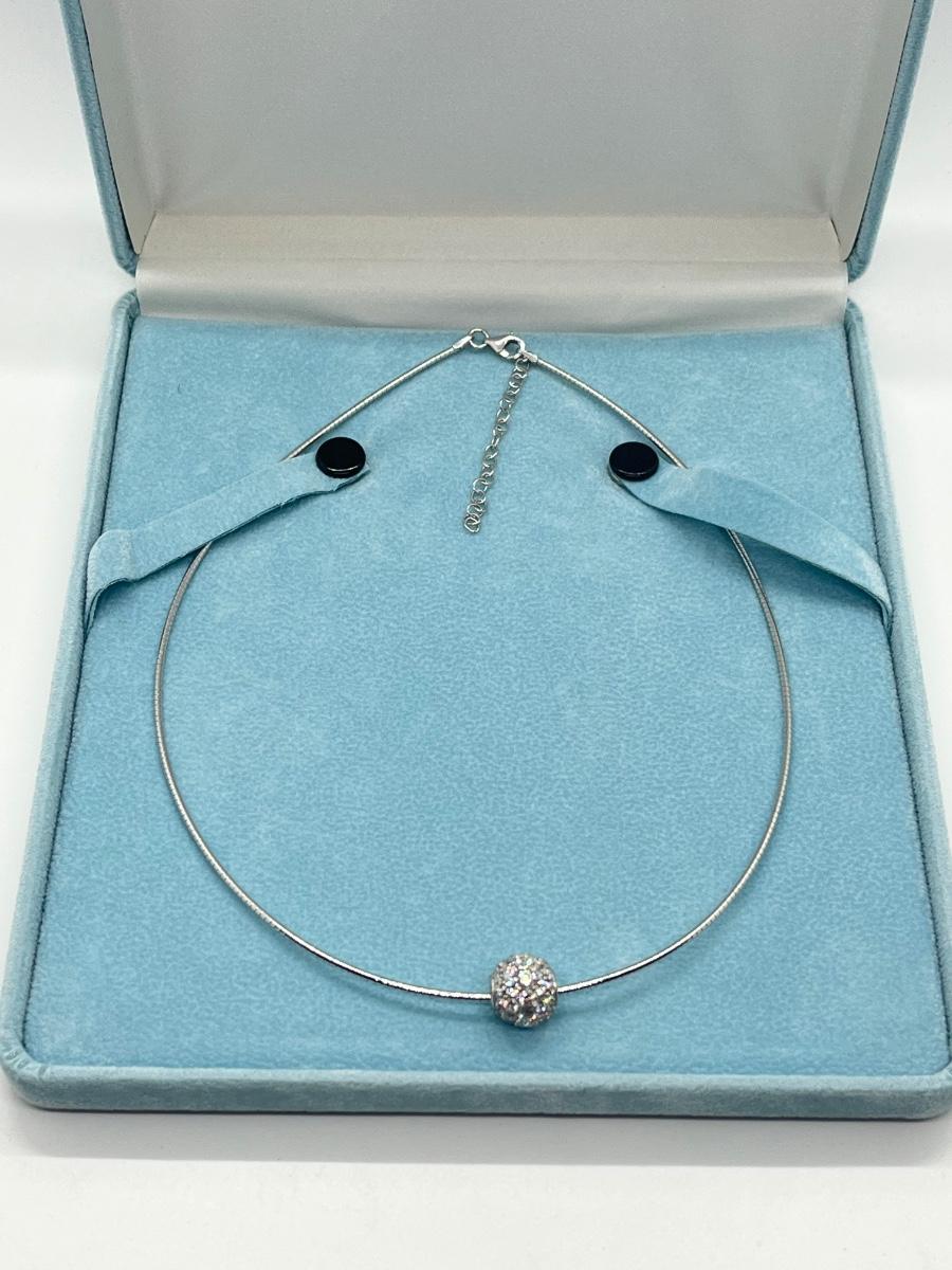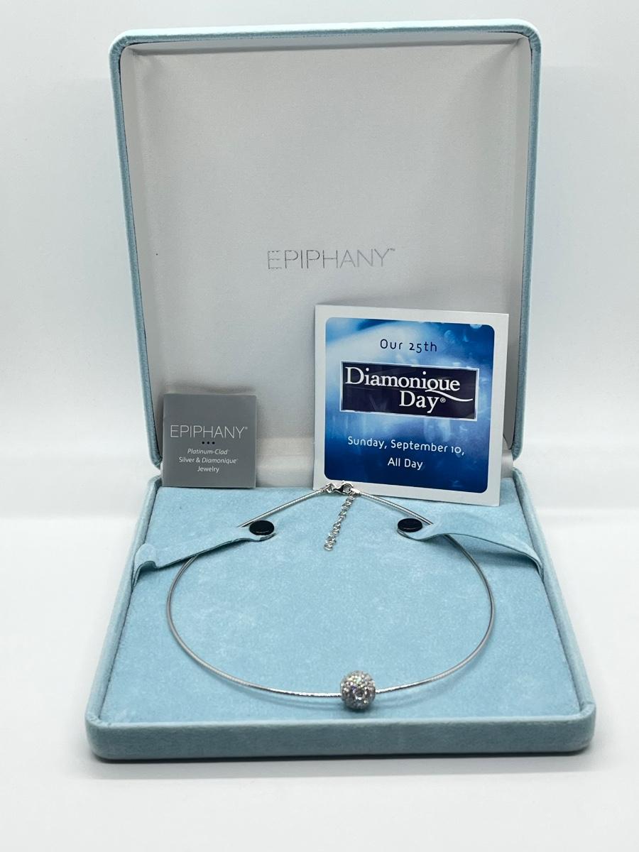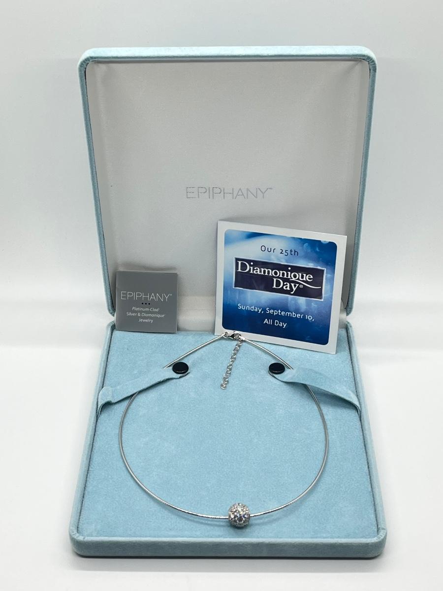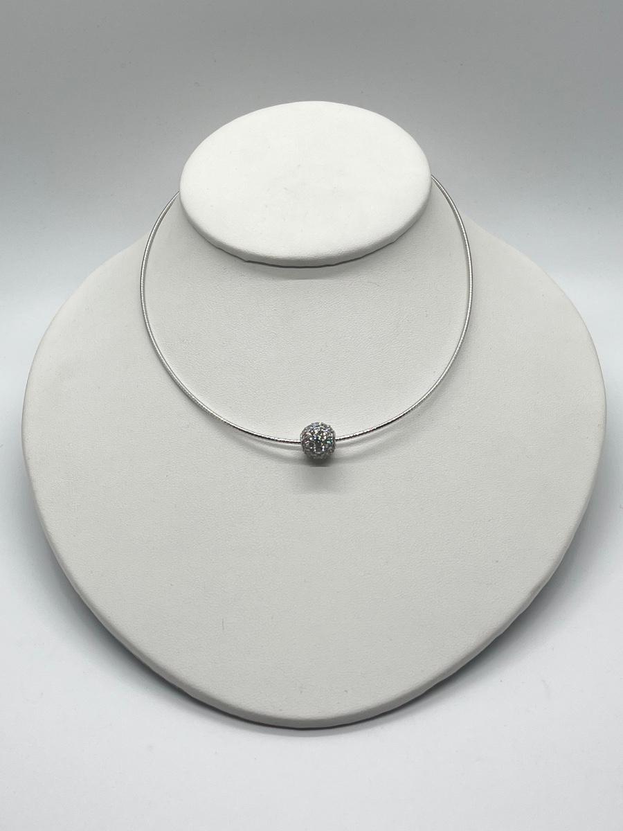 LOT 68: Epiphany Platinum Clad Diamonique Pave Bead Slide on Omega Necklace - 16: + 2" ext.