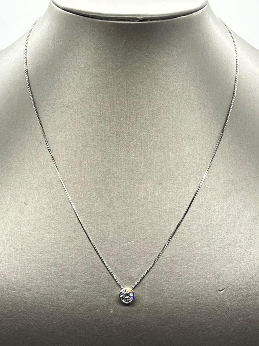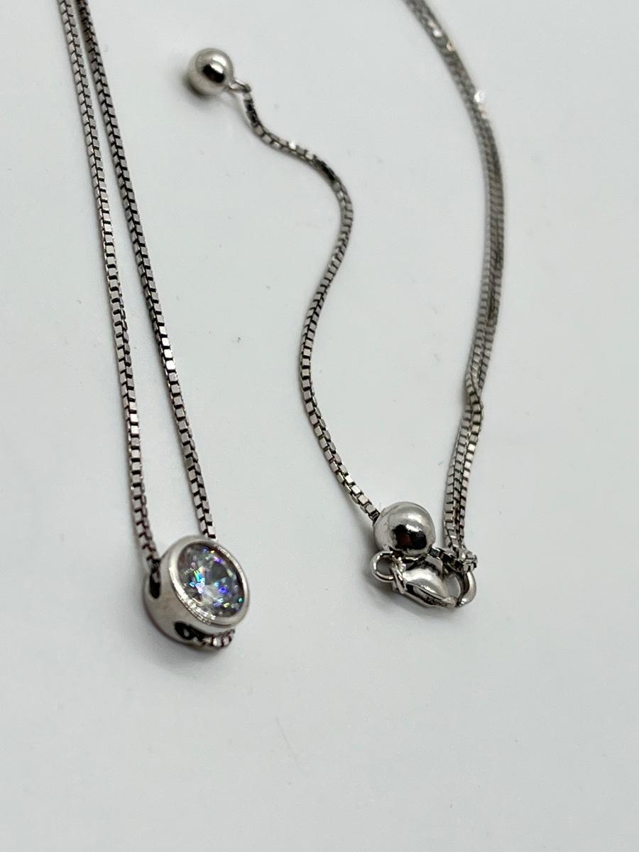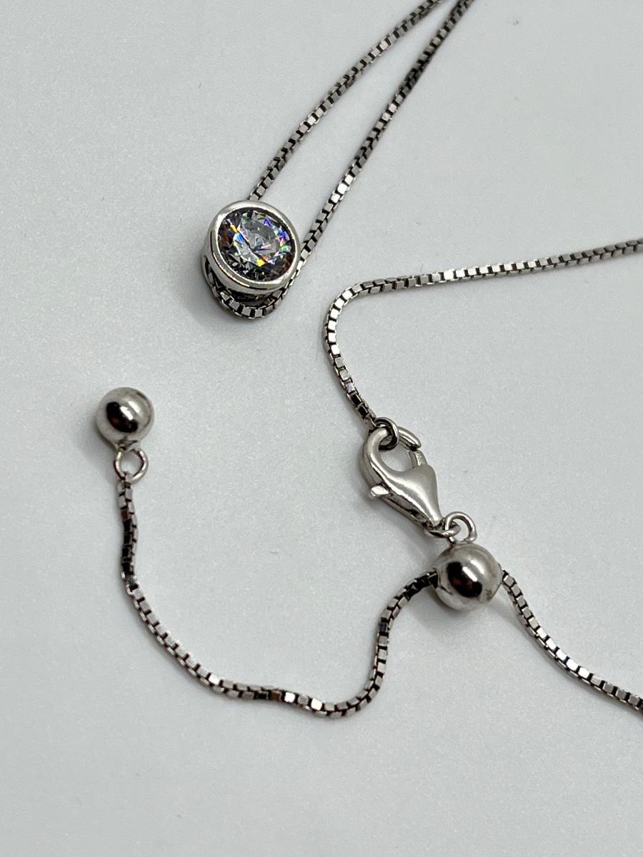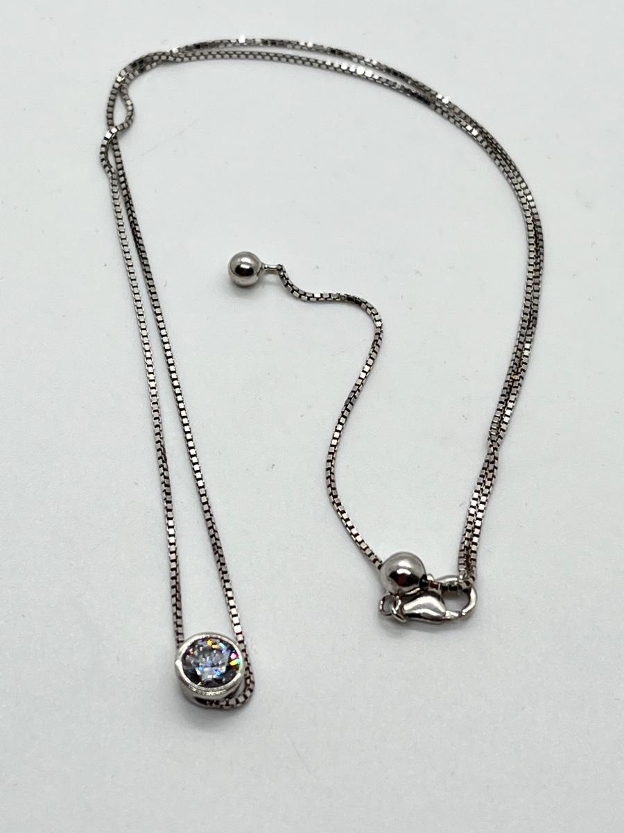 LOT 75: Sterling Silver & CZ Sliding Pendant on 20: Adjustable Silver Chain