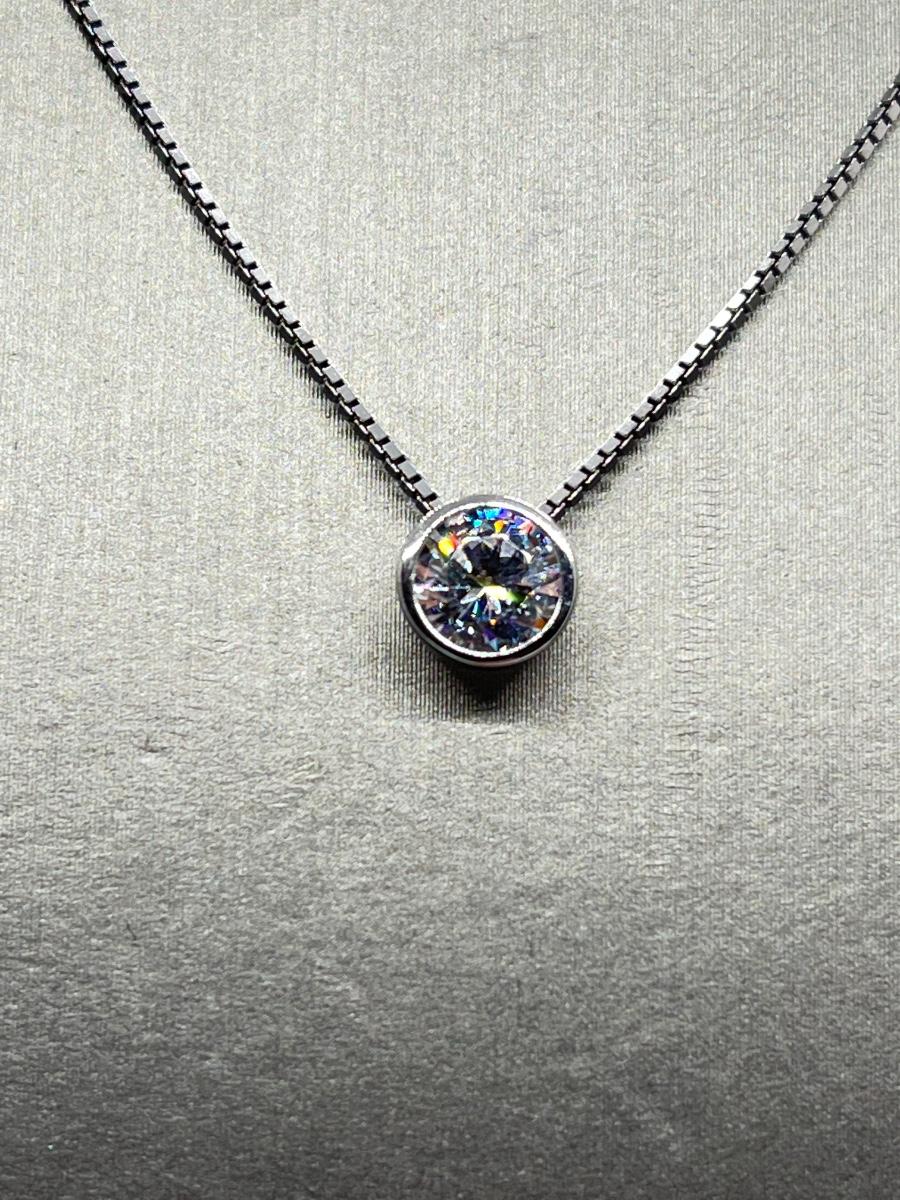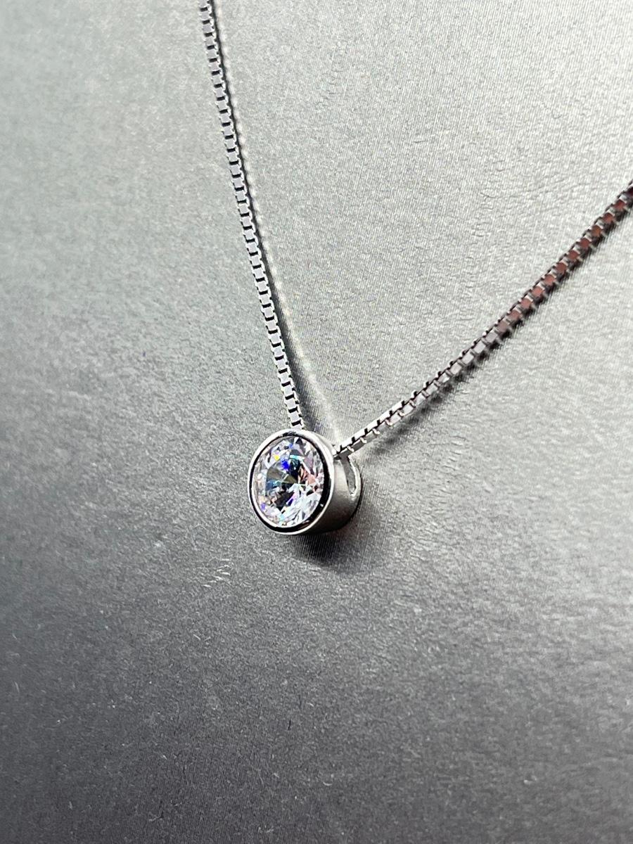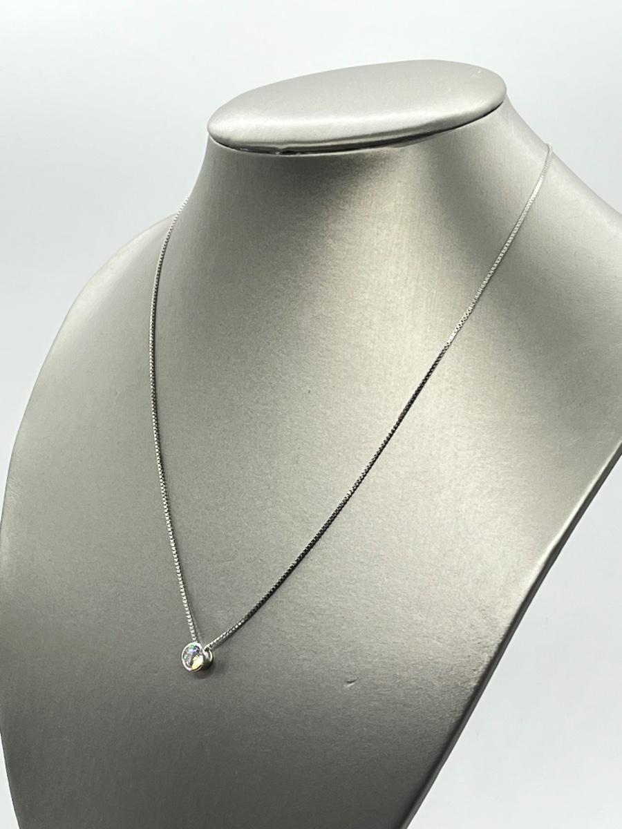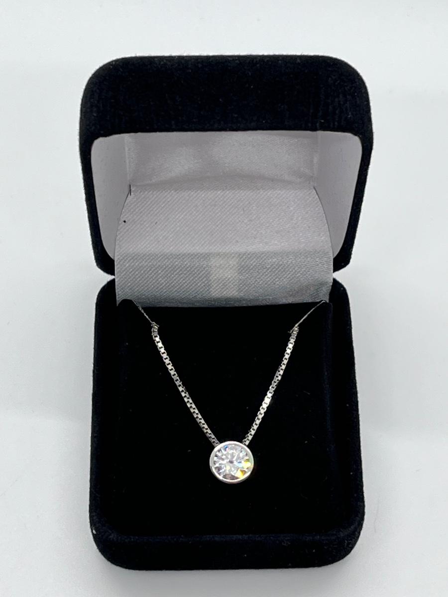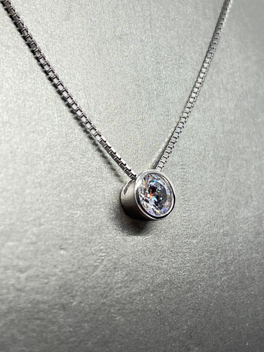 LOT 75: Sterling Silver & CZ Sliding Pendant on 20: Adjustable Silver Chain