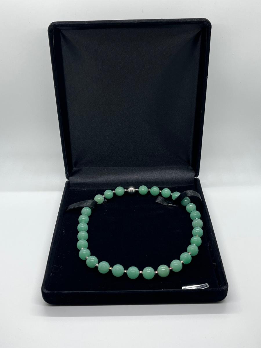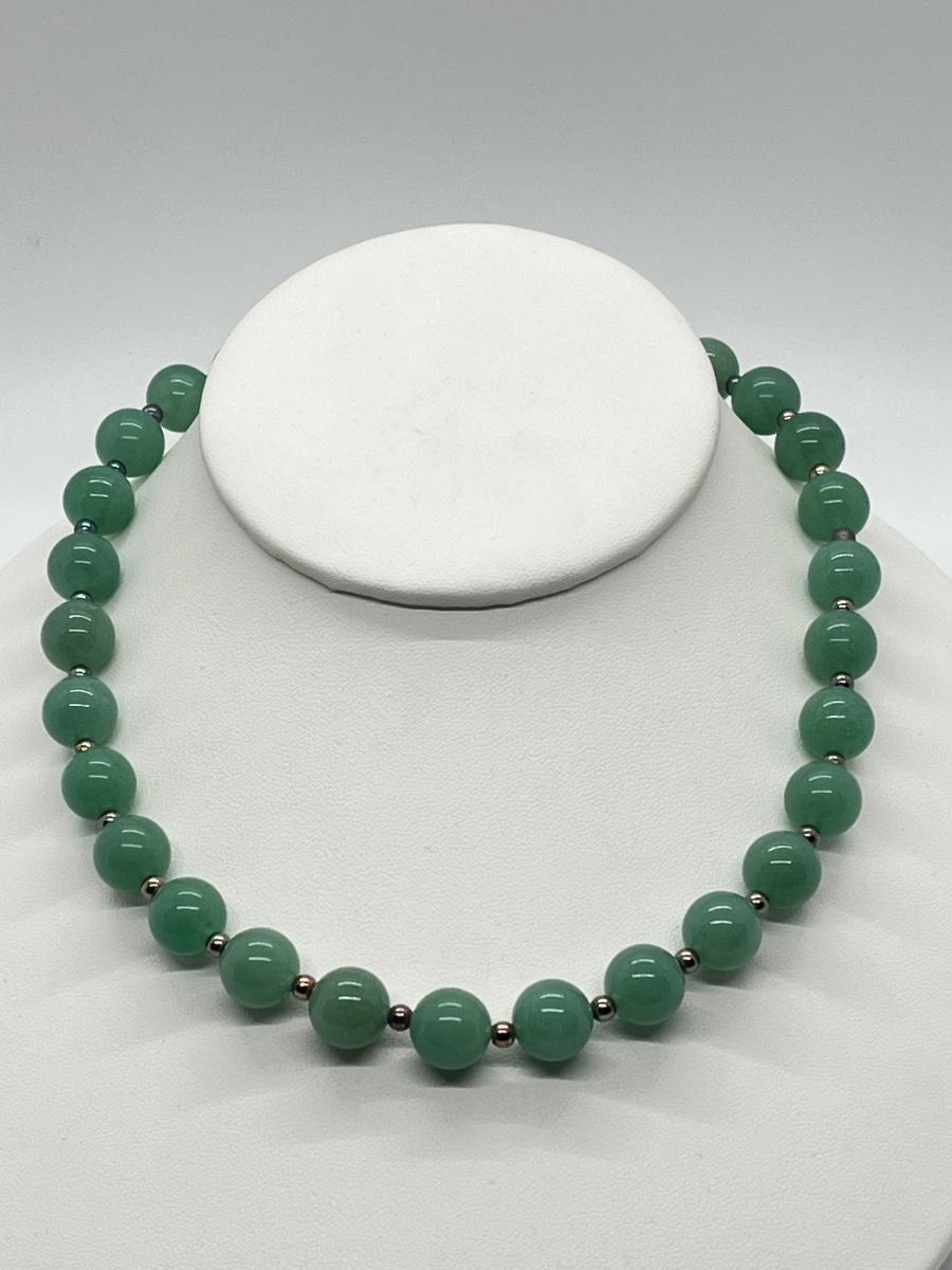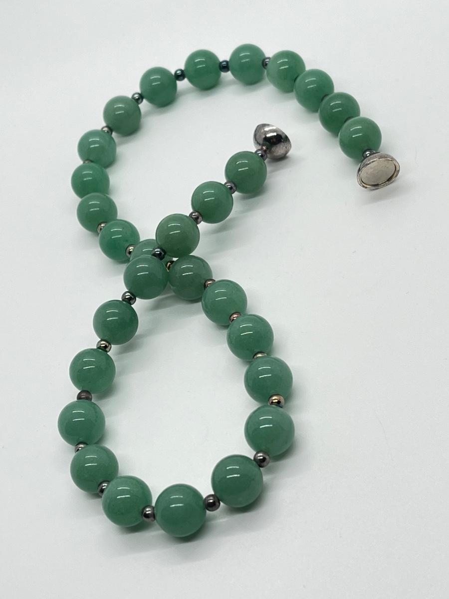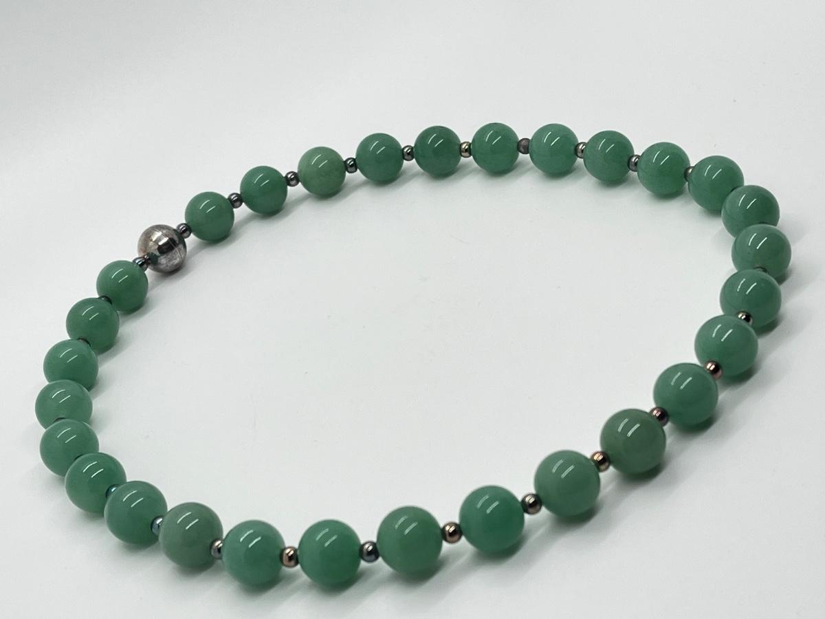 LOT 76: Sterling Silver & Aventurine Gemstone Bead 18" Necklace w/ Magnetic Clasp