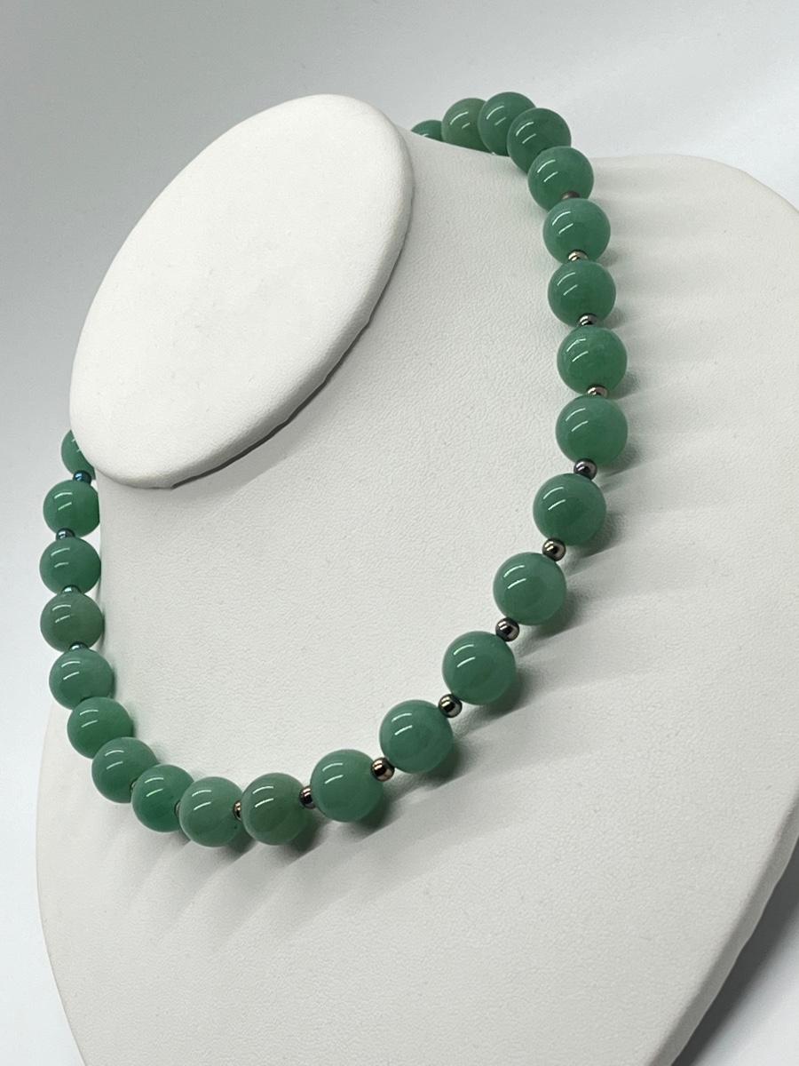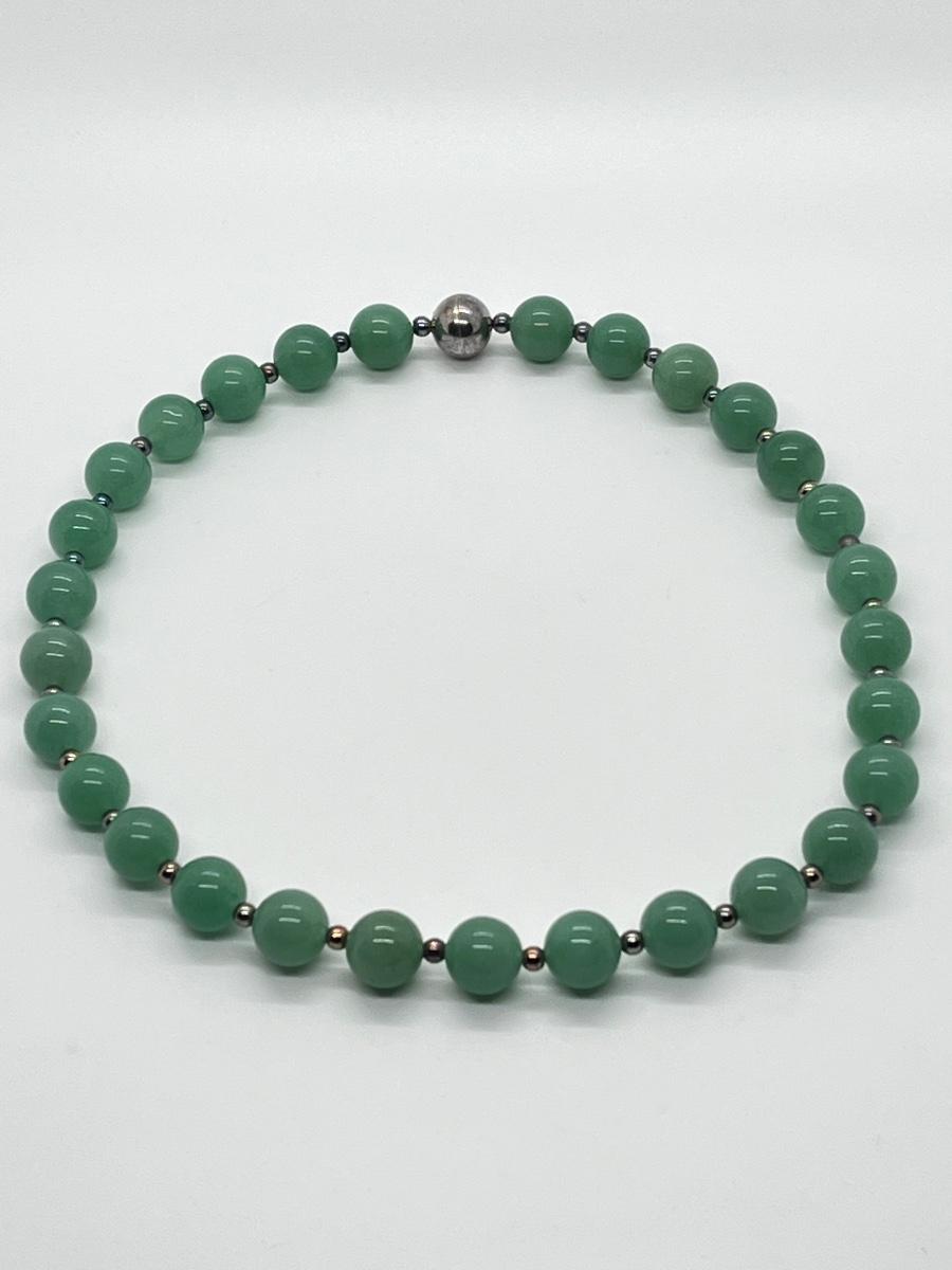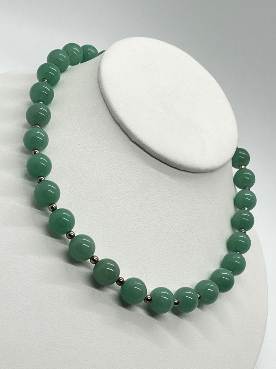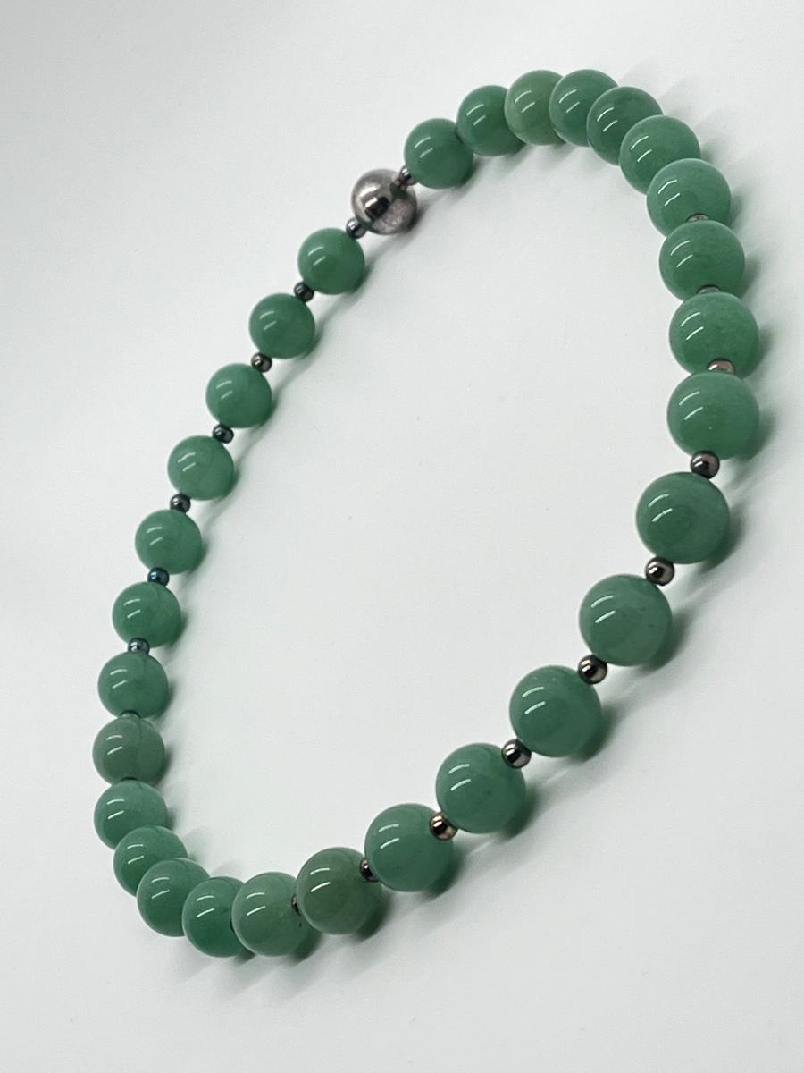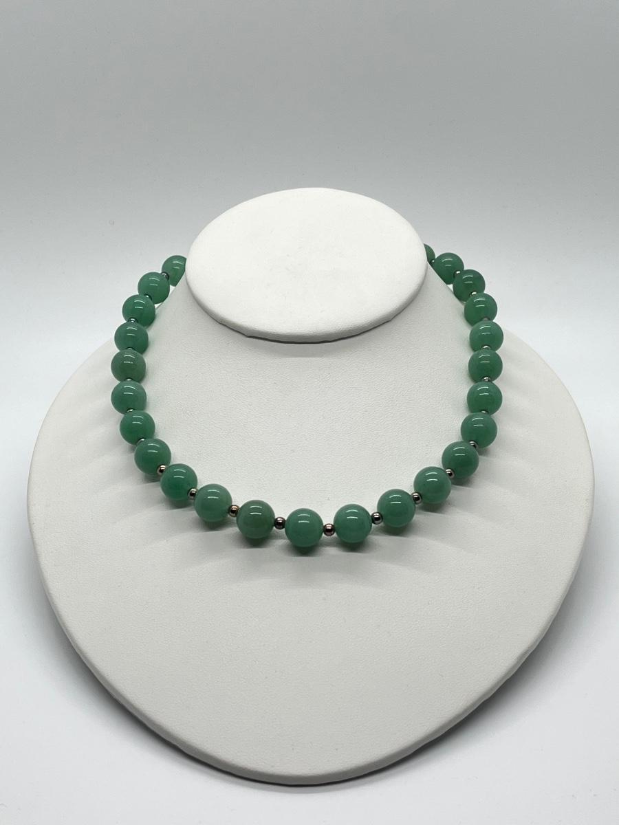 LOT 76: Sterling Silver & Aventurine Gemstone Bead 18" Necklace w/ Magnetic Clasp