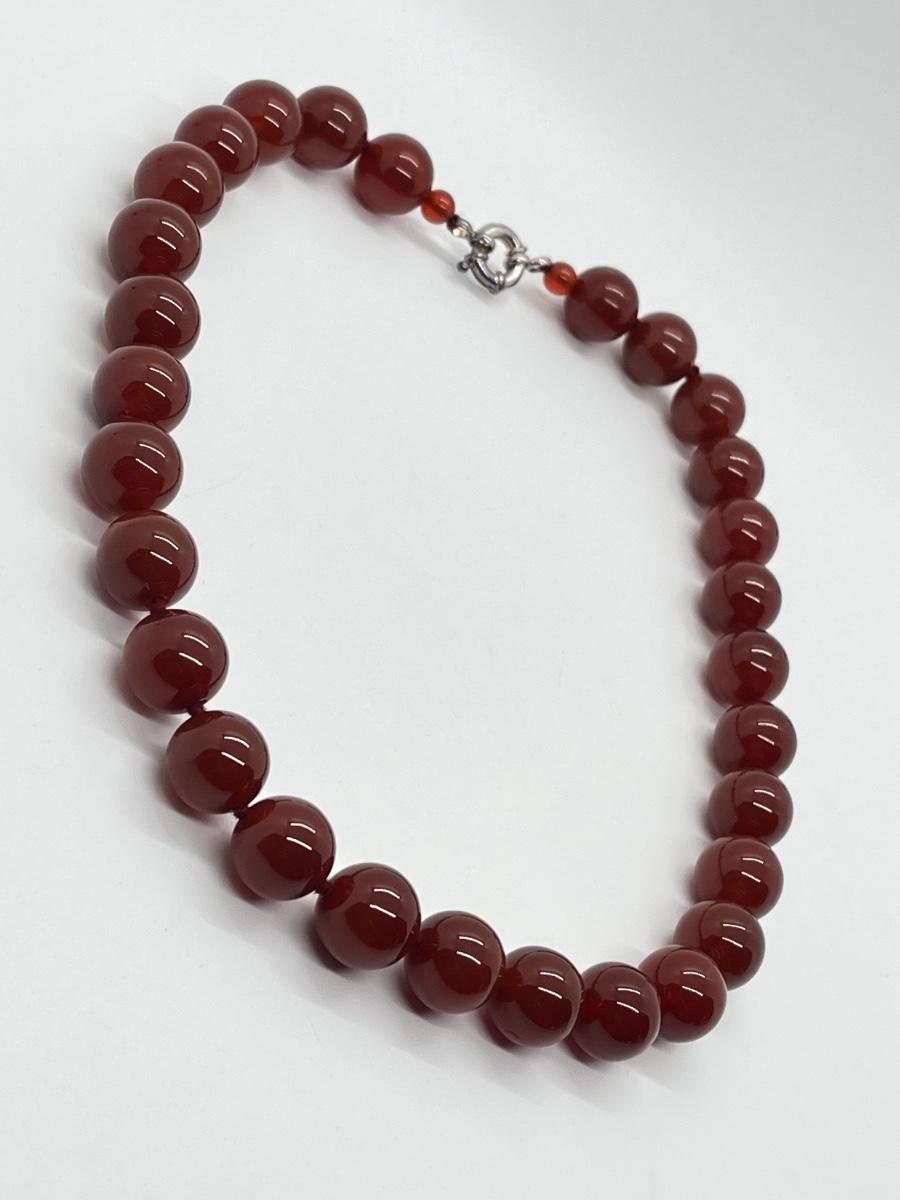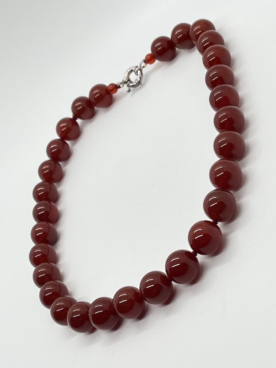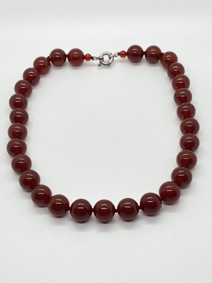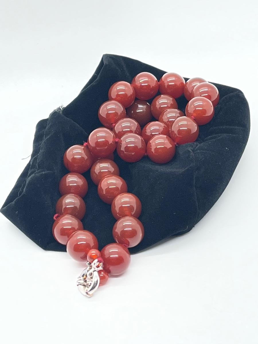 LOT 77: 14mm Carnelian Bead and Sterling Silver 18" Necklace