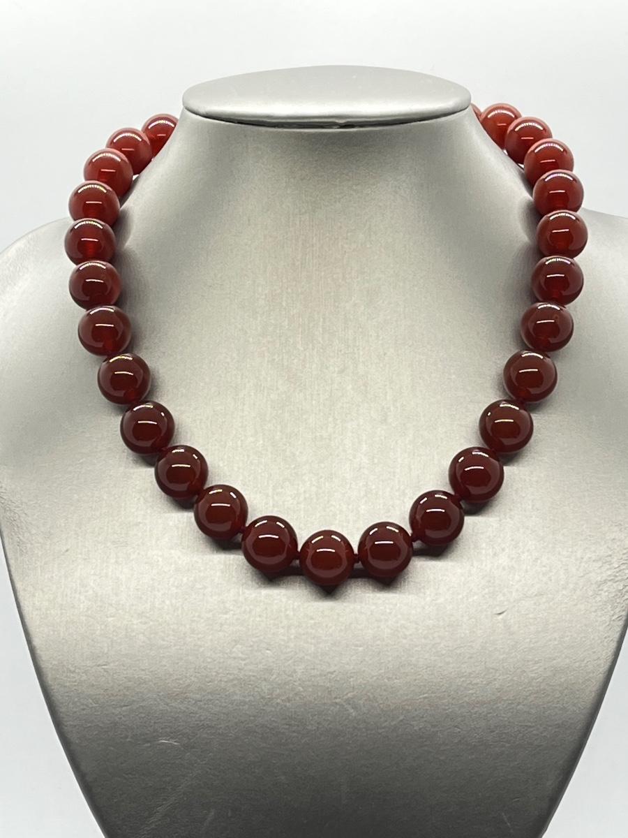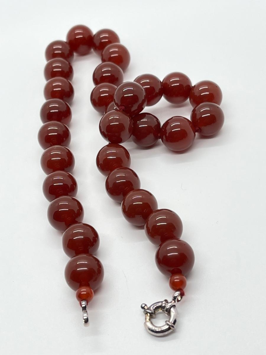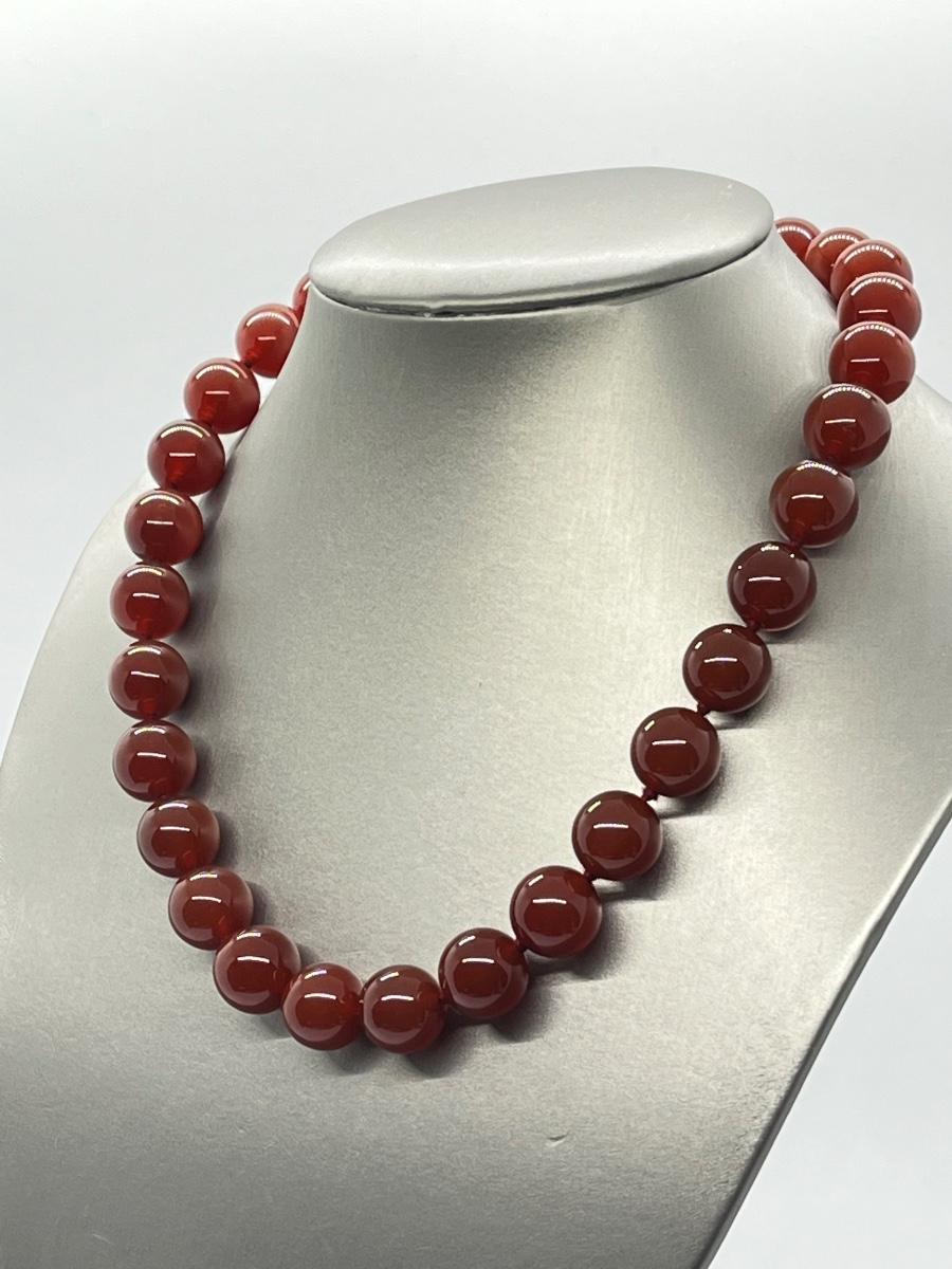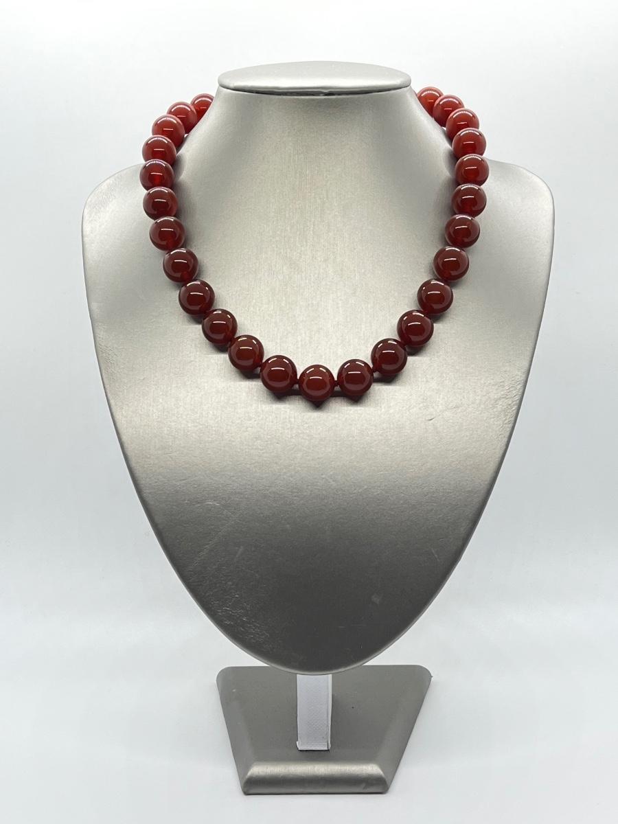 LOT 77: 14mm Carnelian Bead and Sterling Silver 18" Necklace