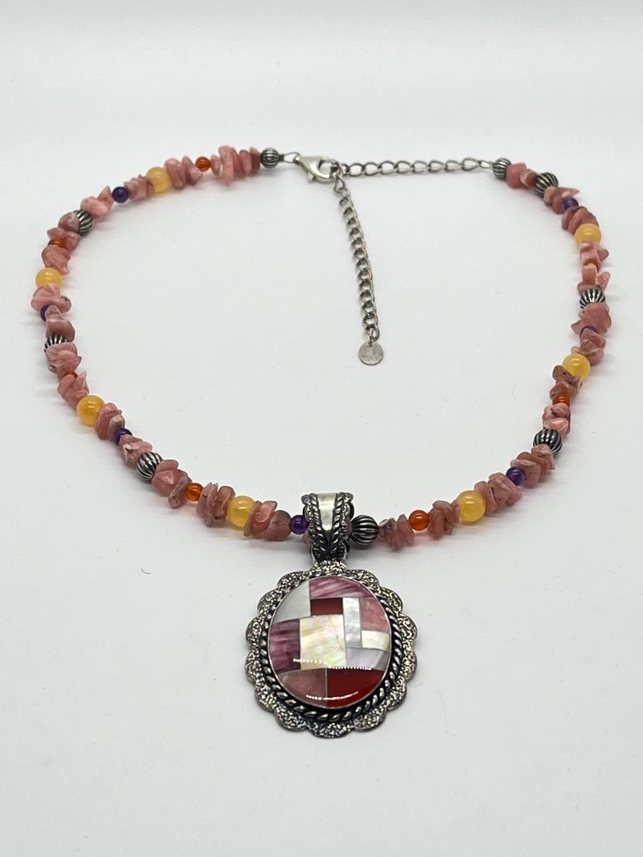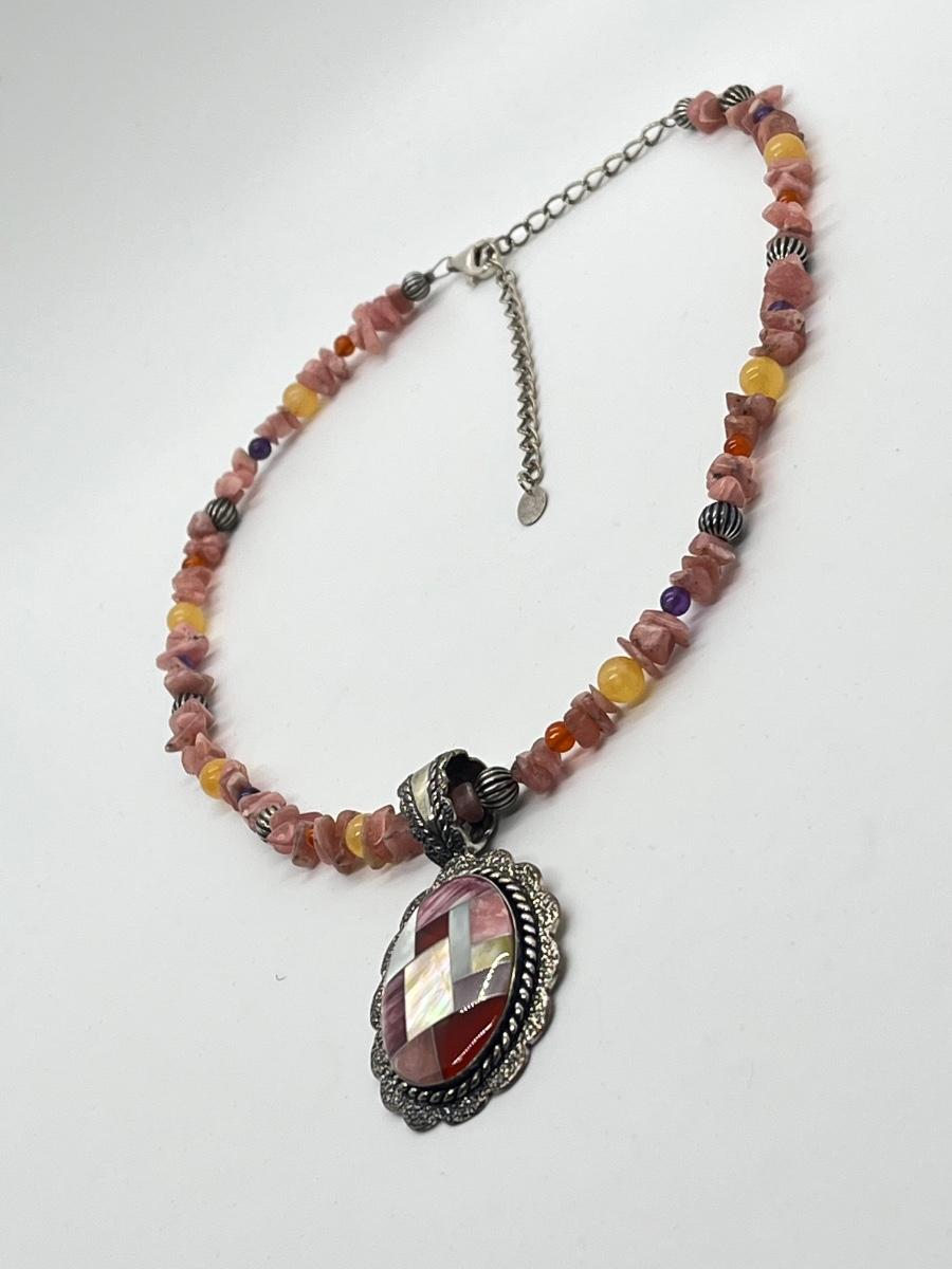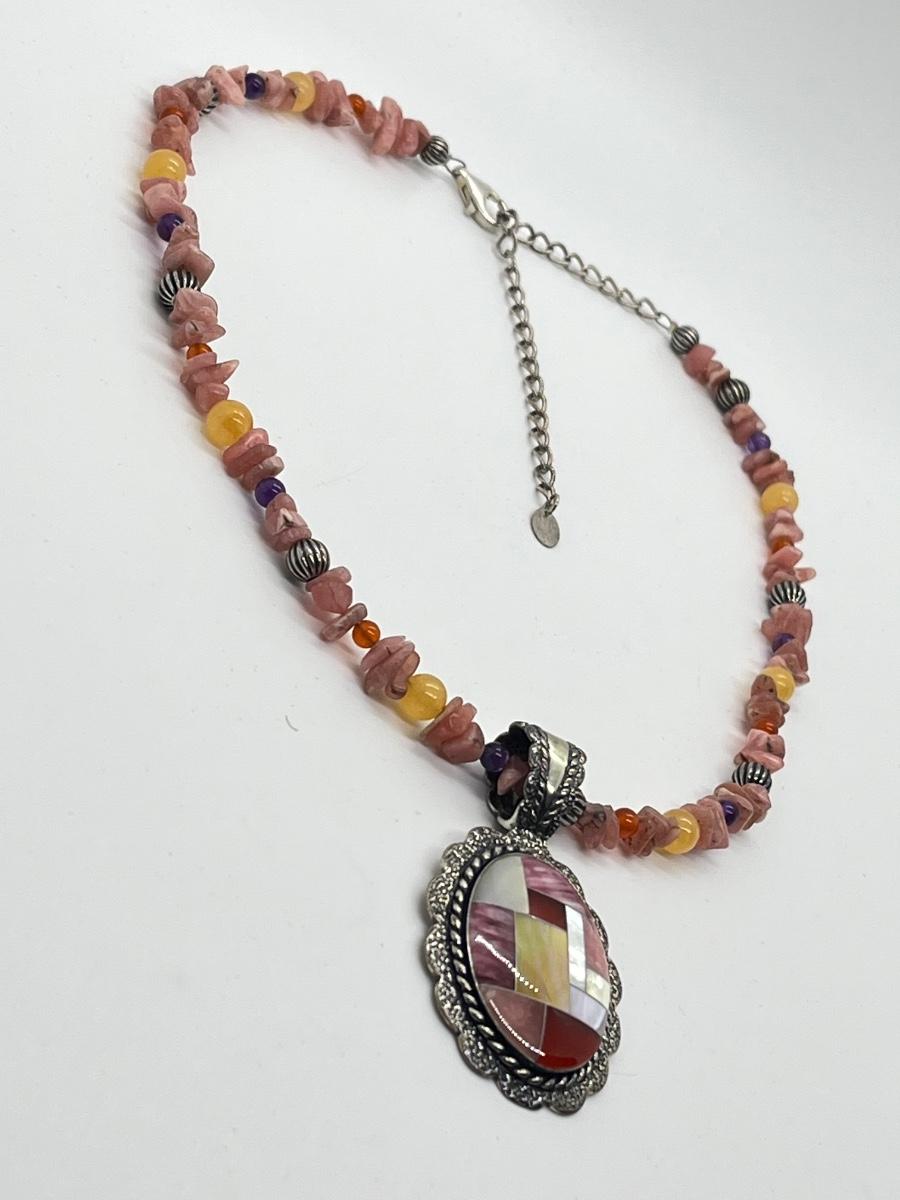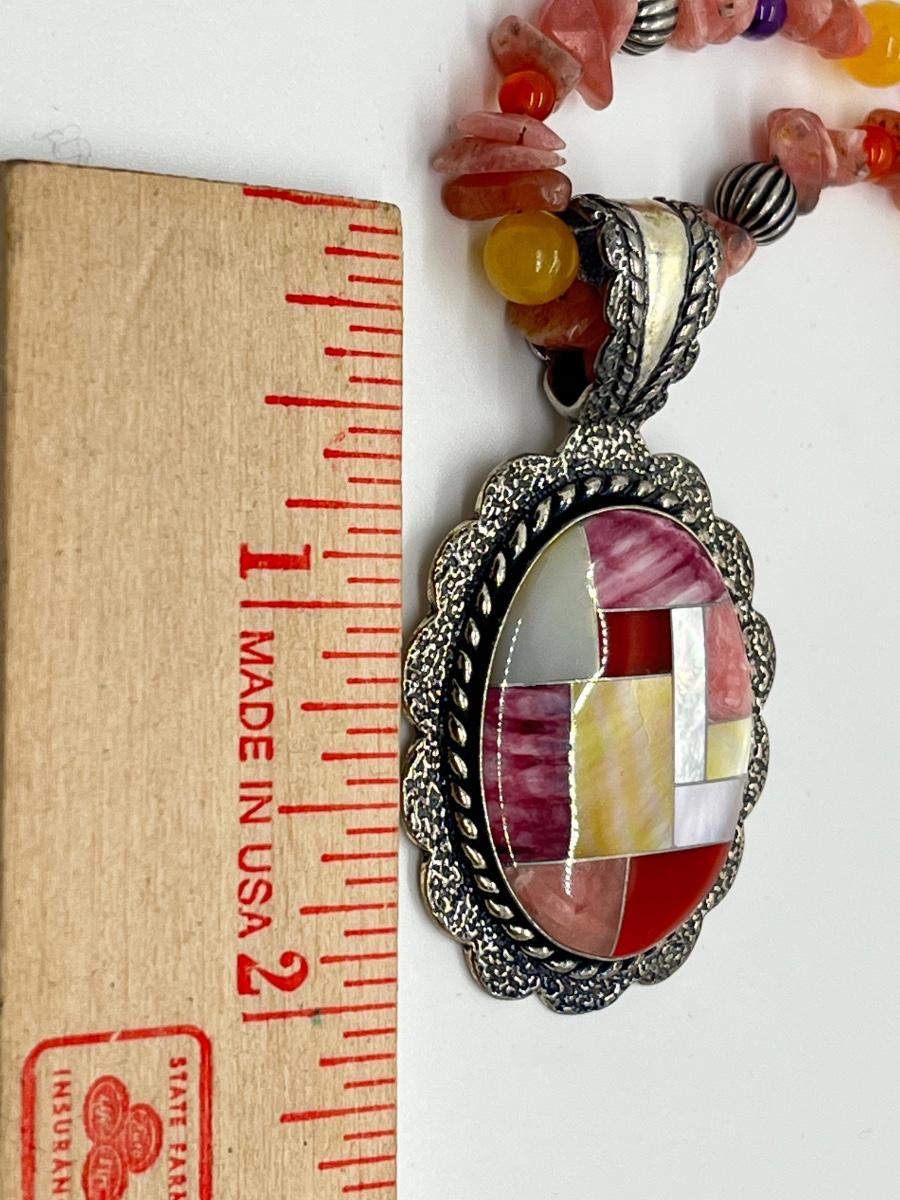 LOT 78: Southwestern Citrus Berry Inlay Pendant on 16" Beaded Necklace with 4" Ext.
