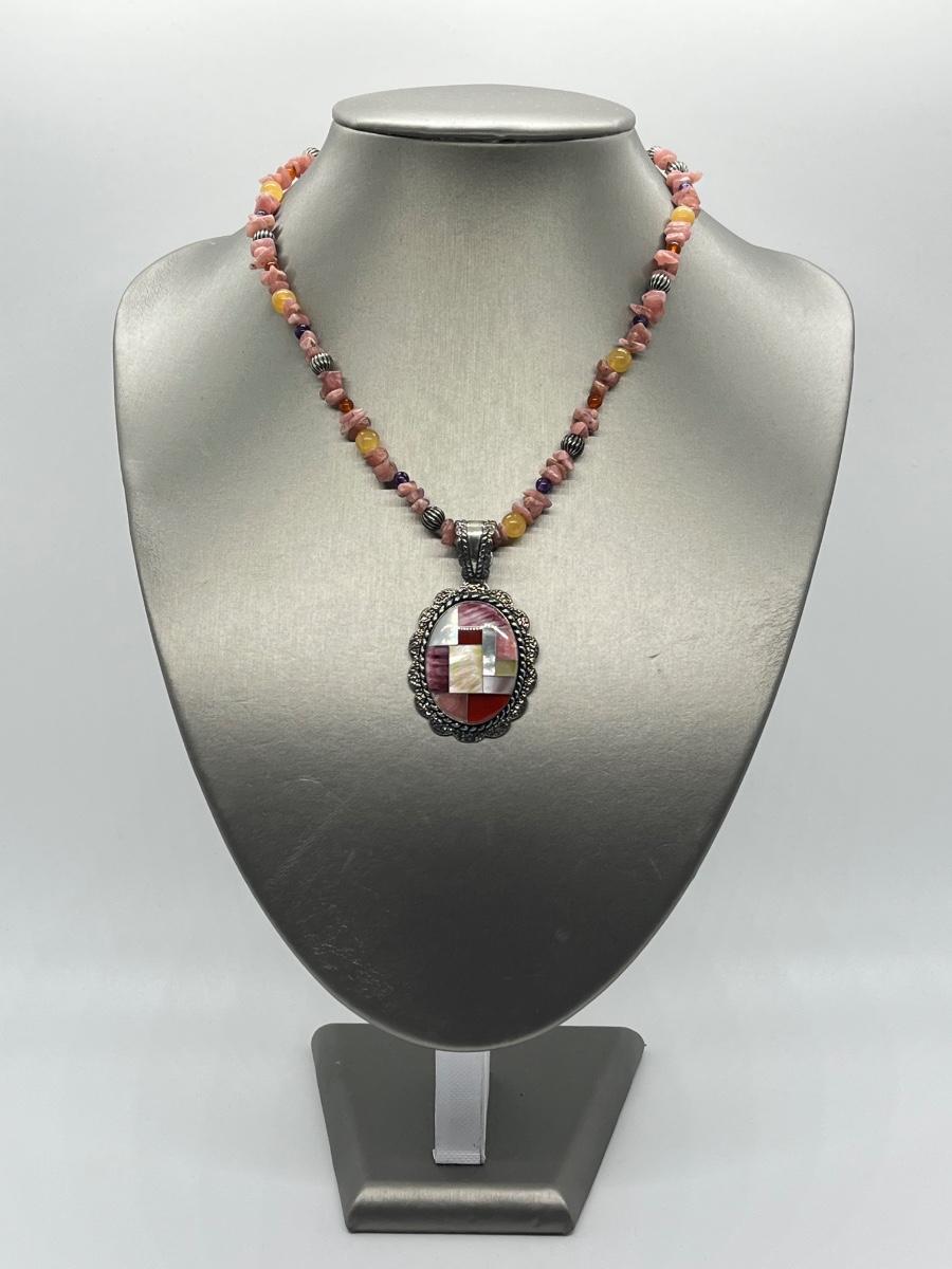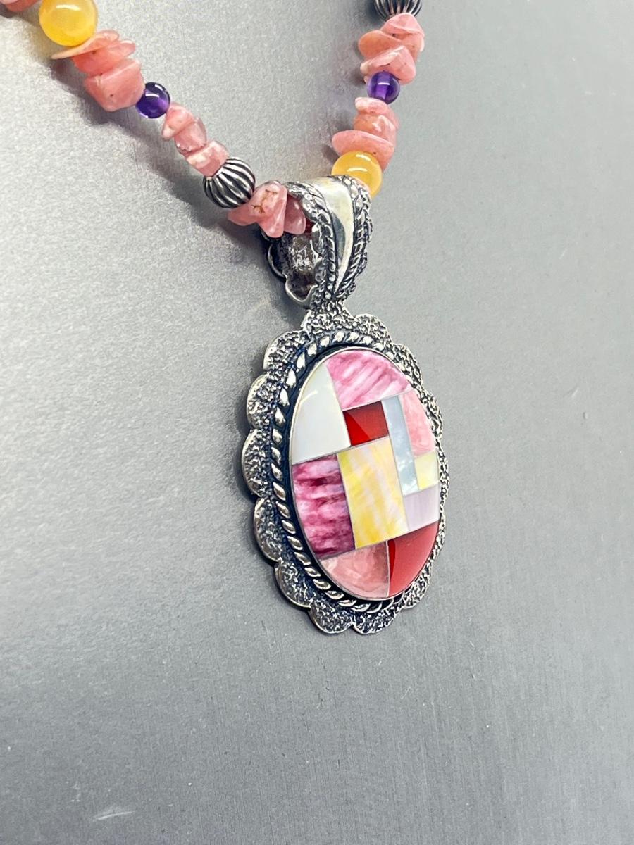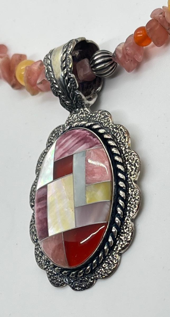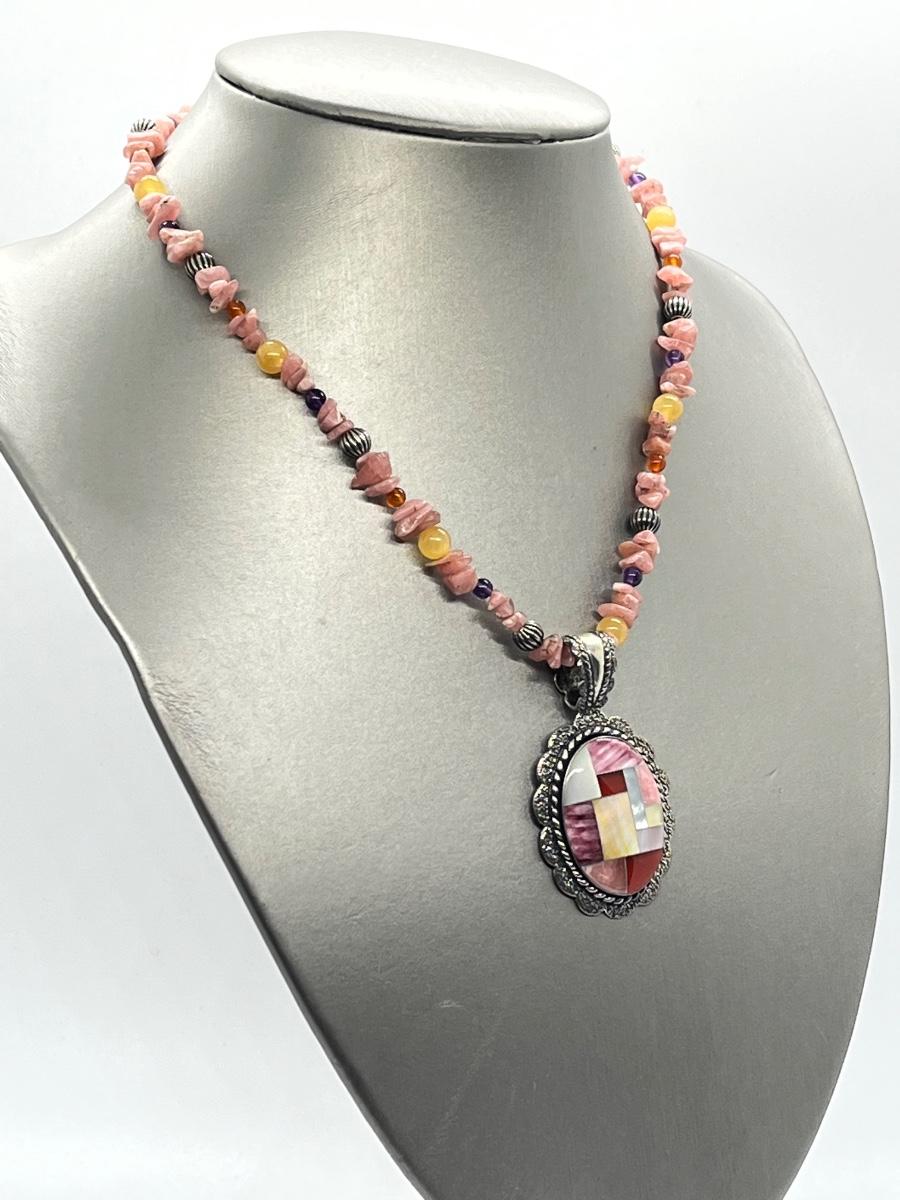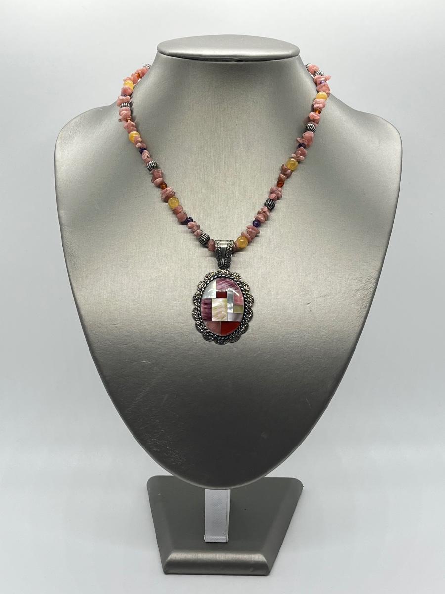 LOT 78: Southwestern Citrus Berry Inlay Pendant on 16" Beaded Necklace with 4" Ext.