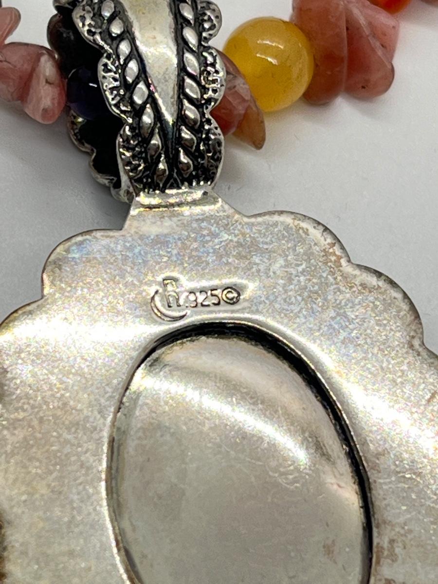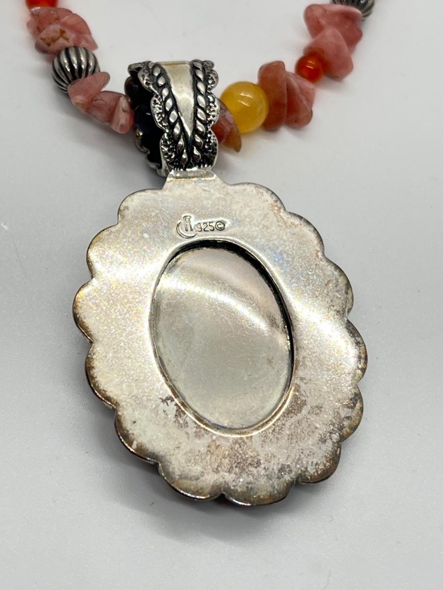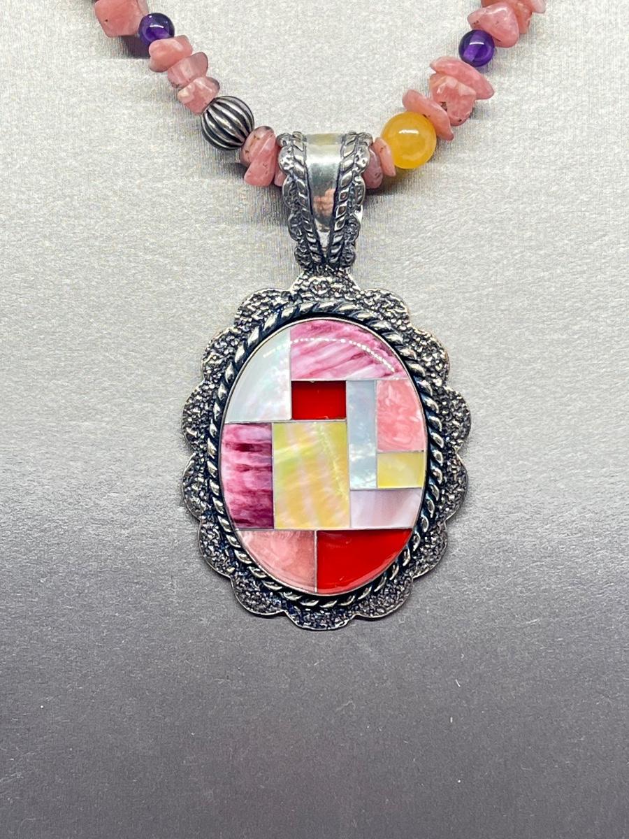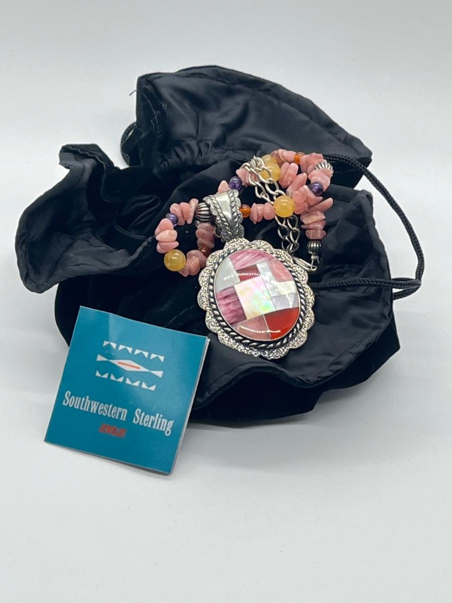 LOT 78: Southwestern Citrus Berry Inlay Pendant on 16" Beaded Necklace with 4" Ext.