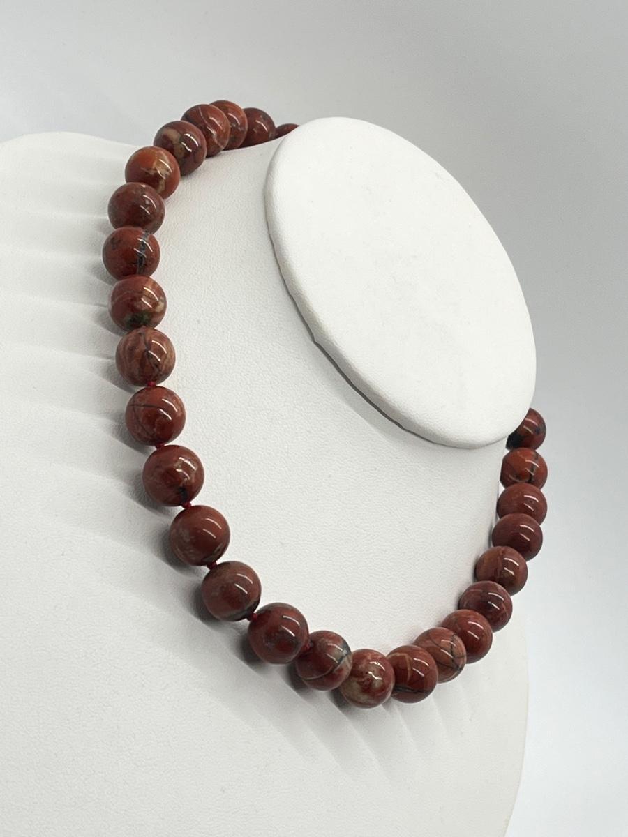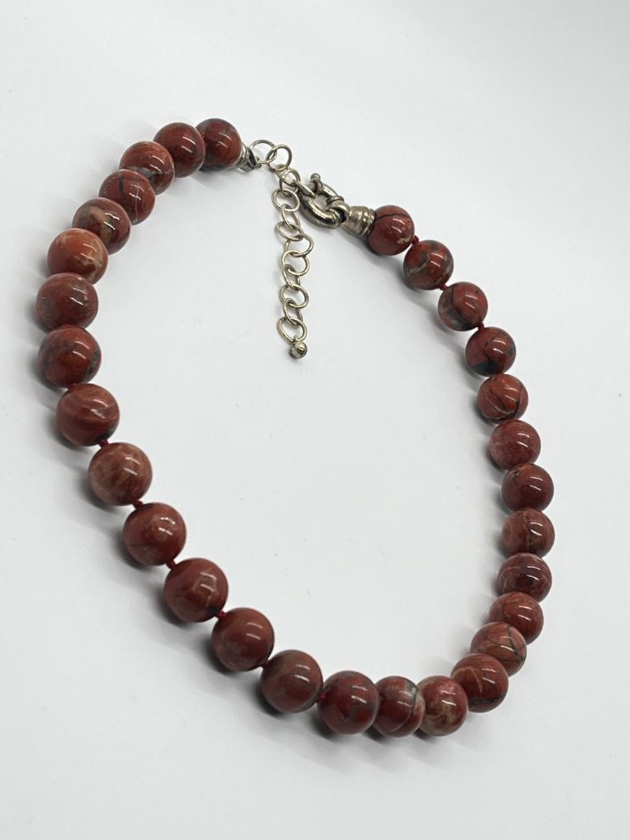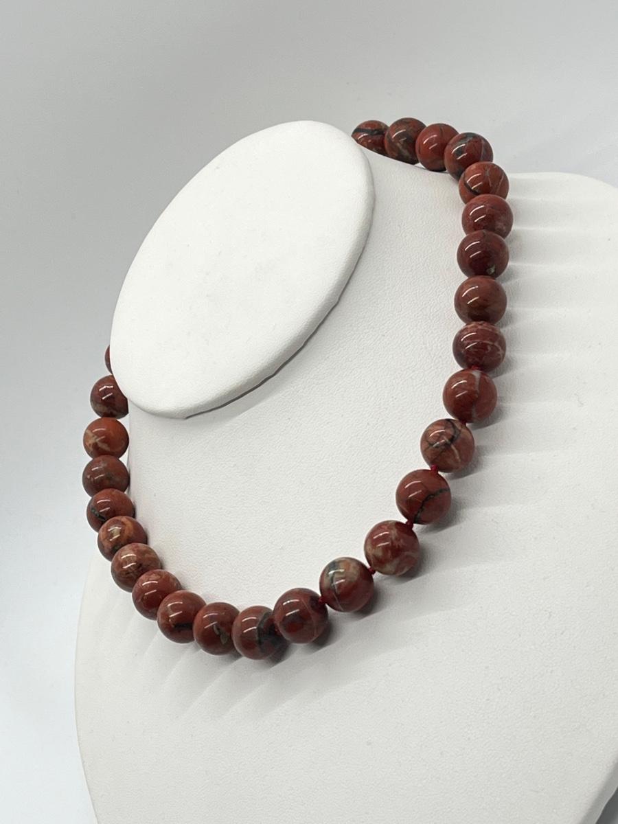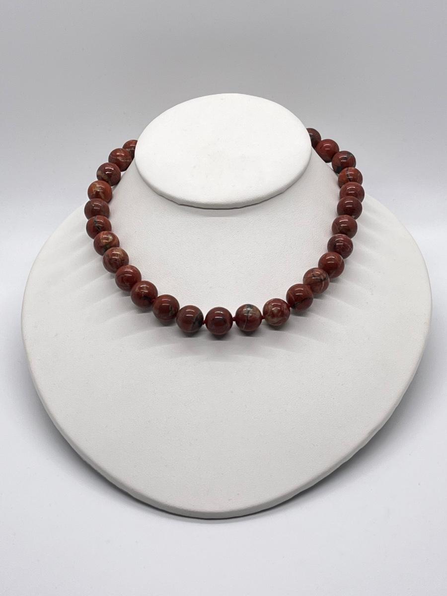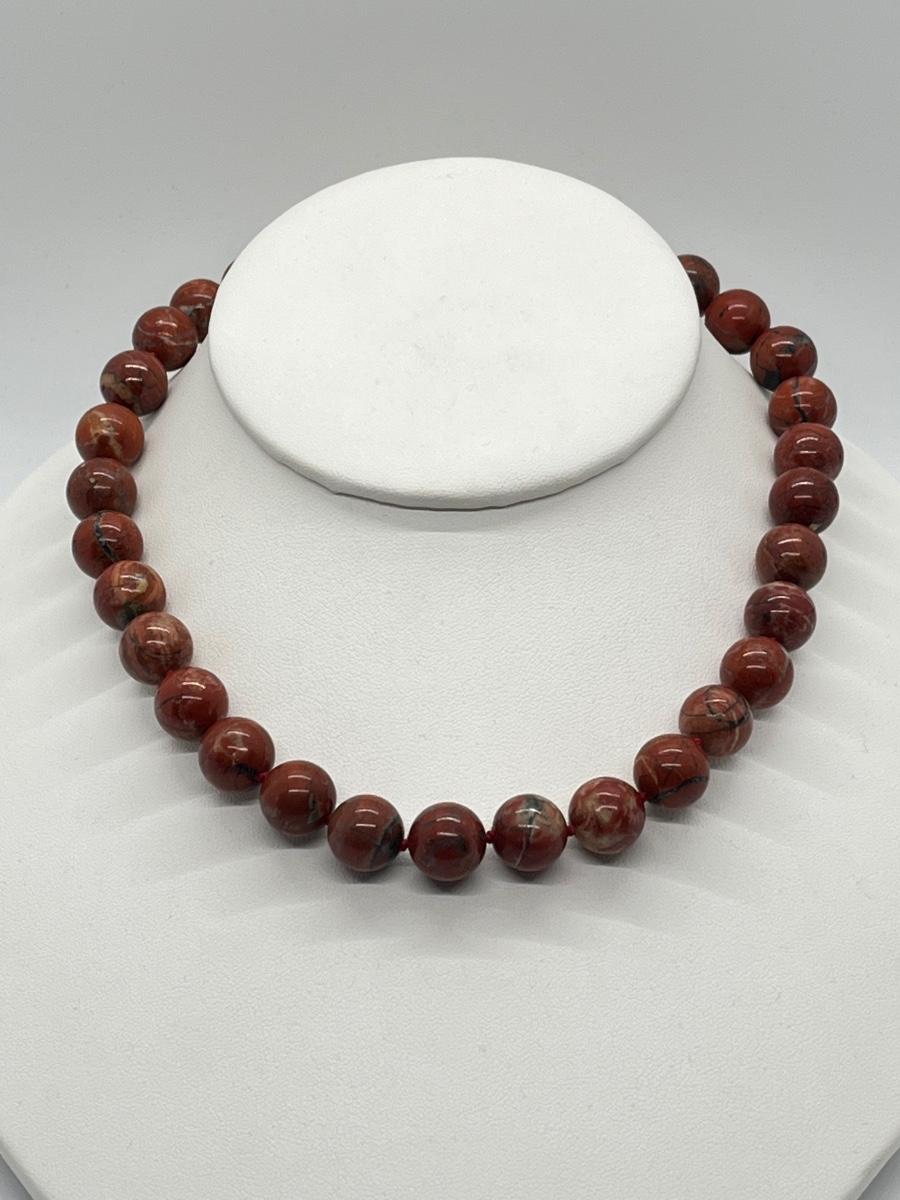LOT 82: Red Jasper 12mm Gemstone Bead 16" Necklace with3" ext & Sterling Clasp