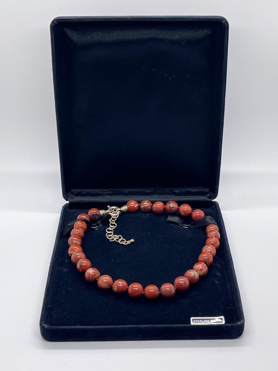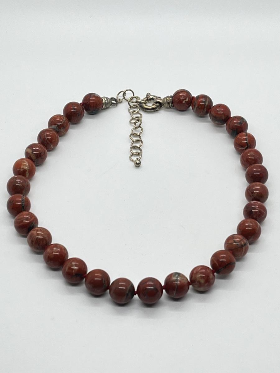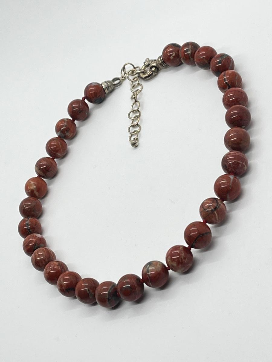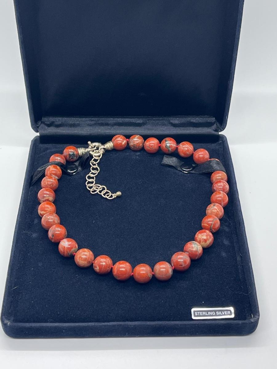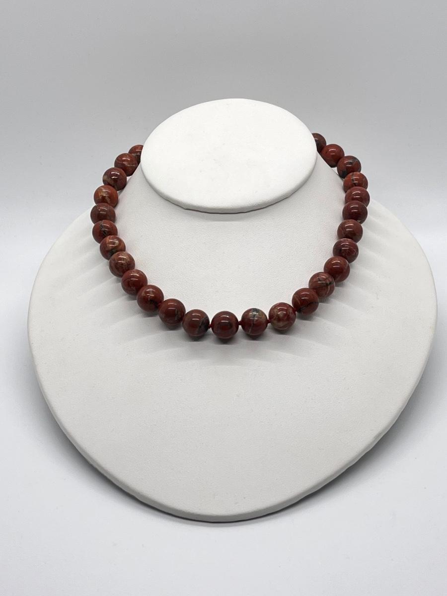 LOT 82: Red Jasper 12mm Gemstone Bead 16" Necklace with3" ext & Sterling Clasp