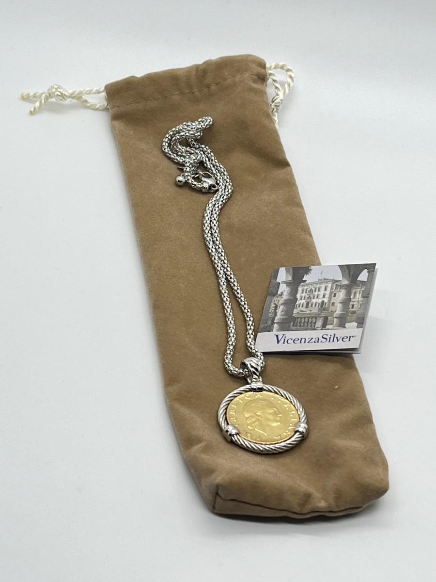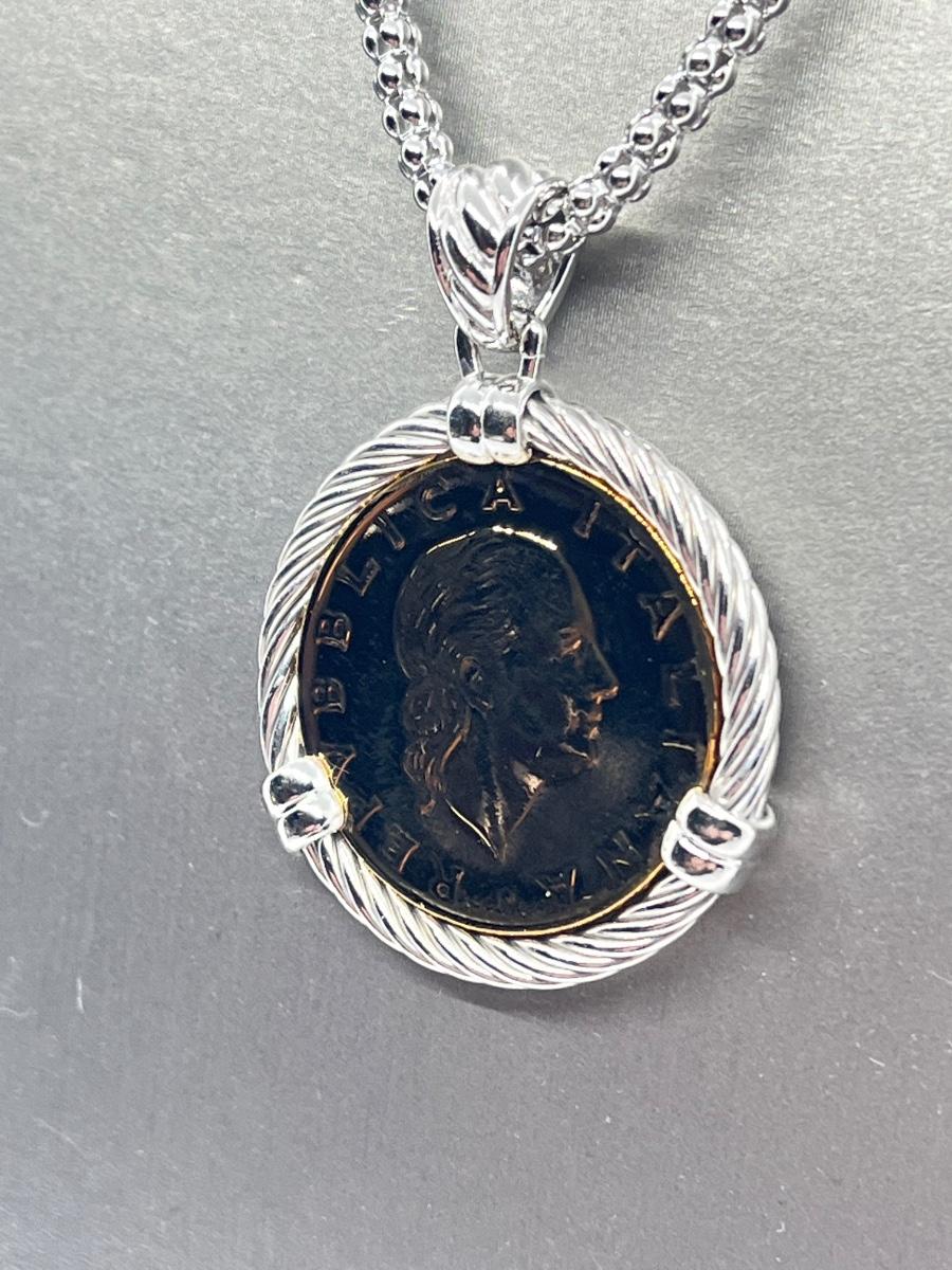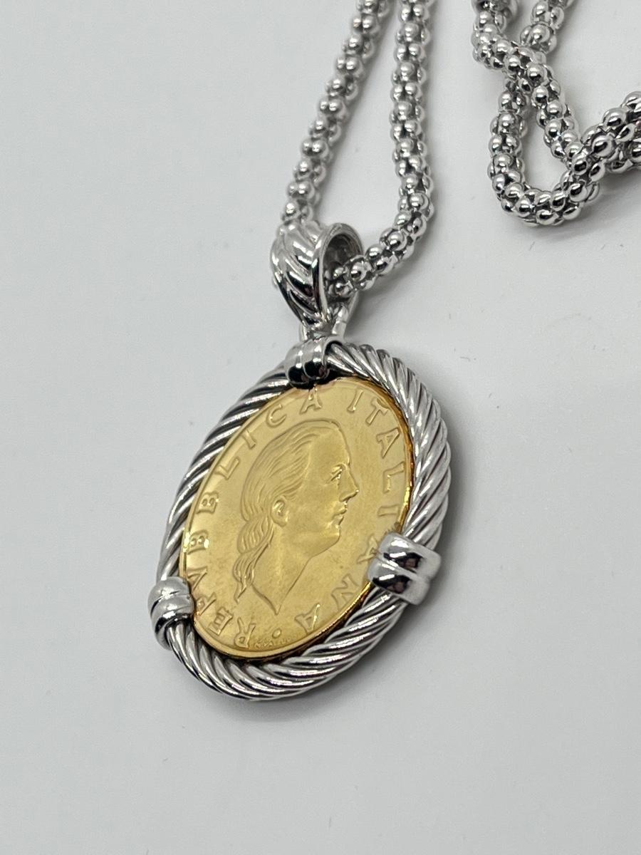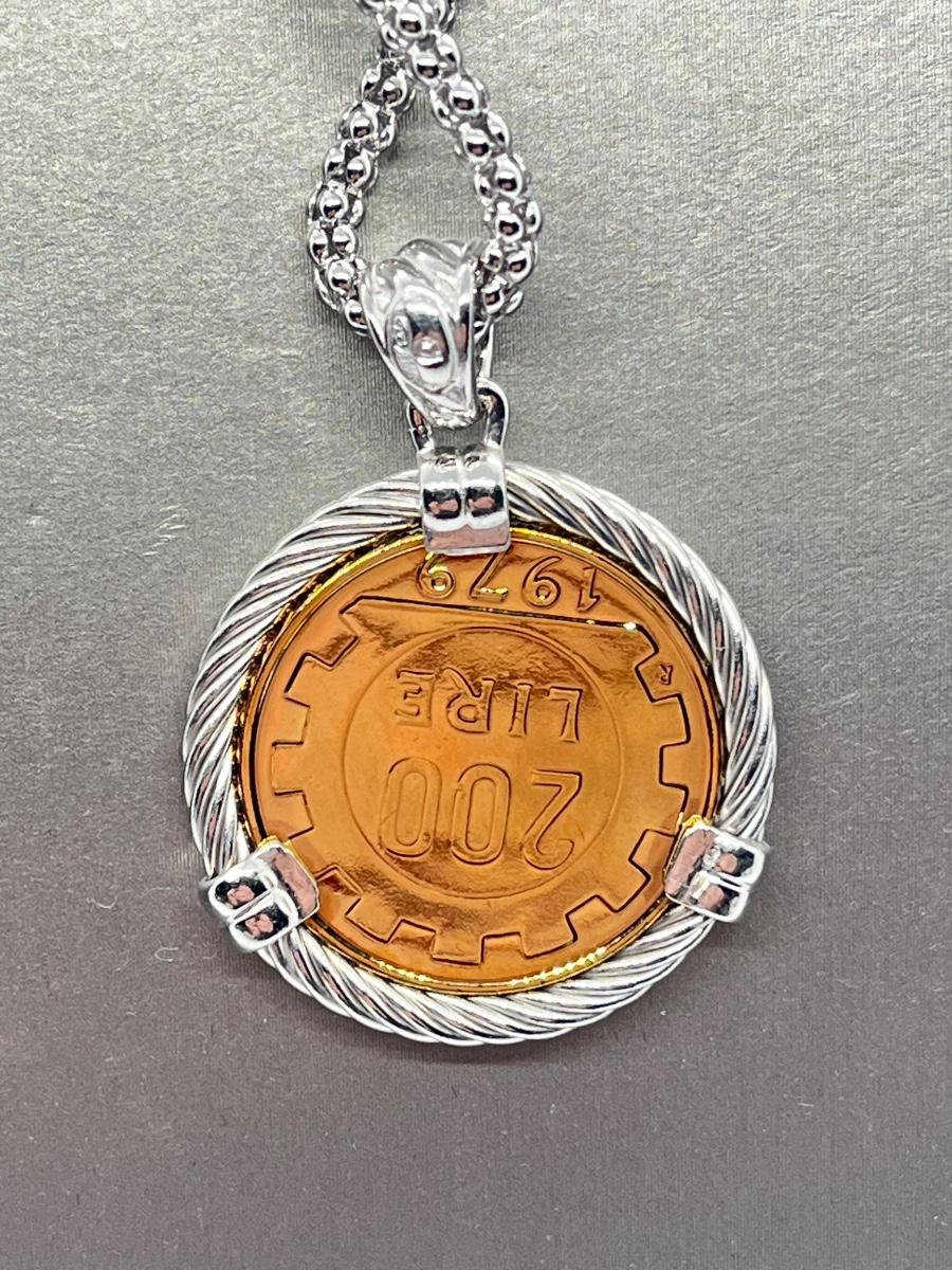 LOT 85: Vicenza Sterling Silver 200 Lira Coin Two-Tone Pendant on 18" Chain