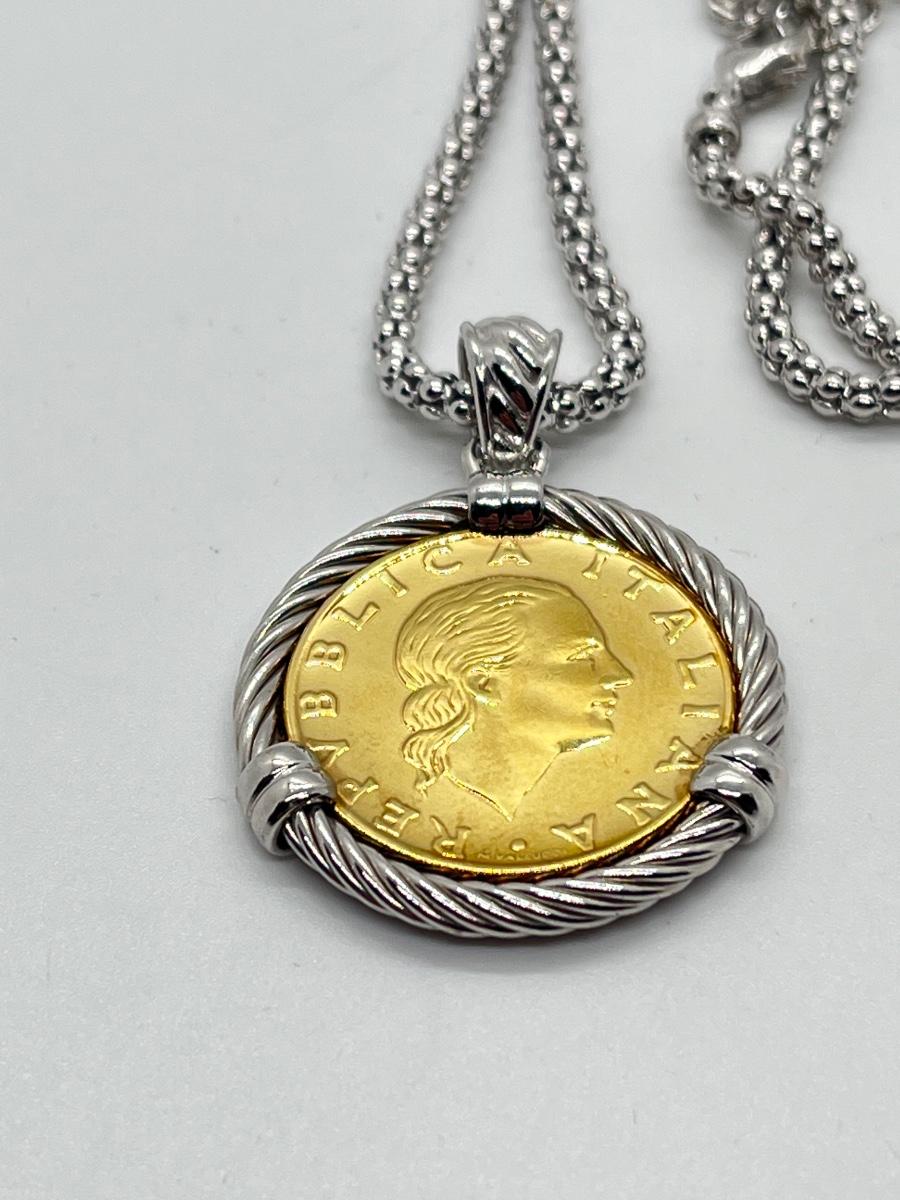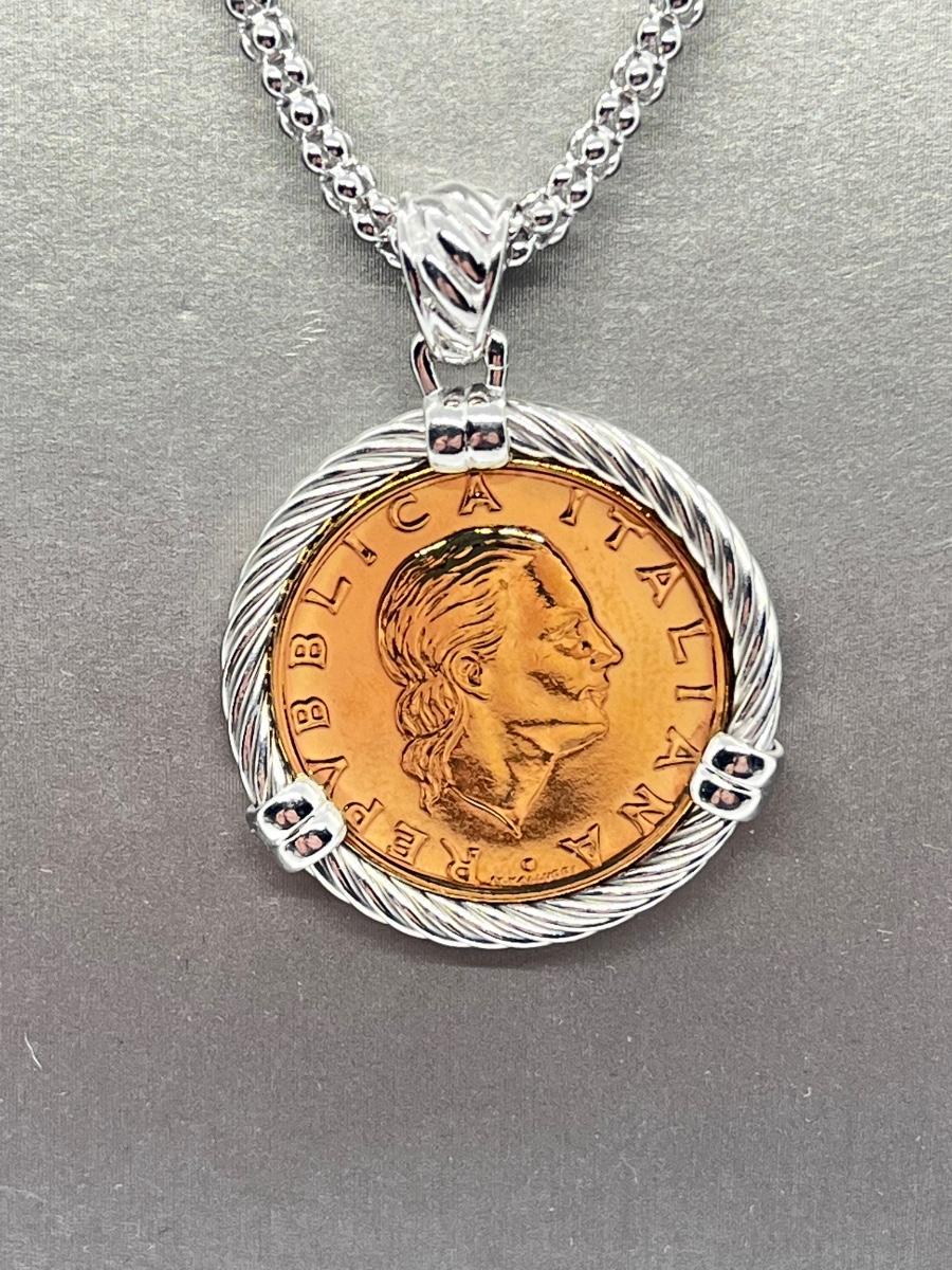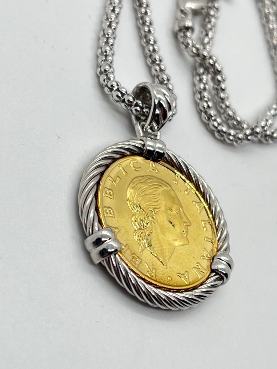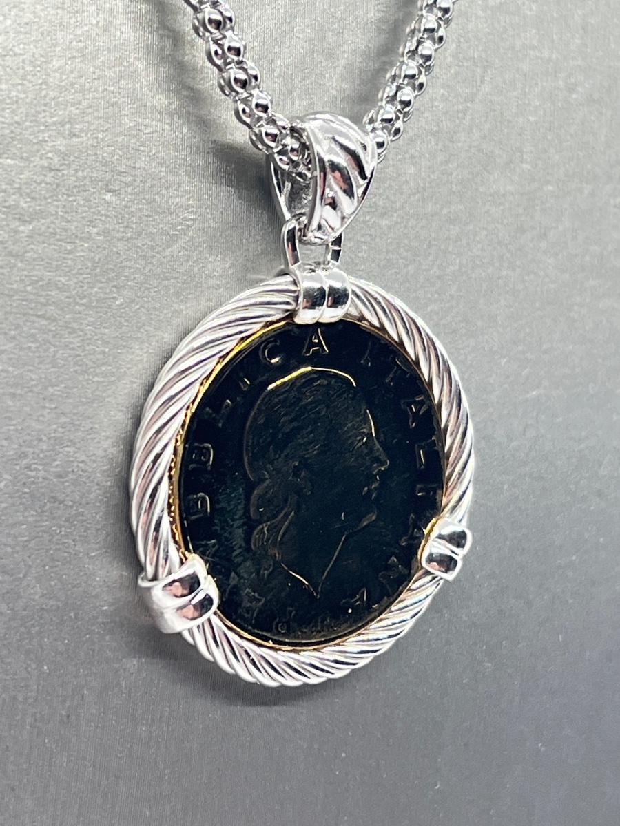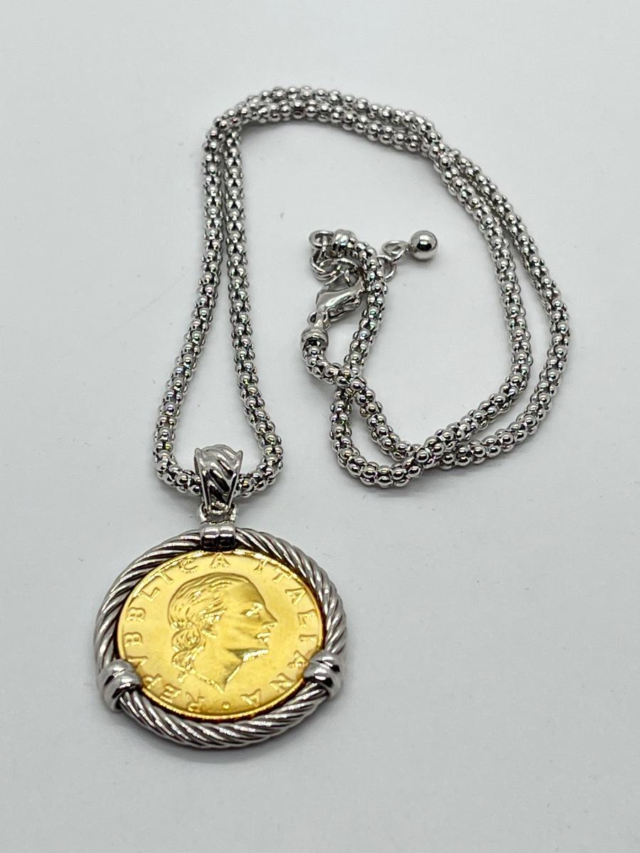 LOT 85: Vicenza Sterling Silver 200 Lira Coin Two-Tone Pendant on 18" Chain