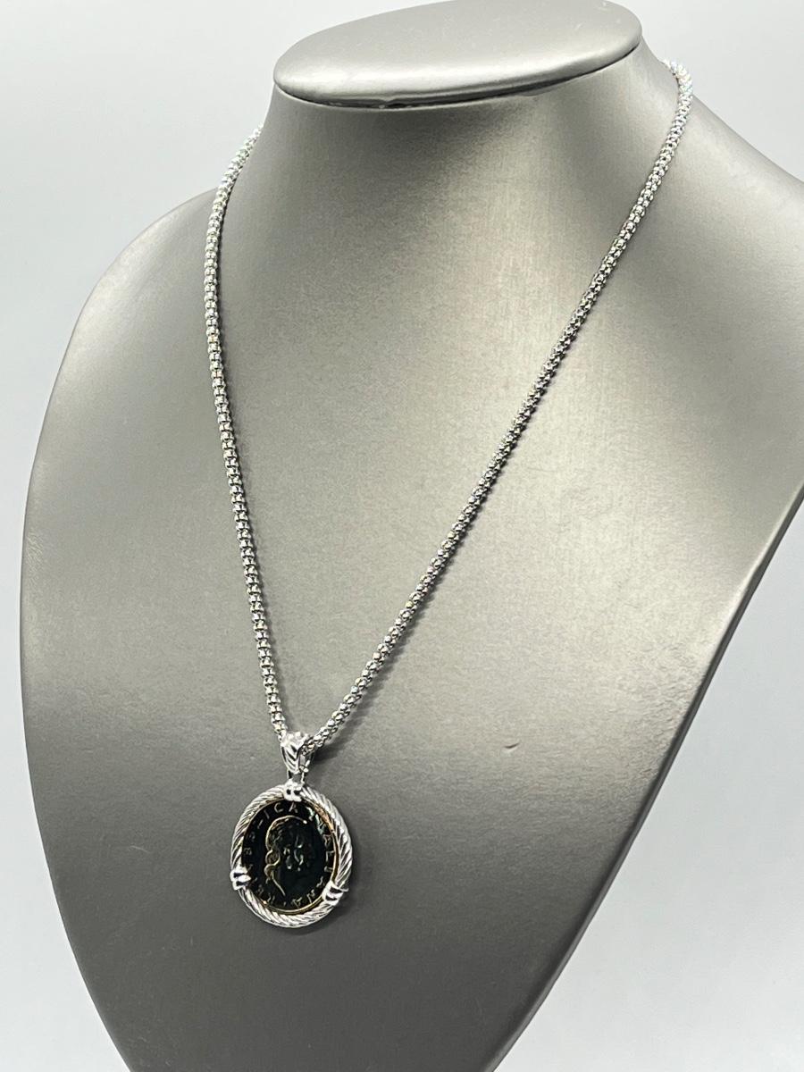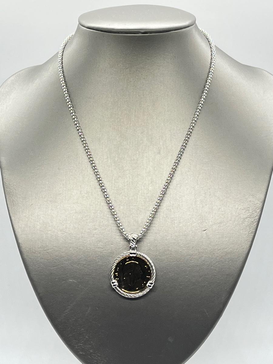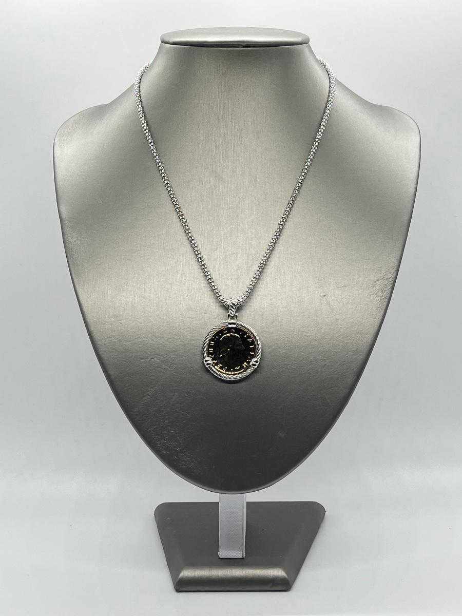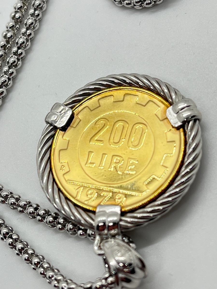 LOT 85: Vicenza Sterling Silver 200 Lira Coin Two-Tone Pendant on 18" Chain