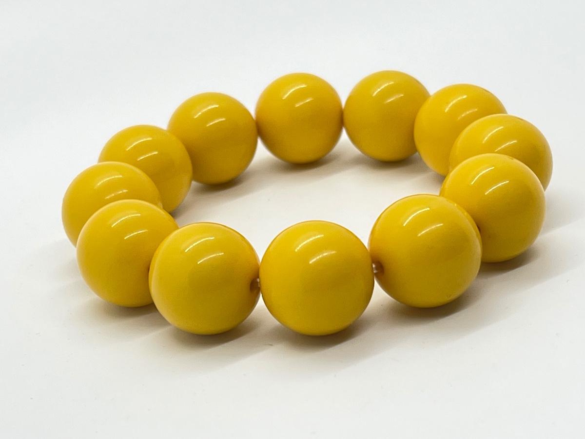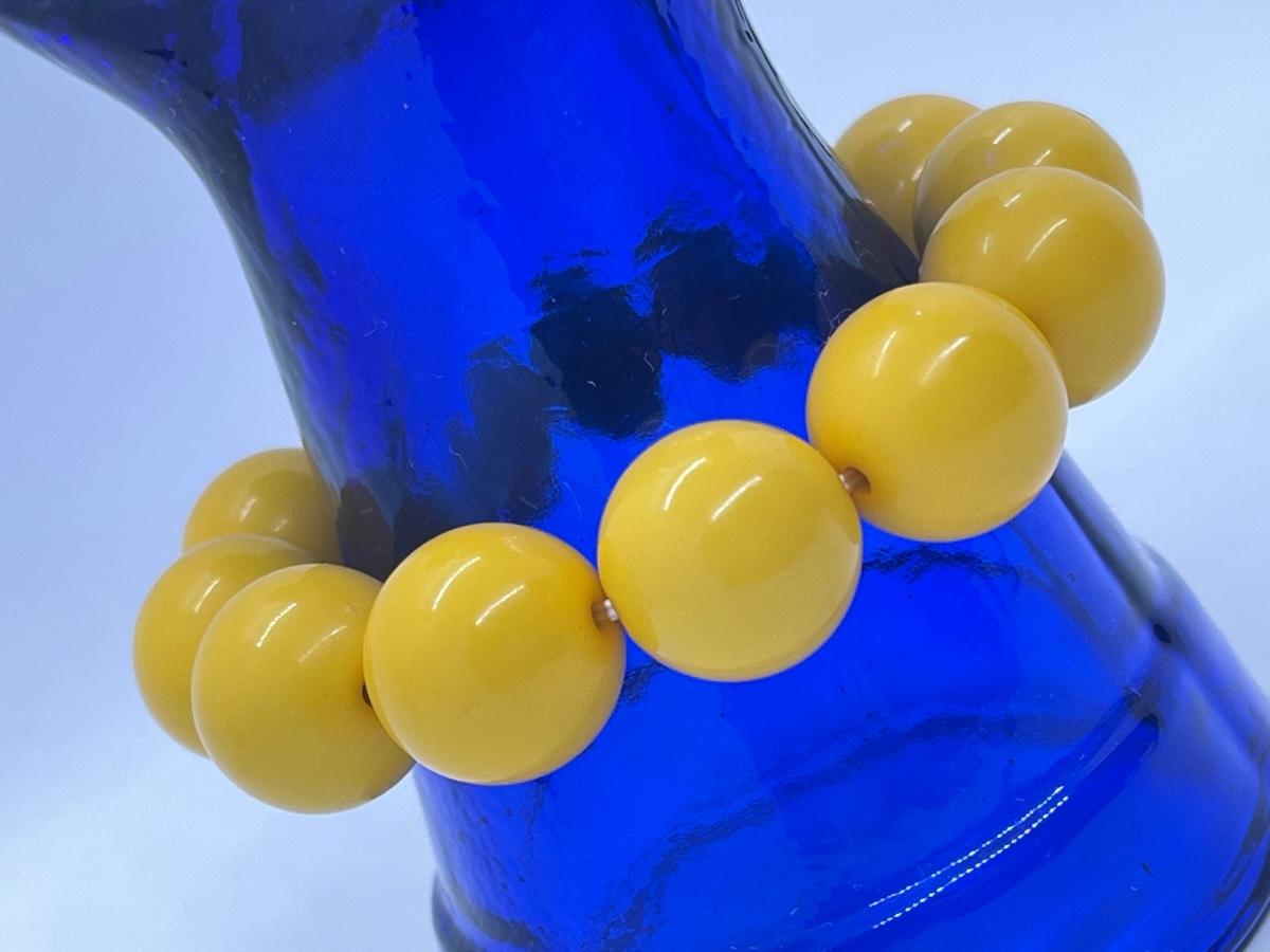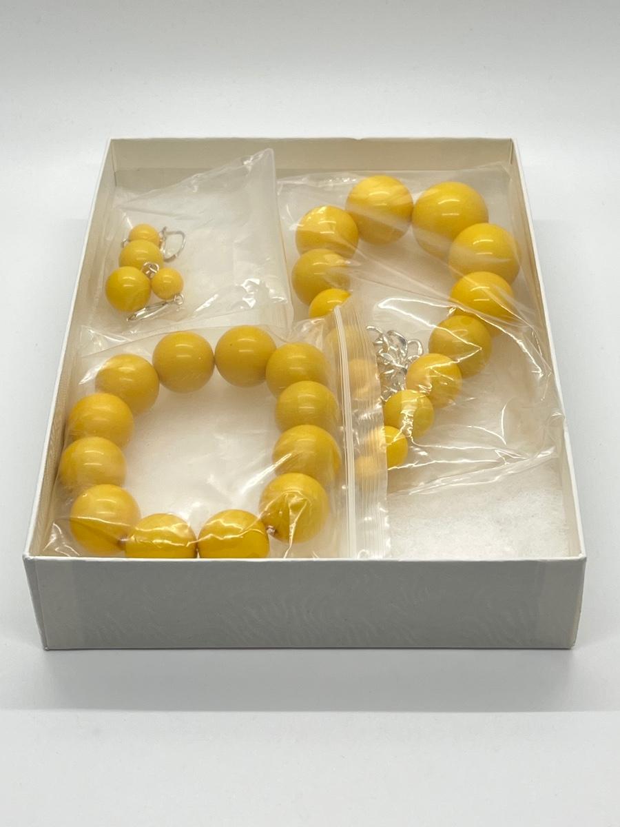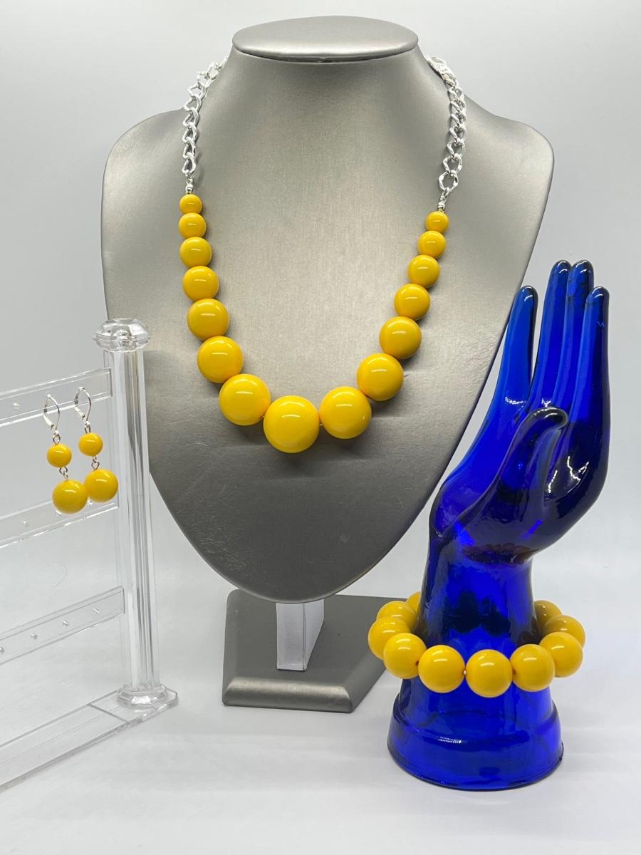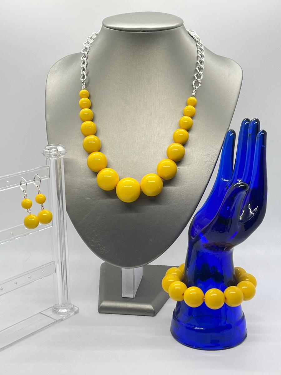 LOT 88: Three-Piece Wardrobe - Yellow Lucite Bead Necklace, Earrings and Stretch Bracelet Set