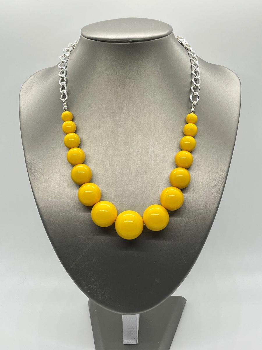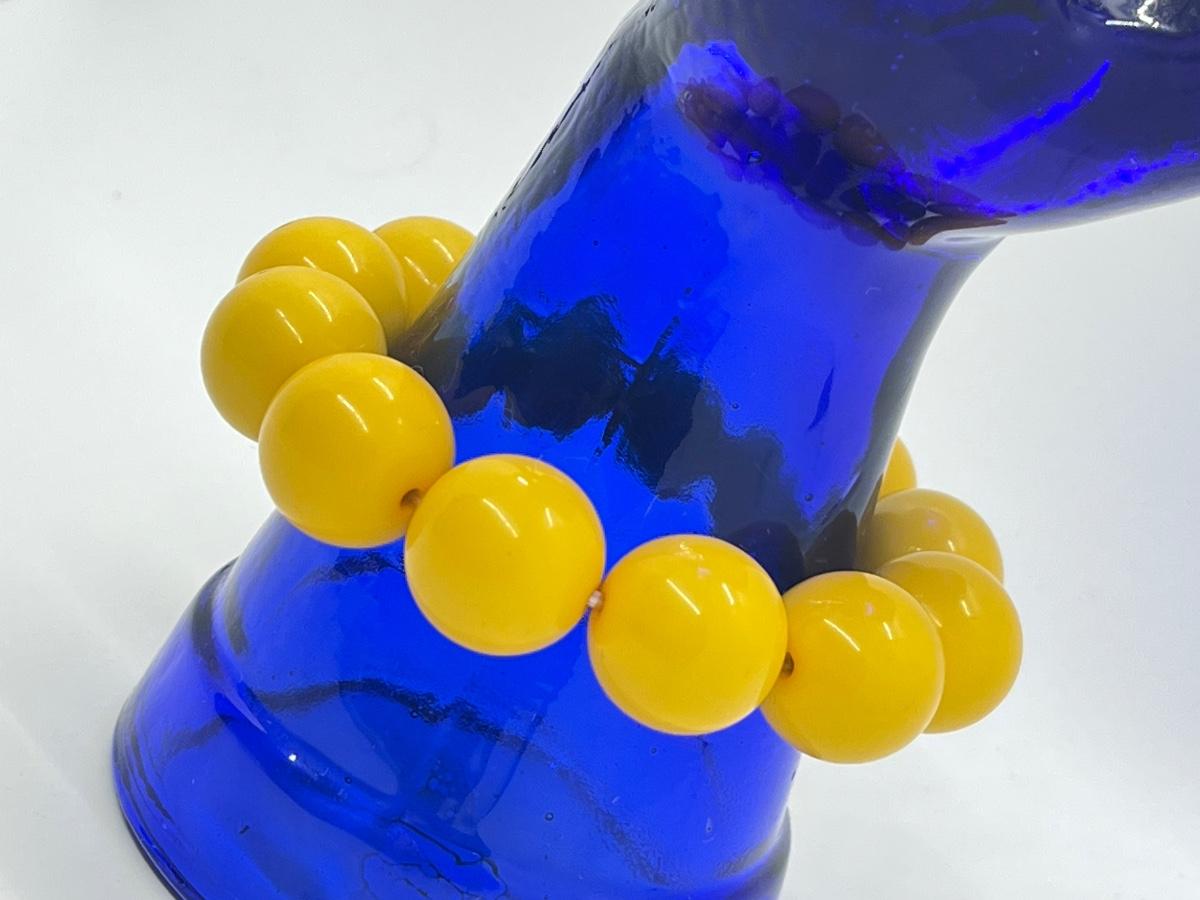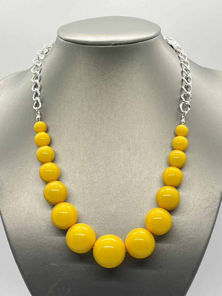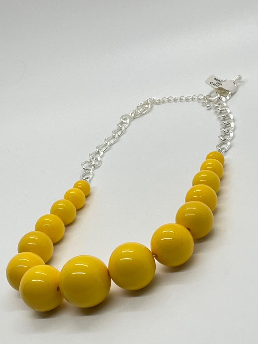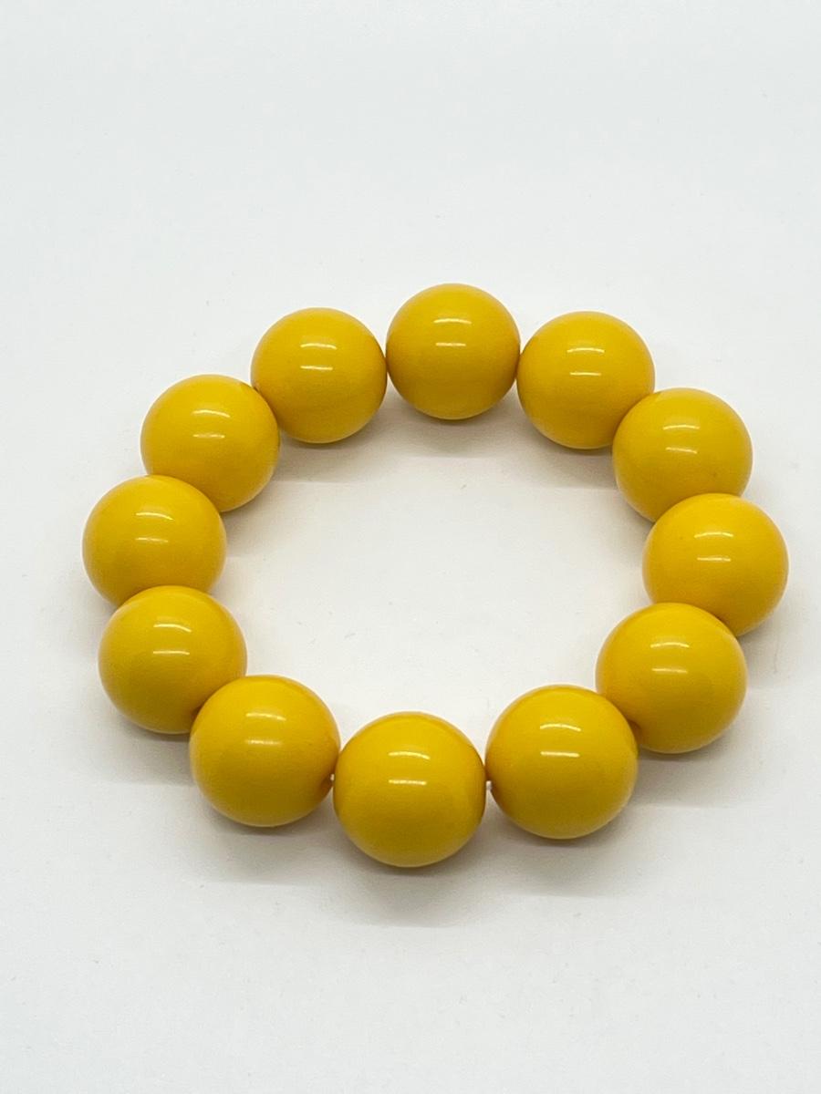 LOT 88: Three-Piece Wardrobe - Yellow Lucite Bead Necklace, Earrings and Stretch Bracelet Set