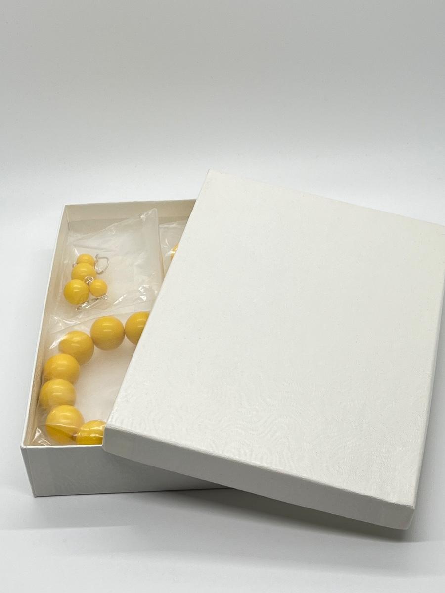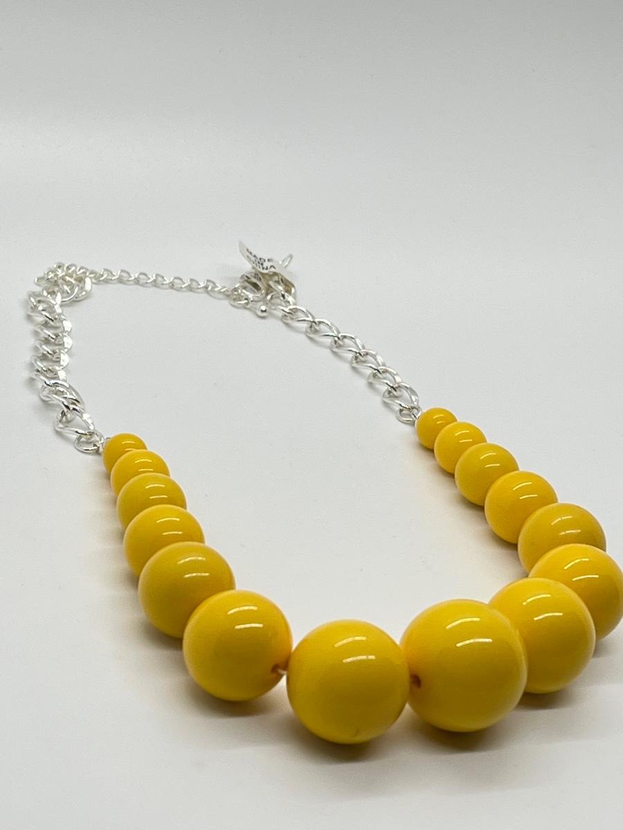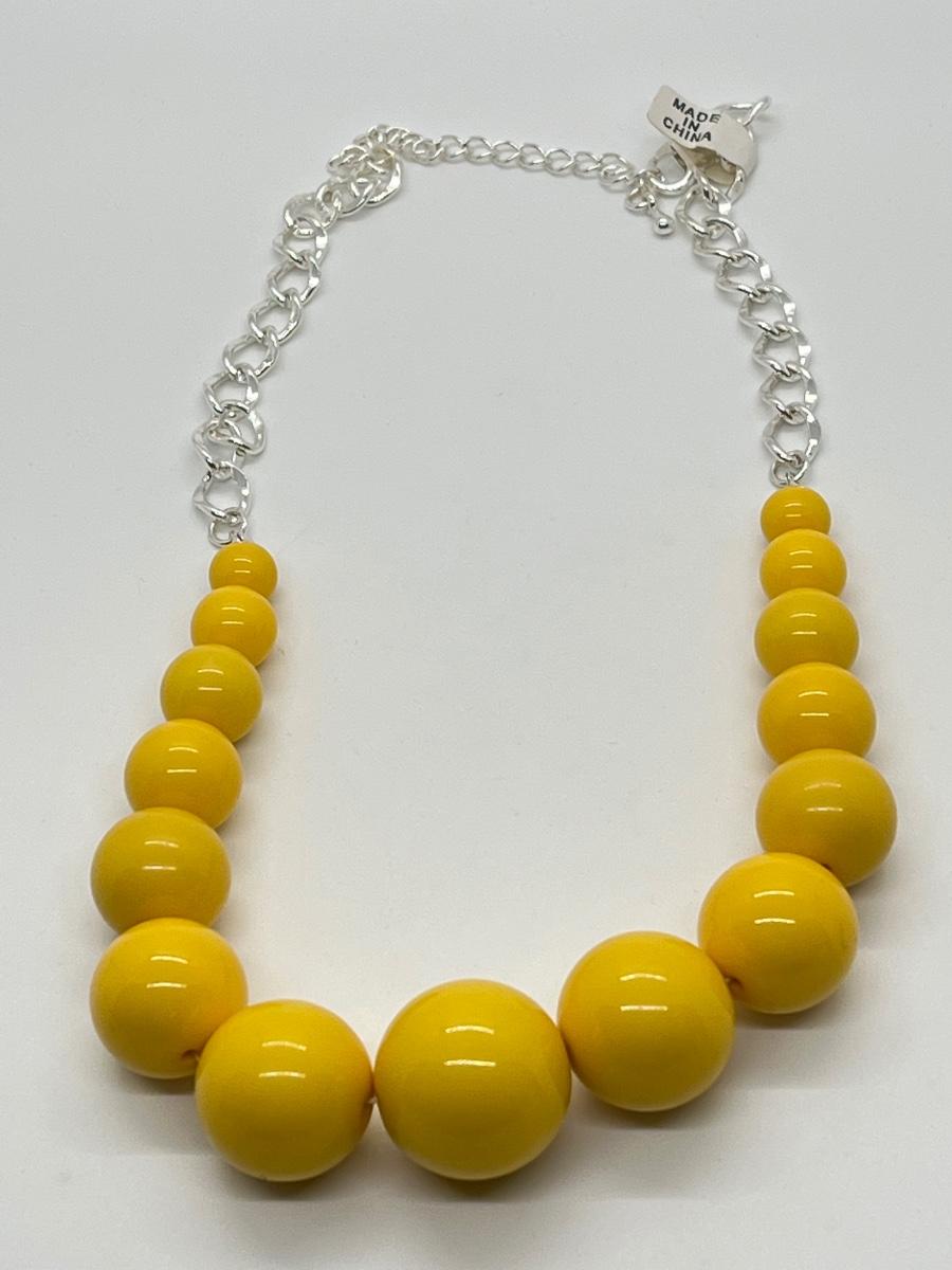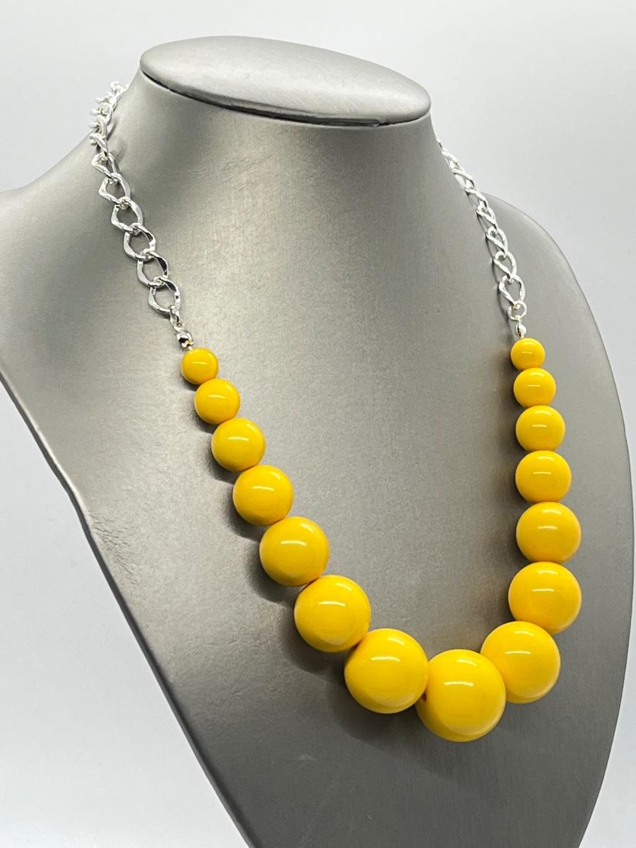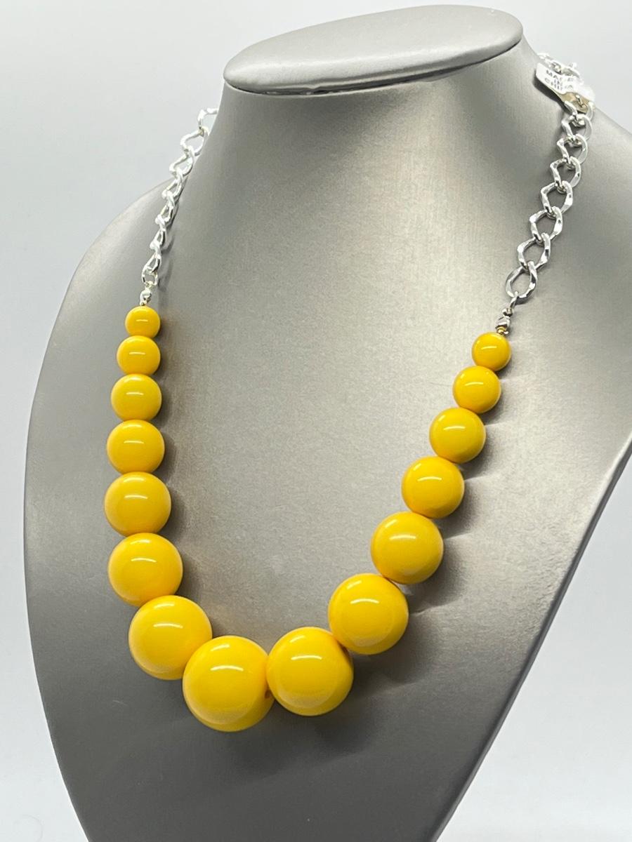 LOT 88: Three-Piece Wardrobe - Yellow Lucite Bead Necklace, Earrings and Stretch Bracelet Set