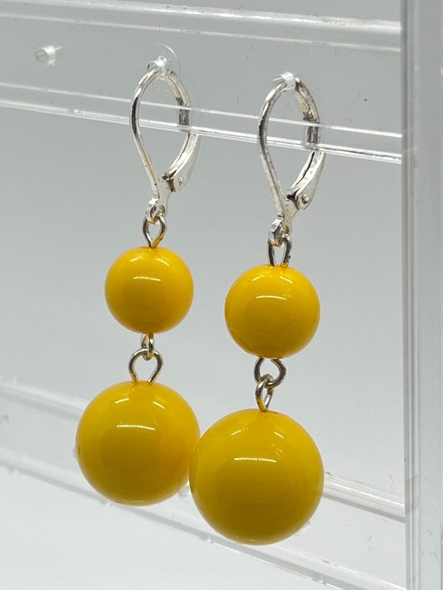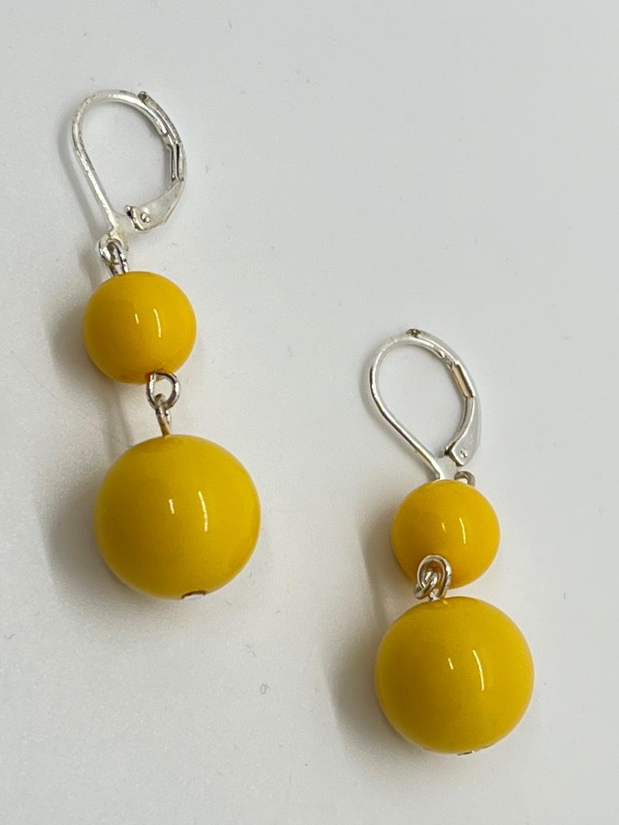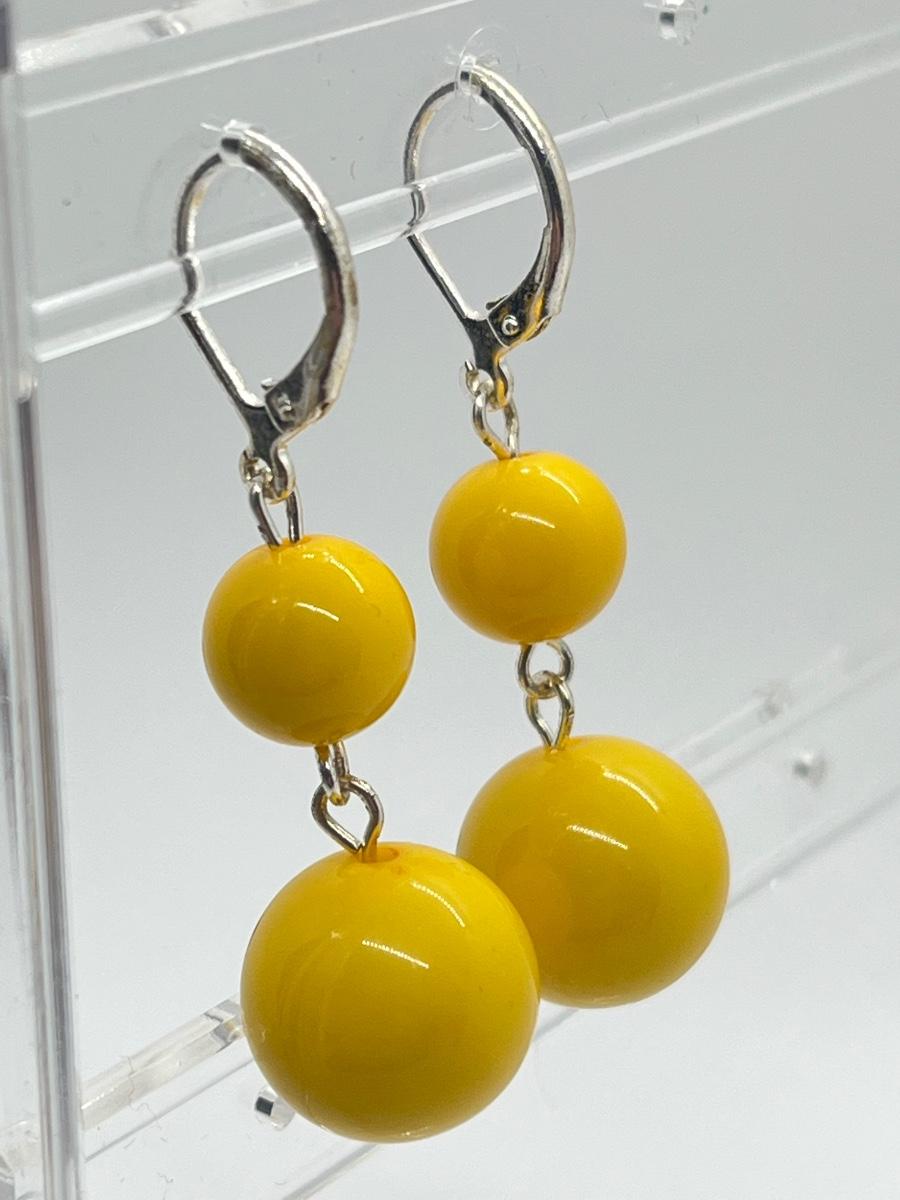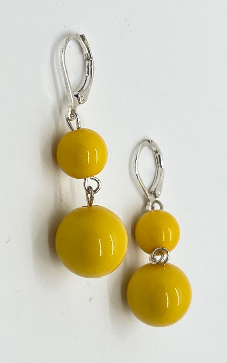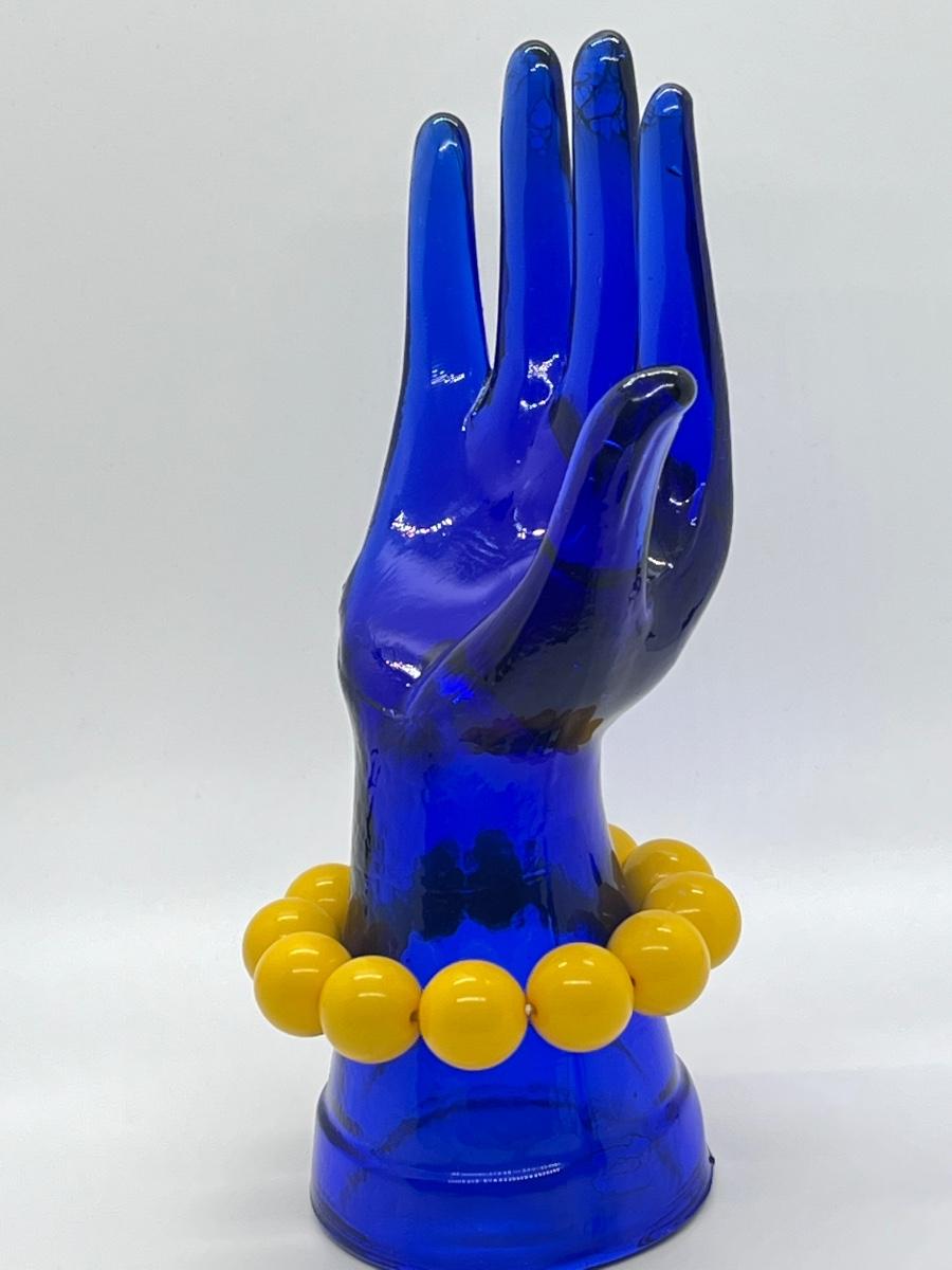 LOT 88: Three-Piece Wardrobe - Yellow Lucite Bead Necklace, Earrings and Stretch Bracelet Set